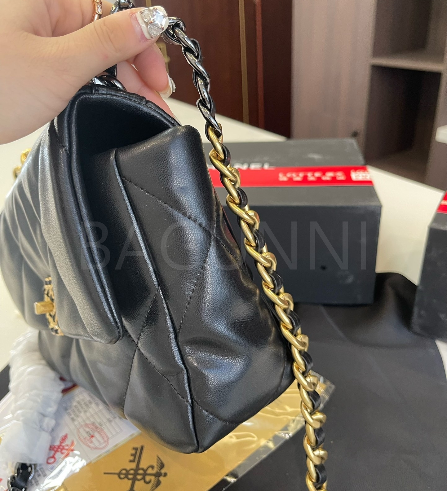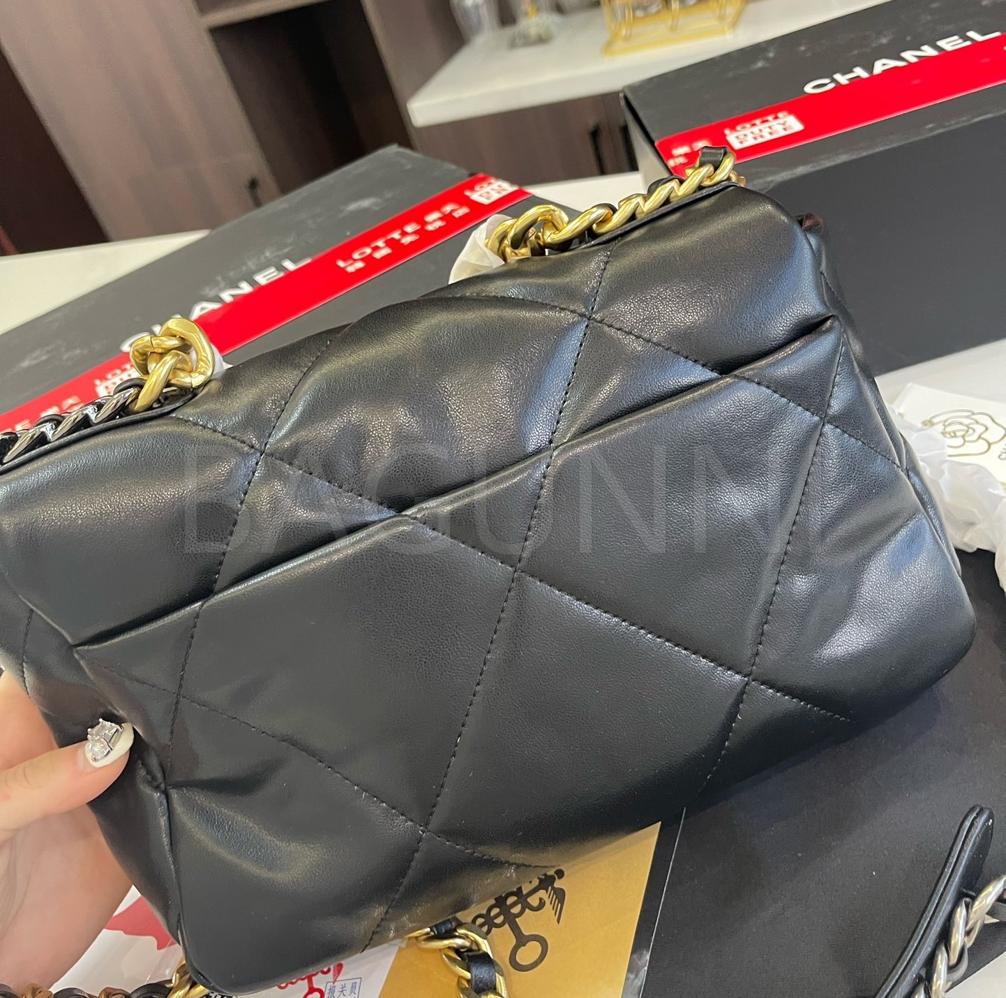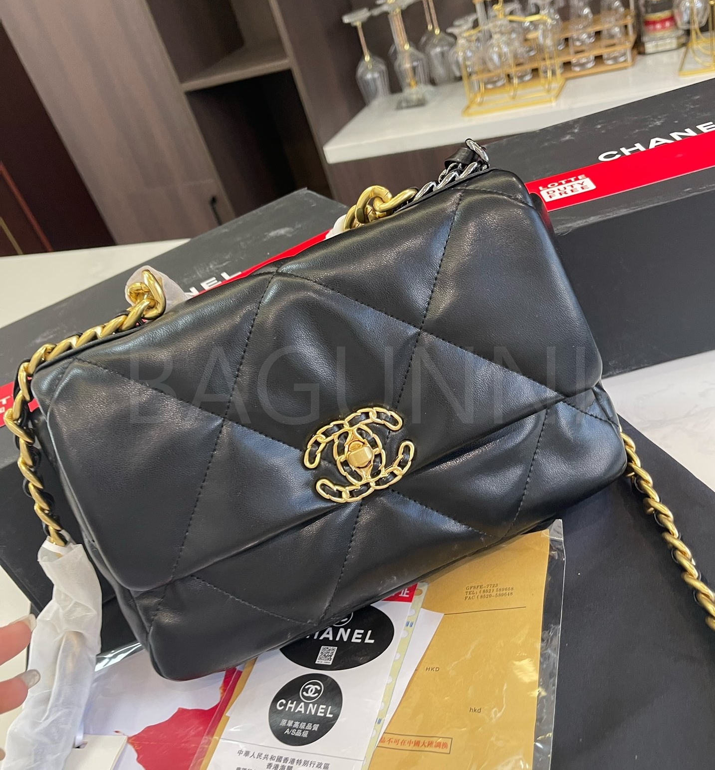 램스킨 특유의 매력이 돋보이는 샤넬 19 플랩 백입니다.