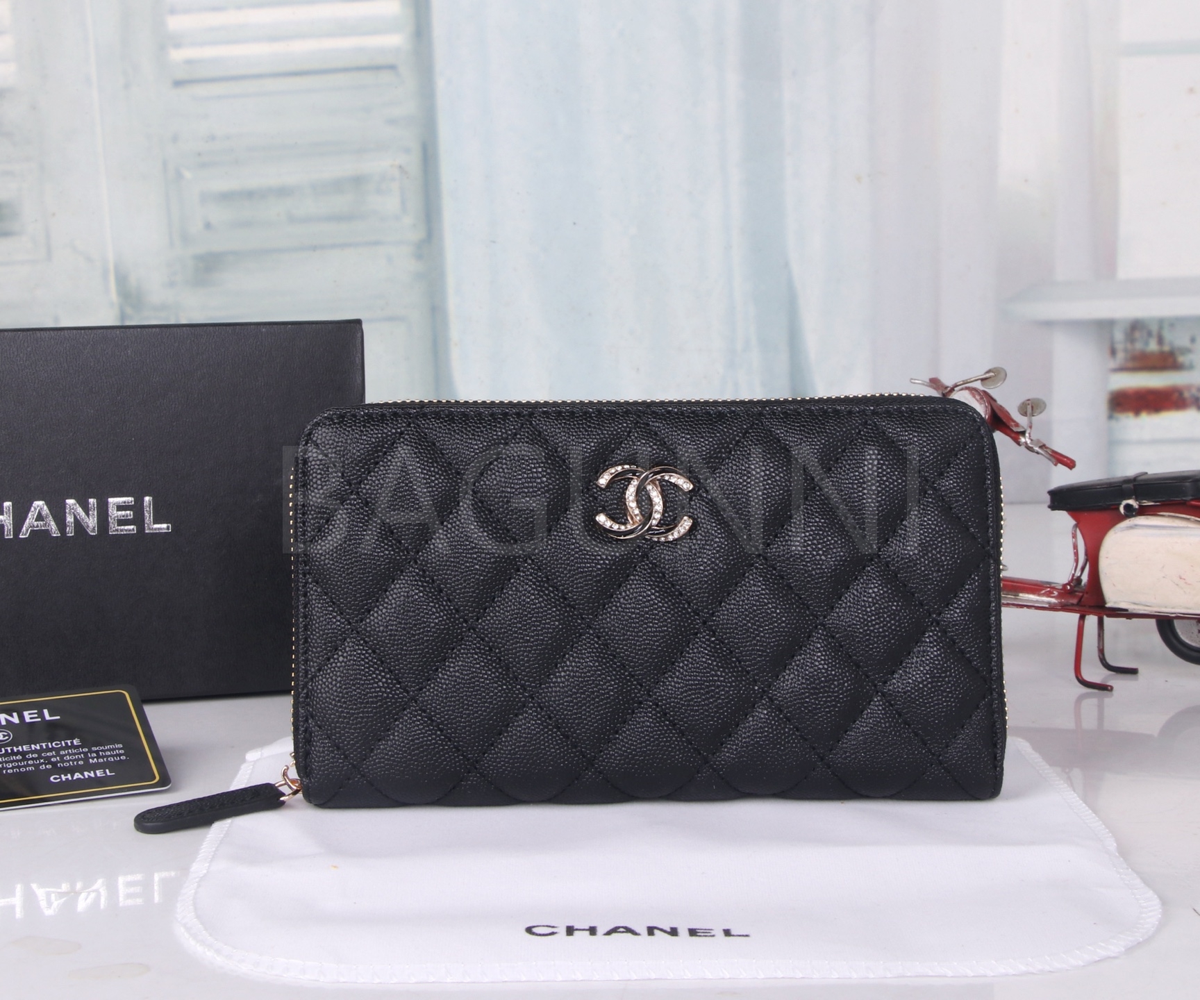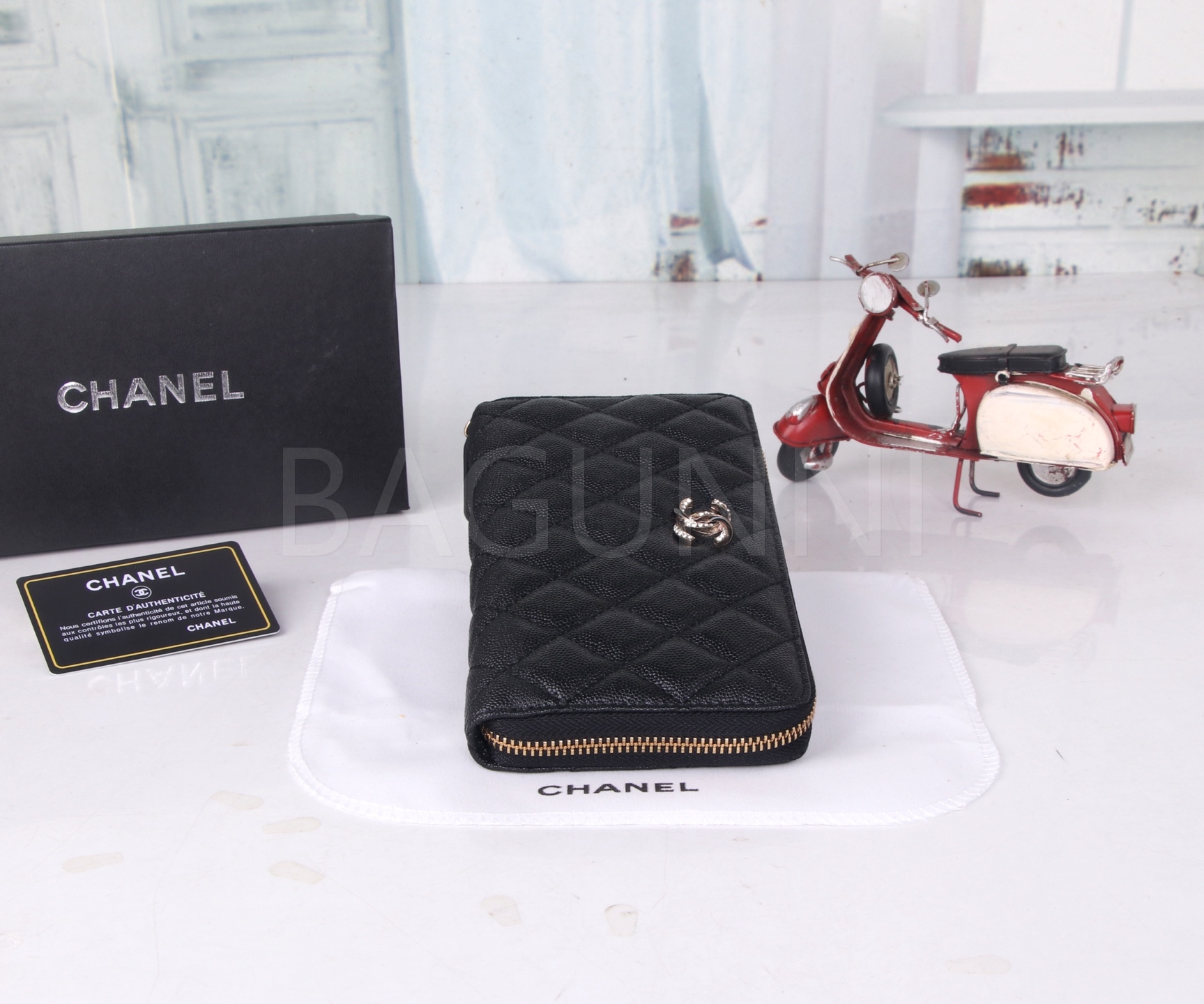 카프스킨의 질감이 돋보이는 샤넬 19 카드지갑입니다.