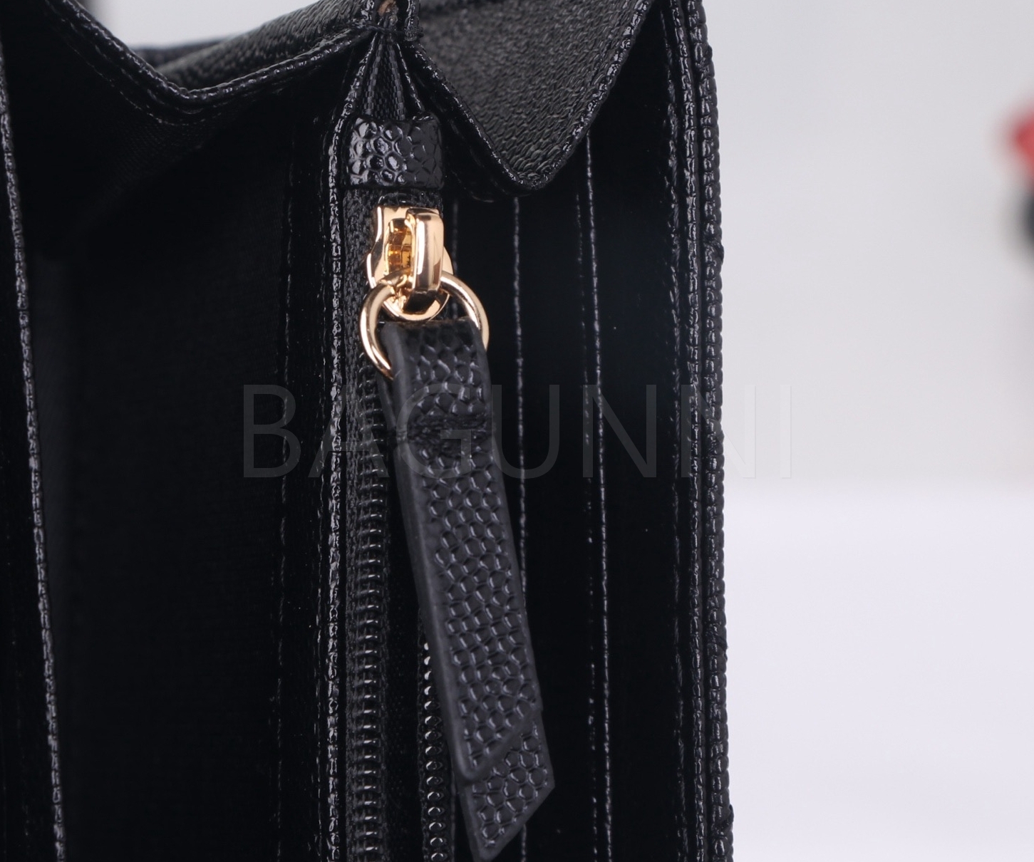 카프스킨의 질감이 돋보이는 샤넬 19 카드지갑입니다.
