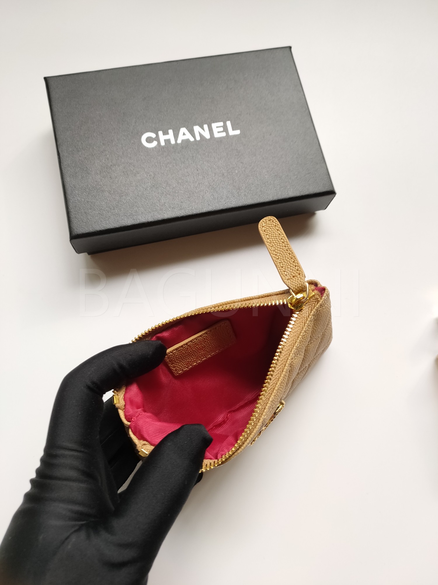 카프스킨의 질감이 돋보이는 샤넬 19 카드지갑입니다.