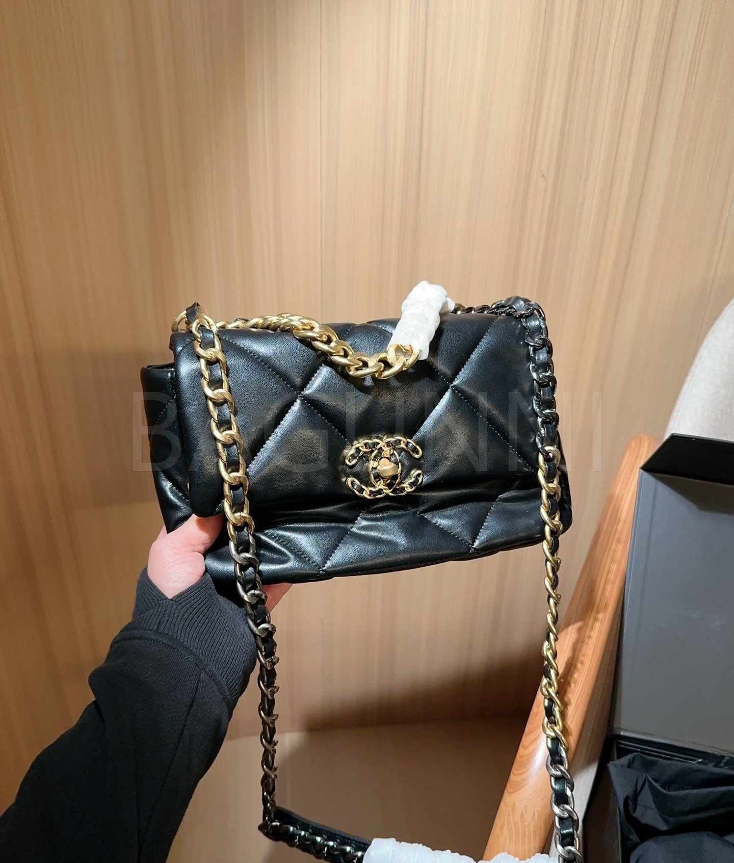 세련된 무드가 돋보이는 샤넬 19 플랩 백입니다.