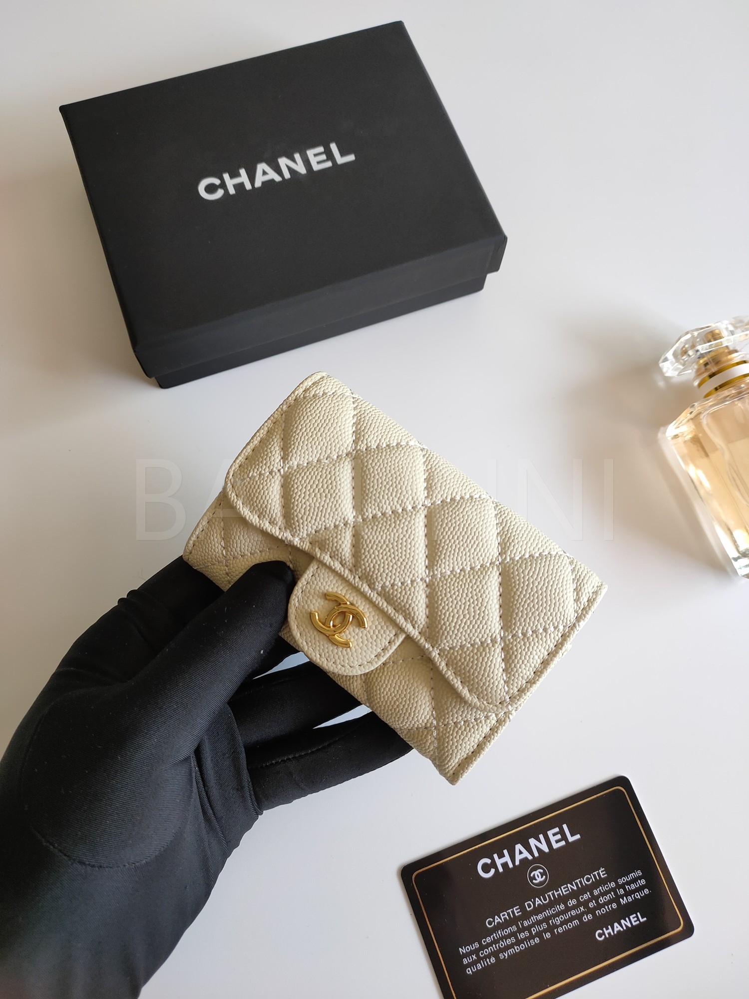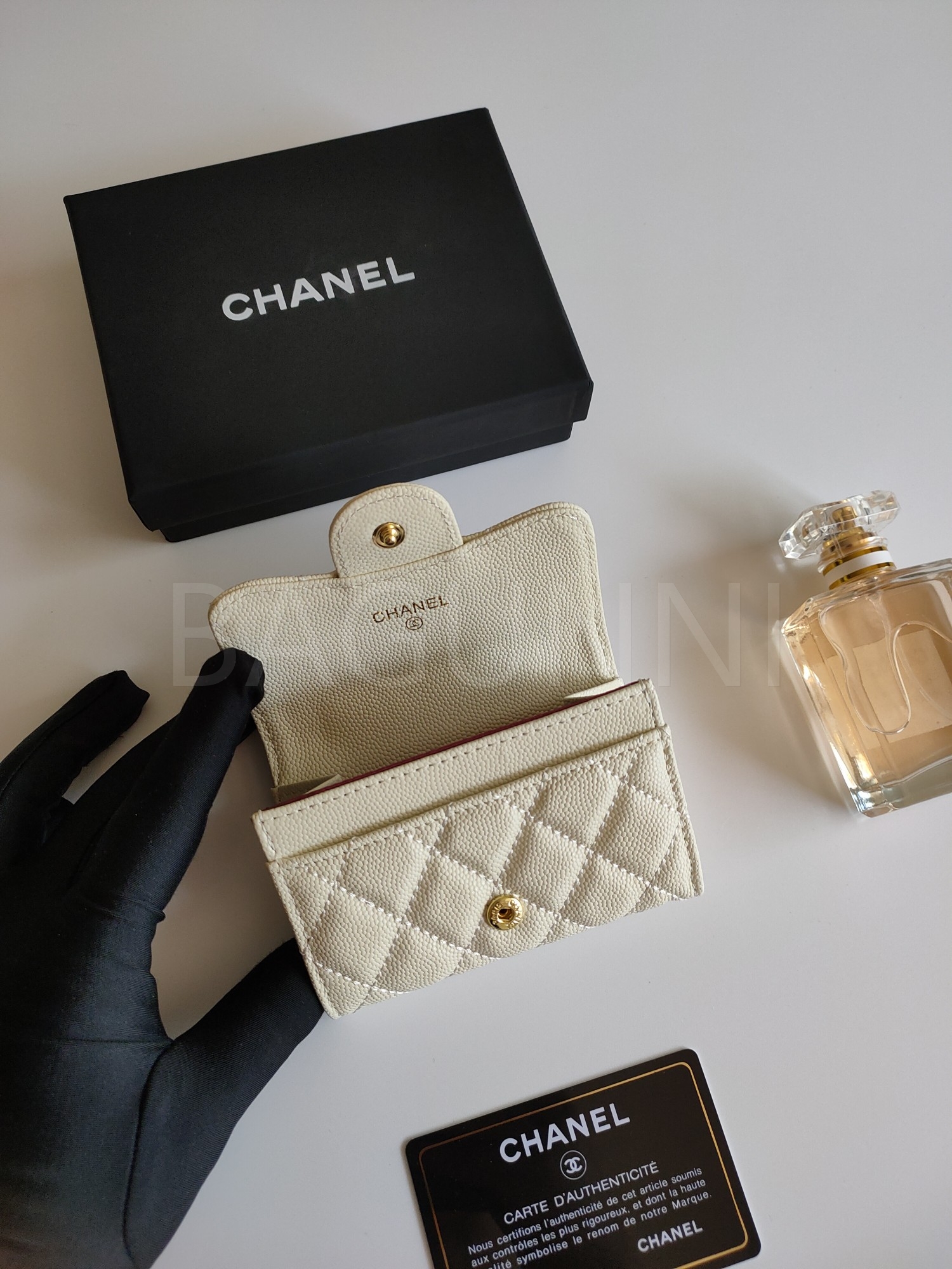 카프스킨의 질감이 돋보이는 샤넬 19 카드지갑입니다.