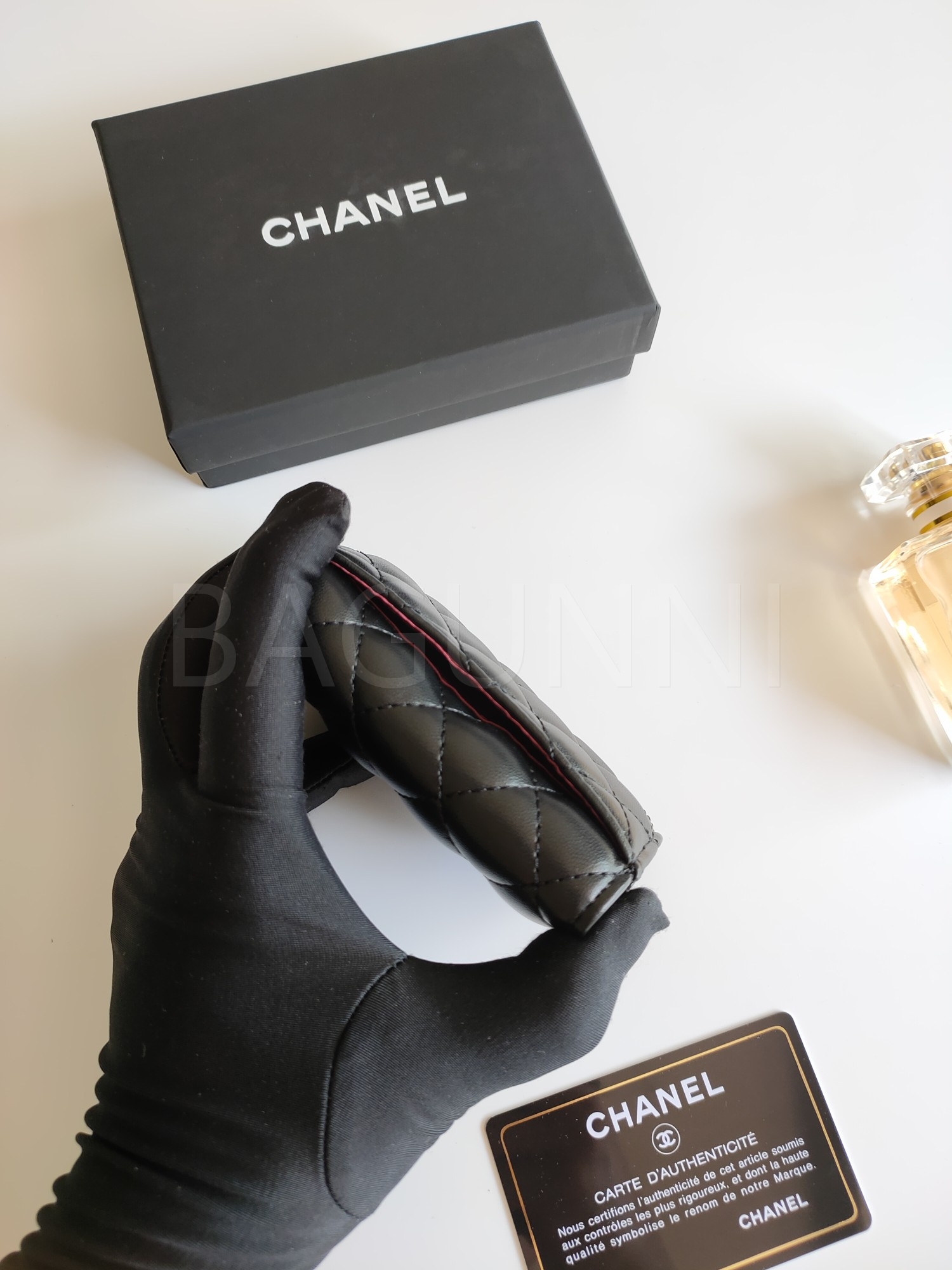 카프스킨의 질감이 돋보이는 샤넬 19 카드지갑입니다.