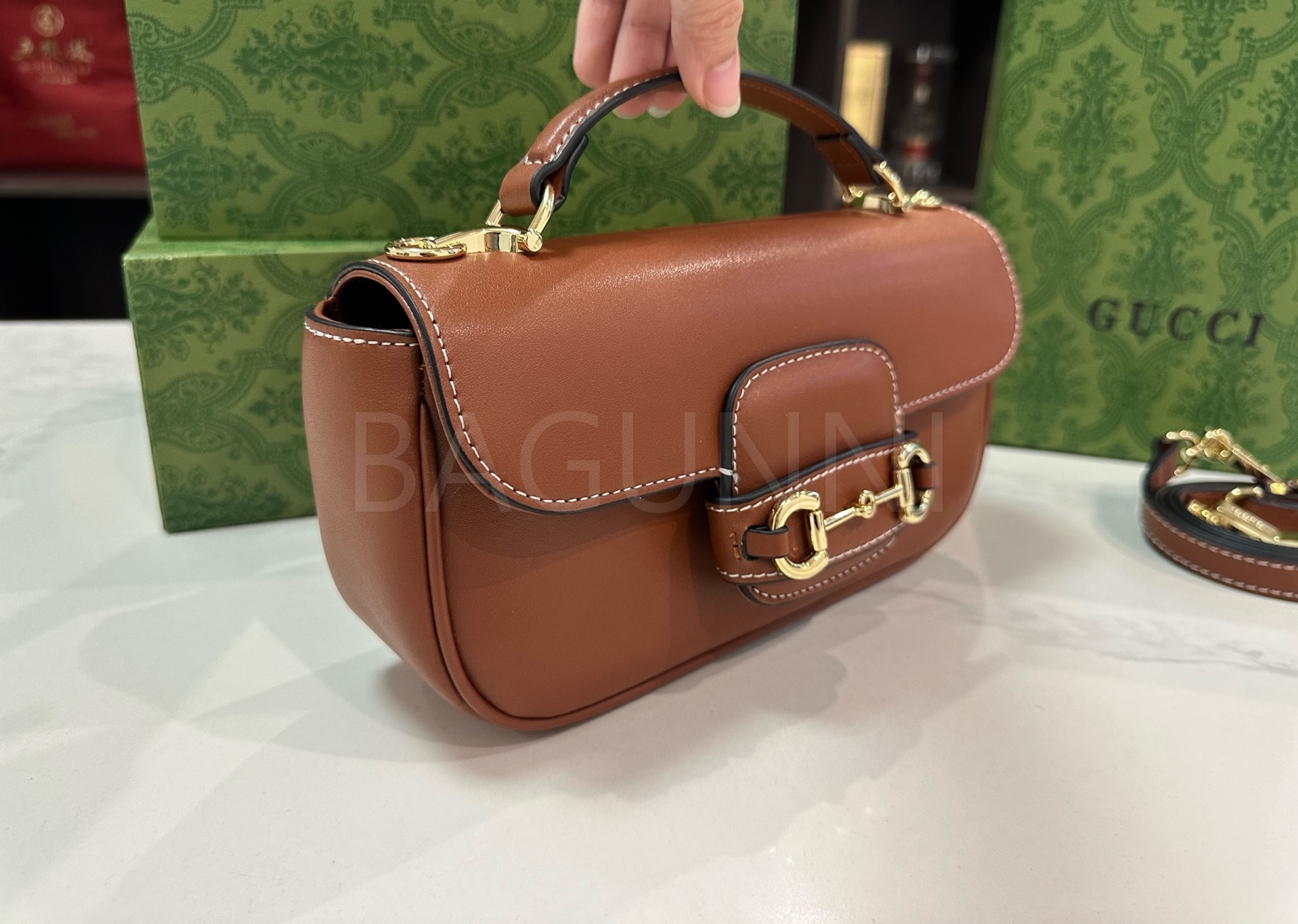 구찌 홀스빗 1955 숄더백입니다. 골드 톤이 어우러져 브랜드 특유의 분위기를 편하게 즐기기 좋습니다.