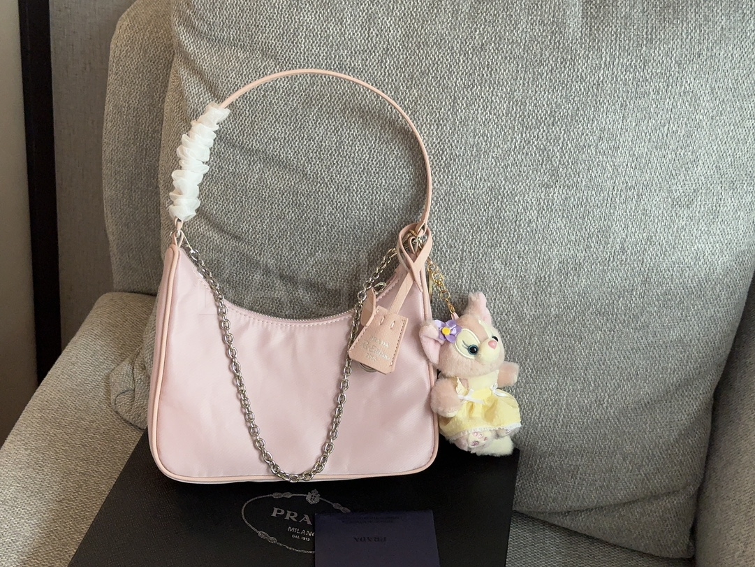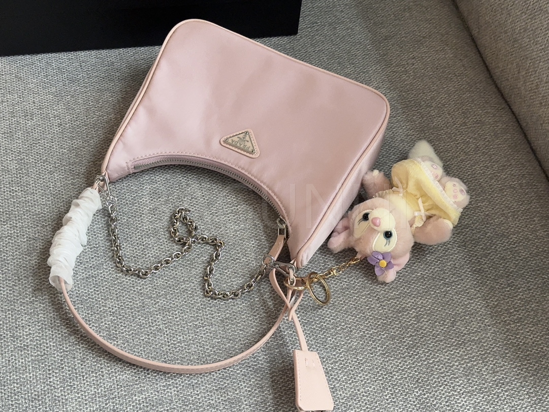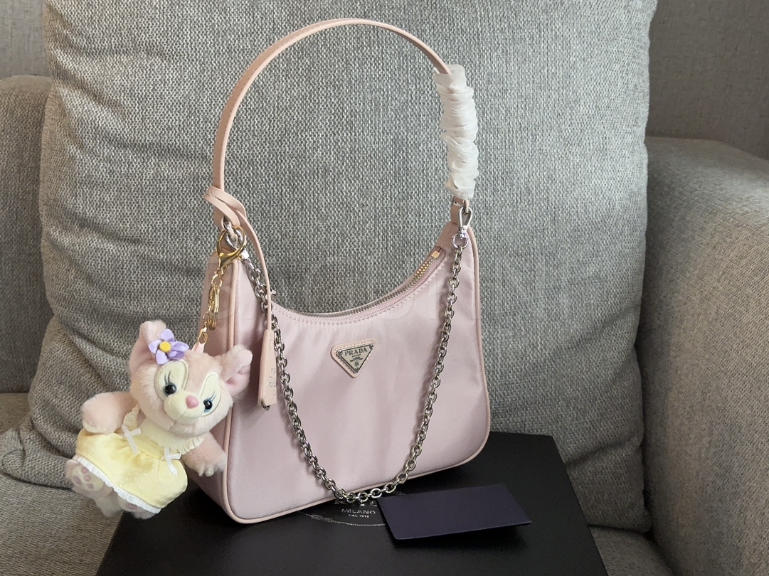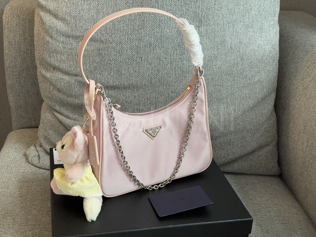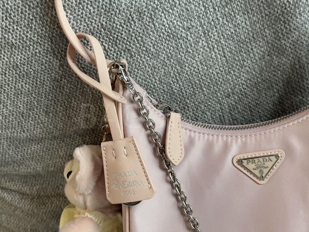 프라다 2005 리에디션 호보백입니다. 나일론 특유의 질감이 자연스럽게 살아 있으며 실버, 골드 톤이 어우러져 브랜드 특유의 분위기를 편하게 즐기기 좋습니다.