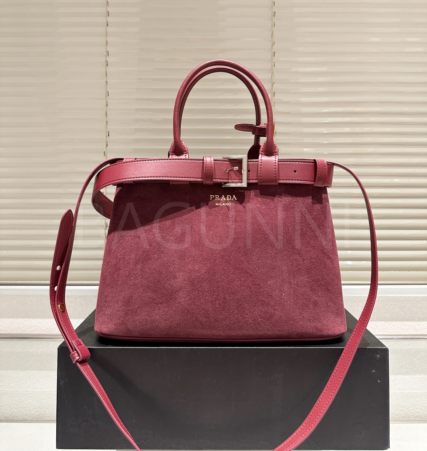 프라다 22 스웨이드 토트백은 우아한 분위기를 담은 아이템입니다.