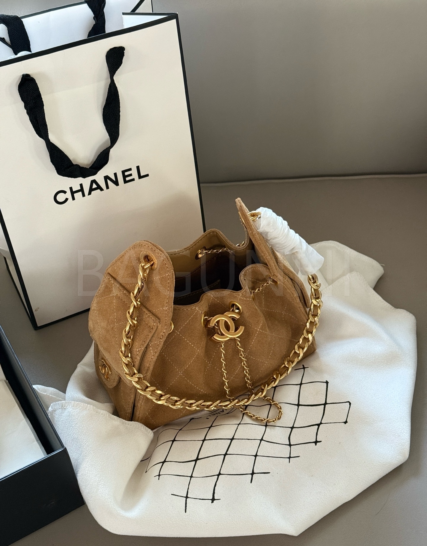 샤넬 22 스웨이드 호보 백