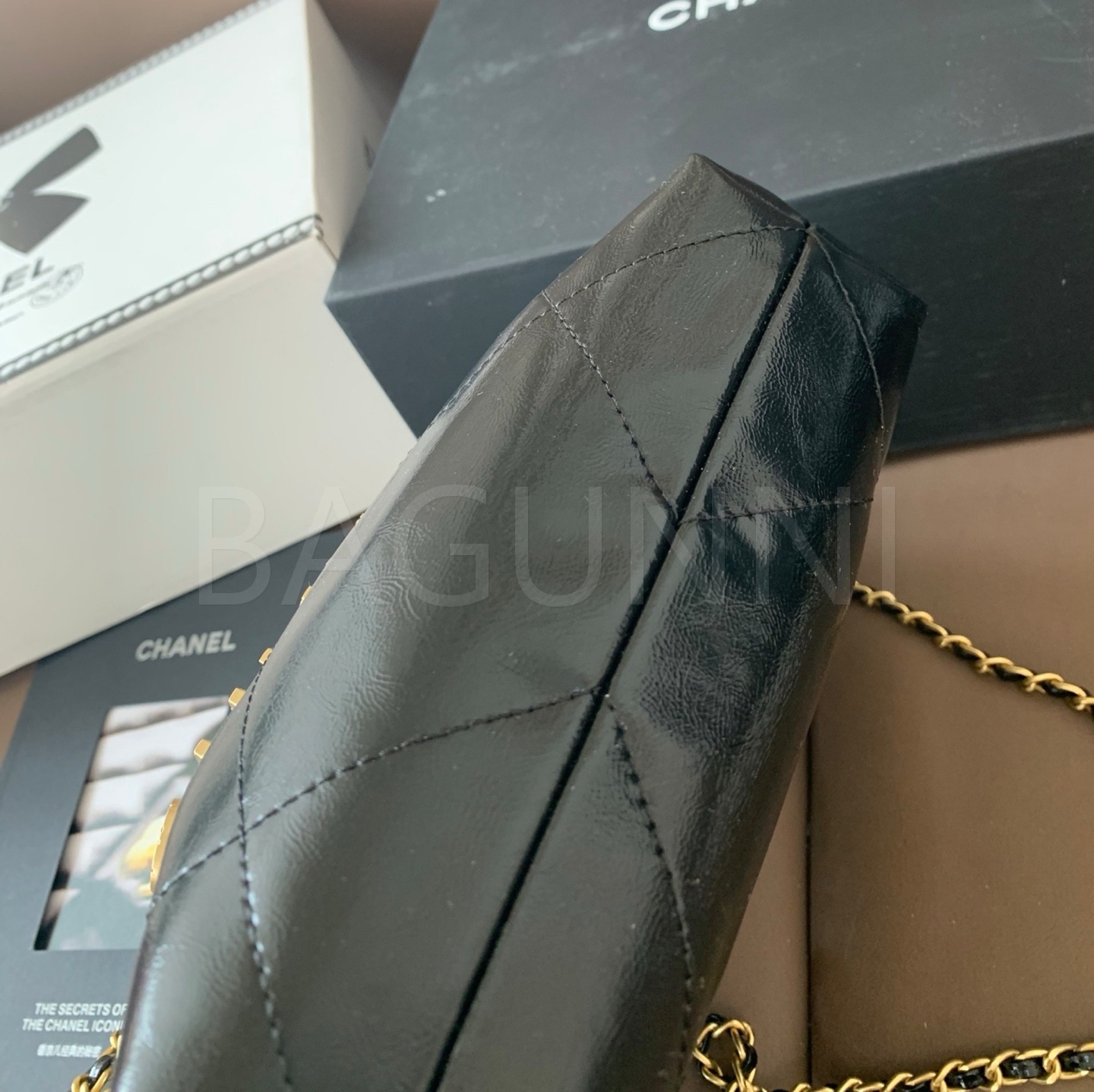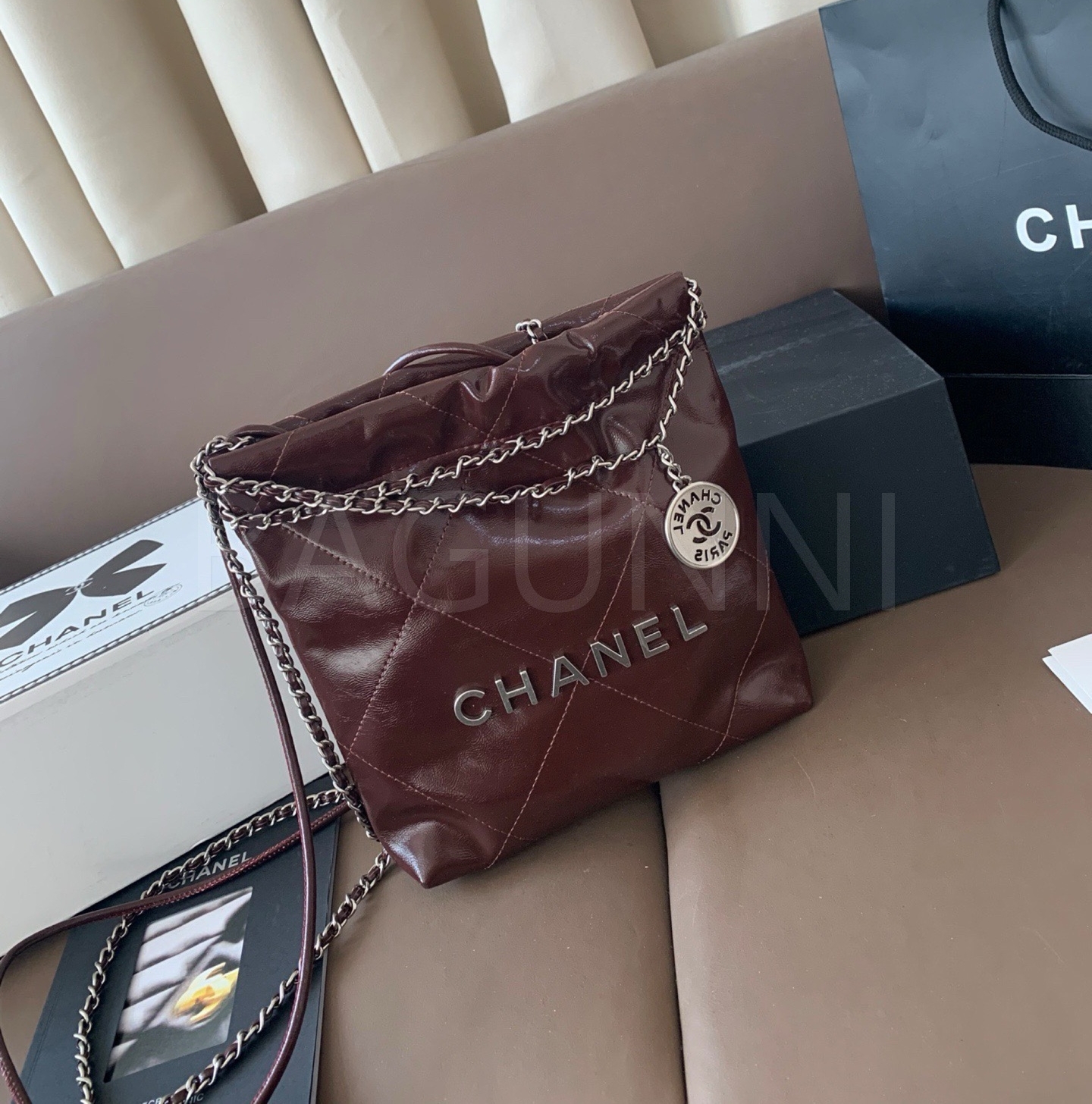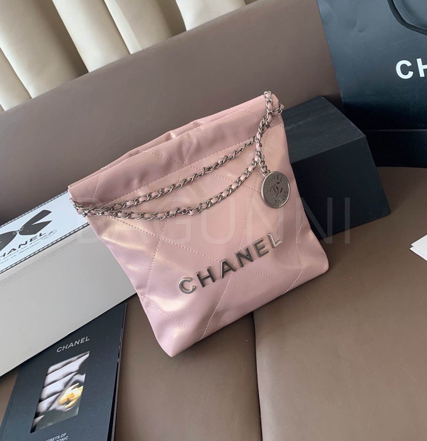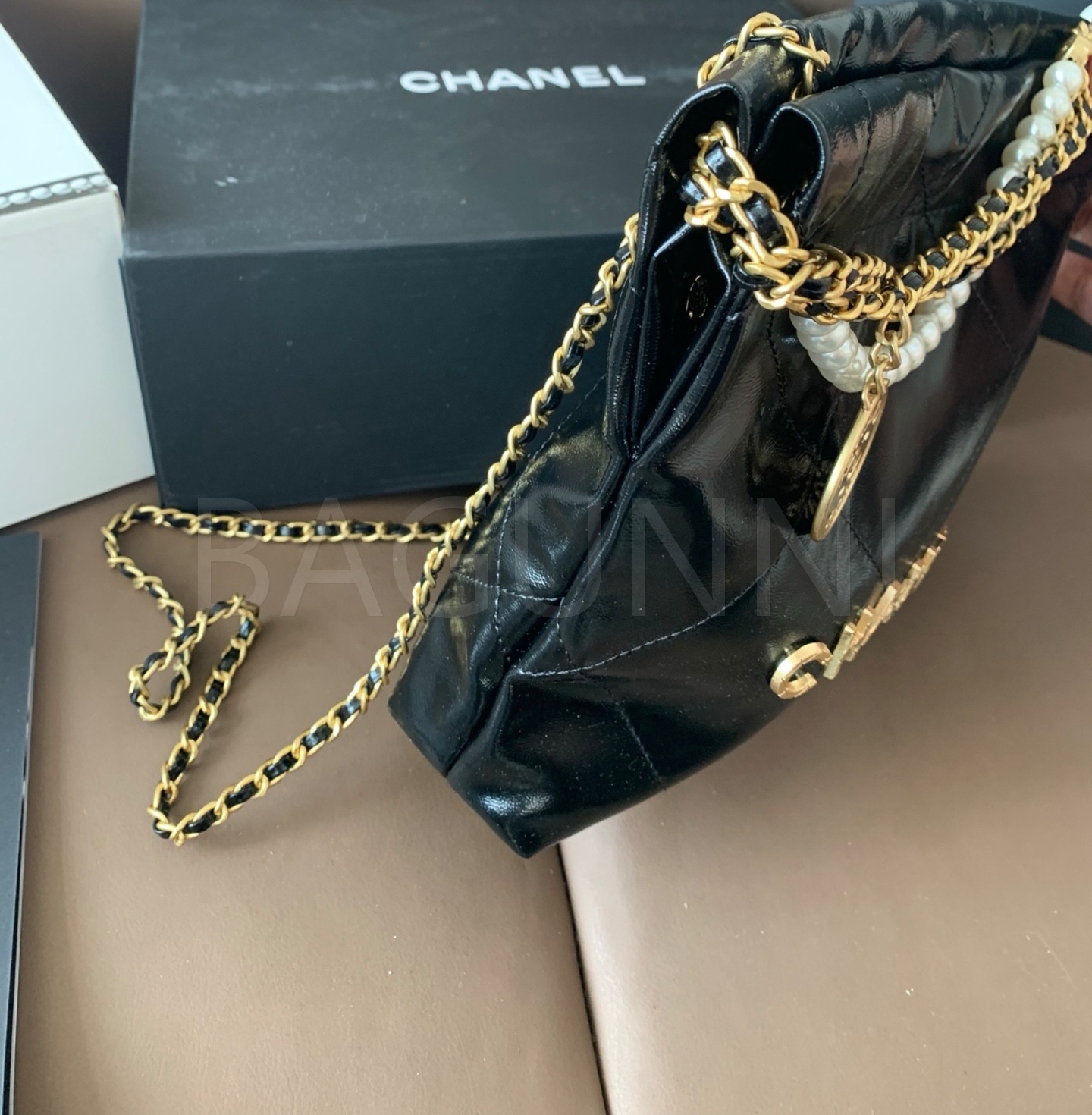 가죽 특유의 매력이 돋보이는 샤넬 22B 펄 22 백입니다.
