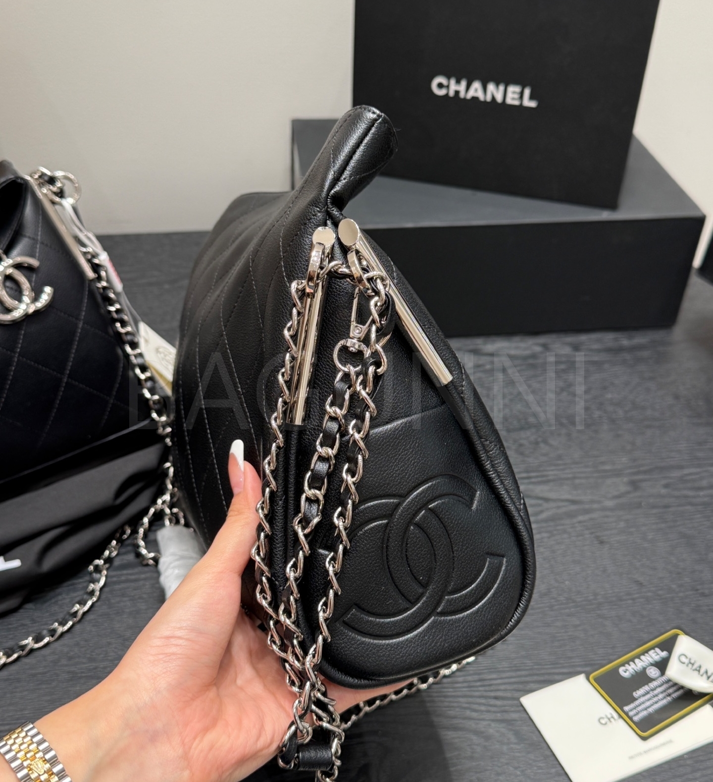 더블 C 로고, 체인 스트랩 디테일이 조화롭게 어우러져 완성도를 높여줍니다