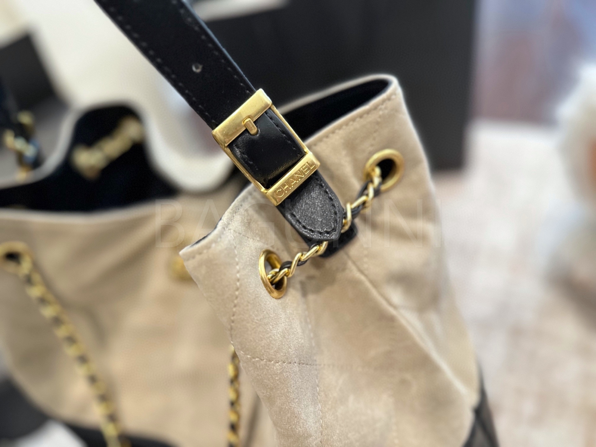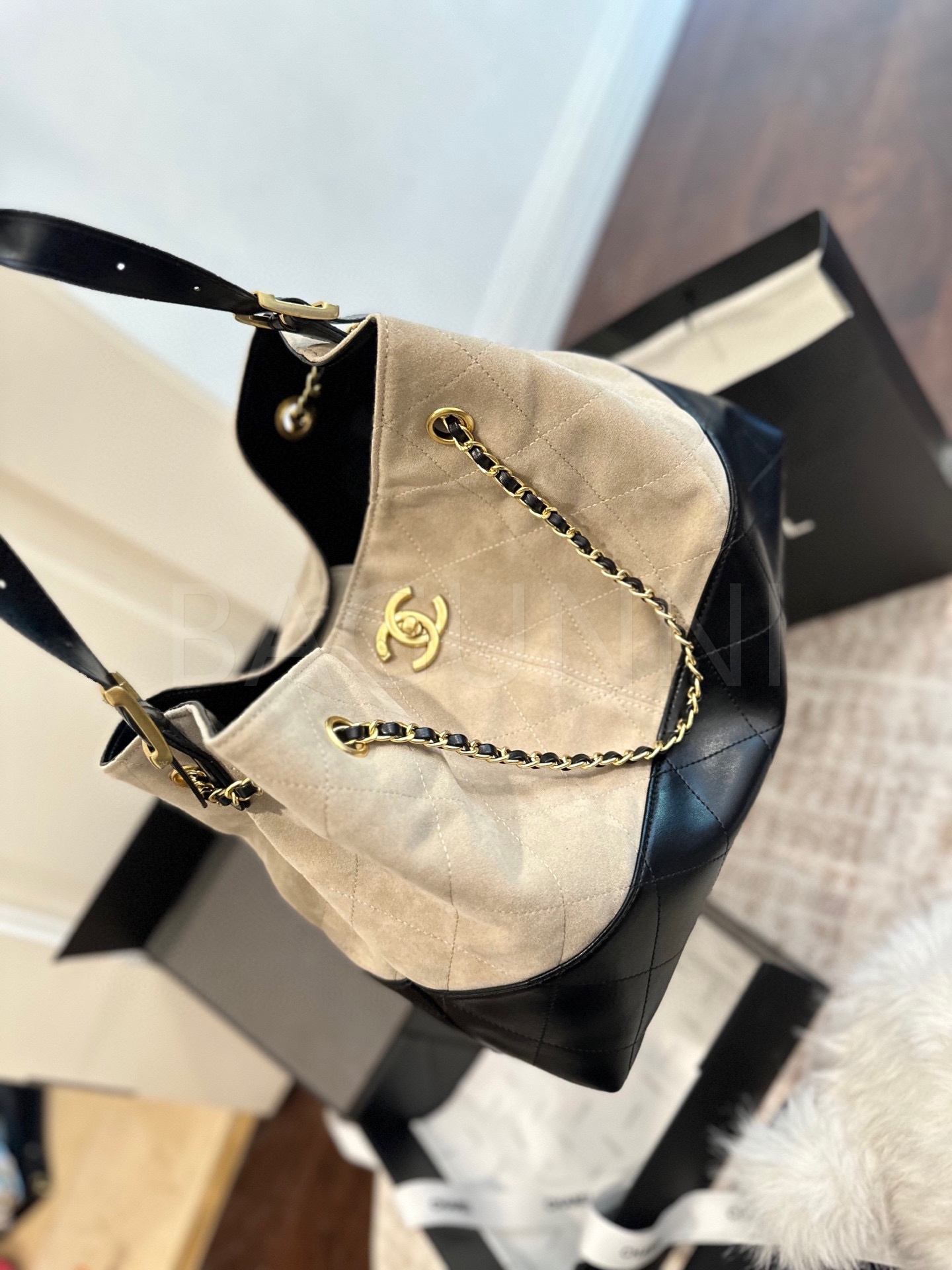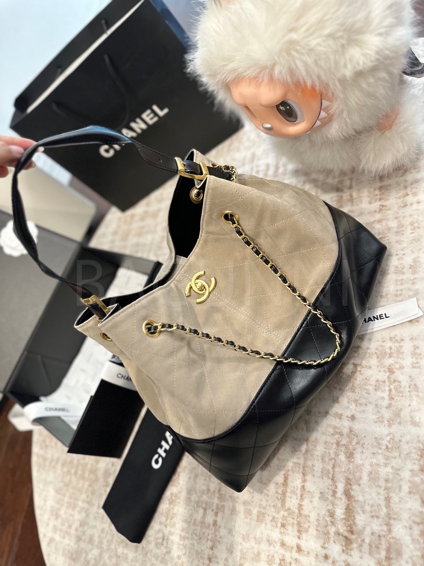 스웨이드 특유의 매력이 돋보이는 샤넬 23C 스웨이드 호보 백입니다.