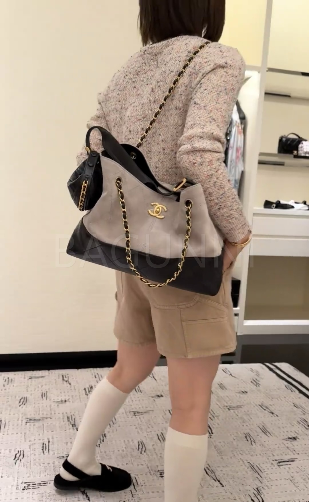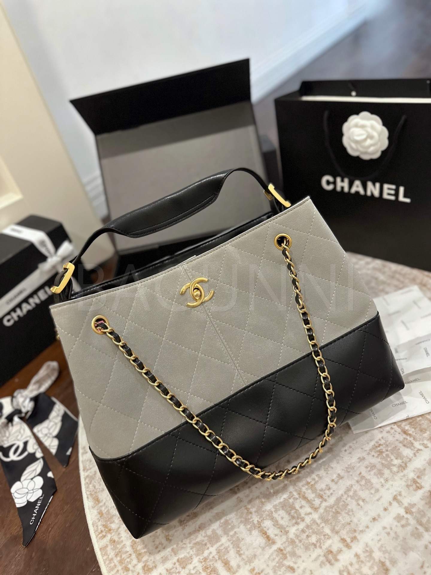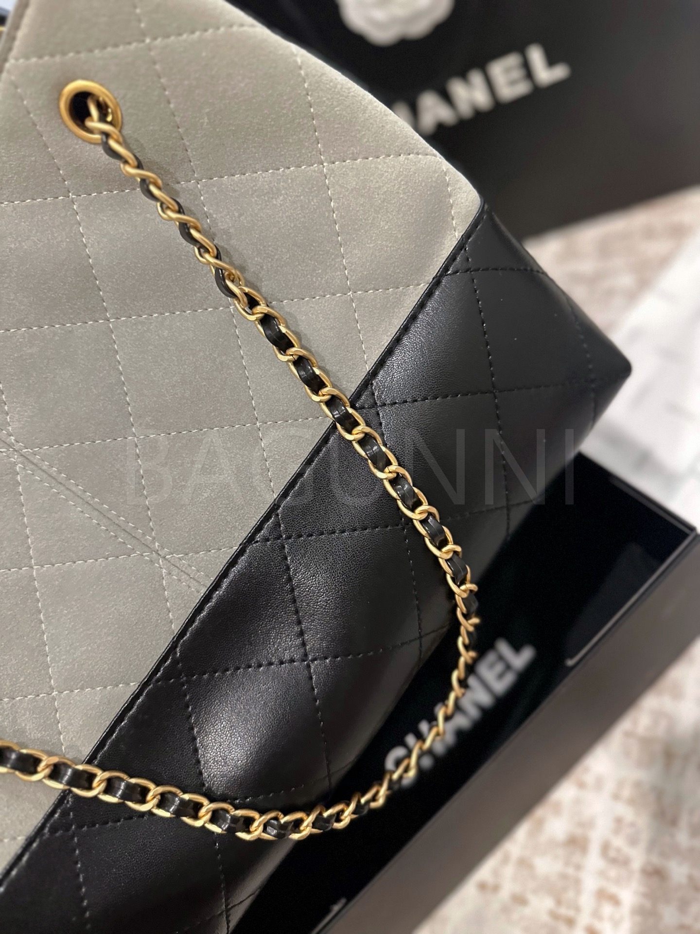 스웨이드 특유의 매력이 돋보이는 샤넬 23C 스웨이드 호보 백입니다.