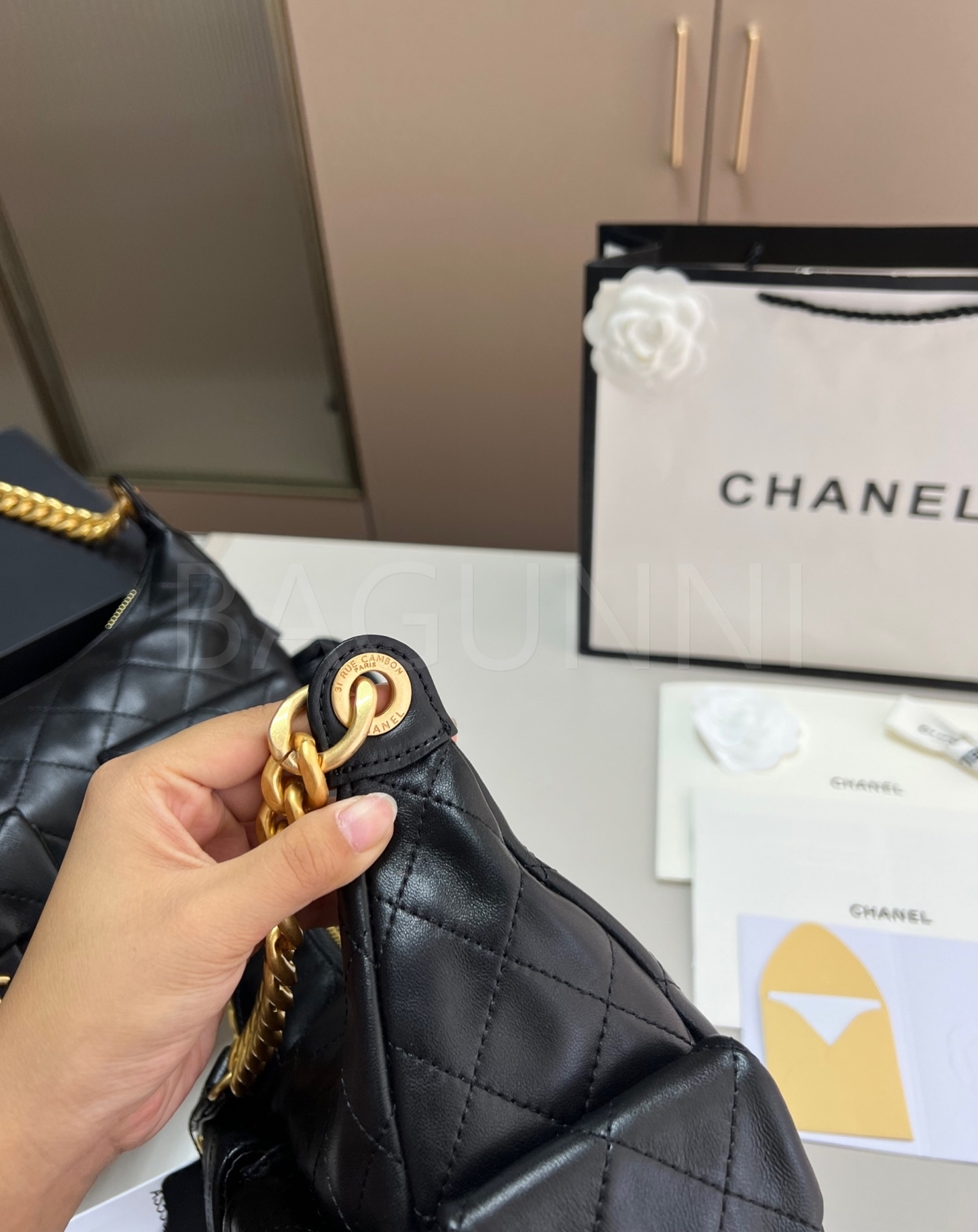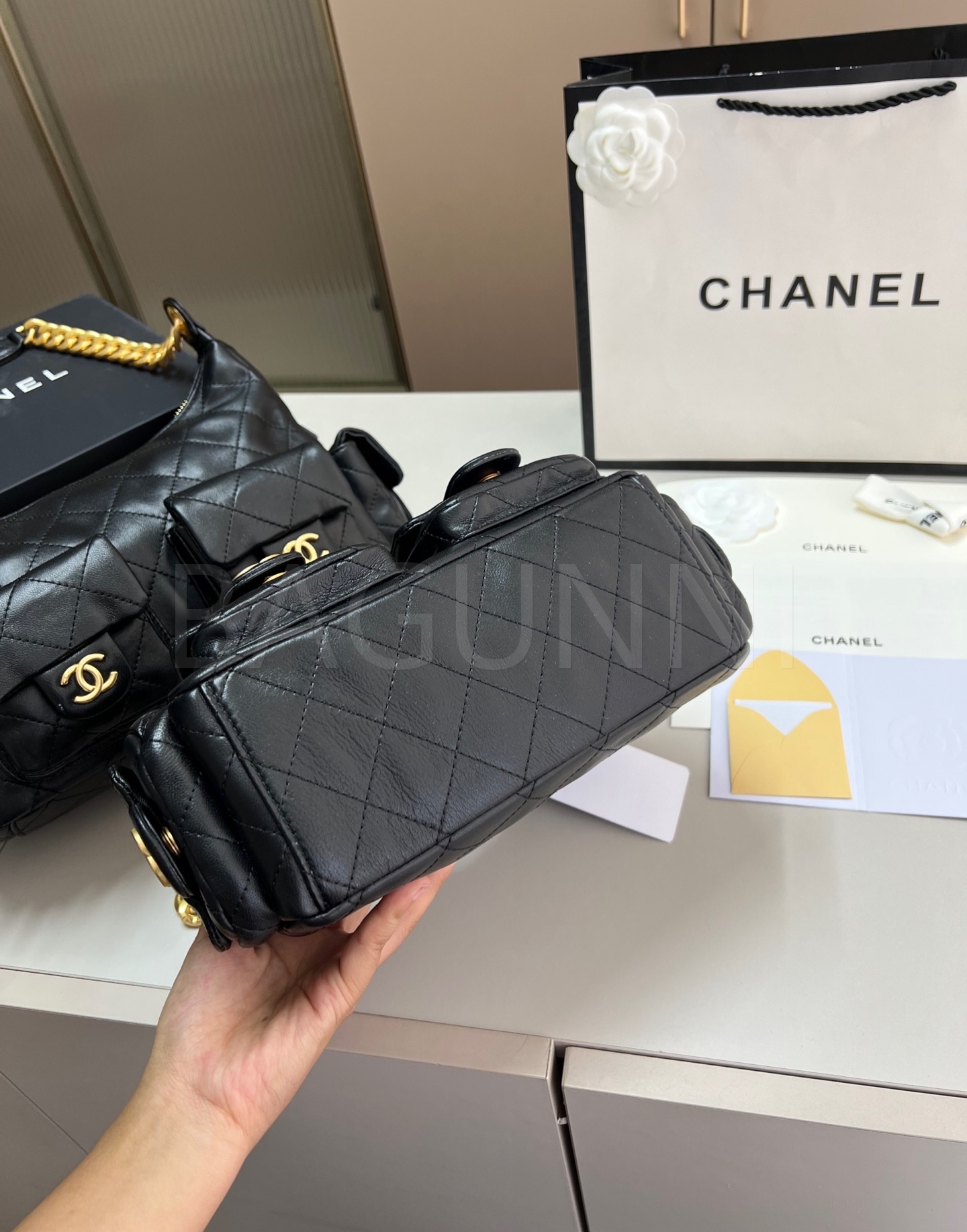 램스킨 특유의 매력이 돋보이는 샤넬 25C 호보 백입니다.
