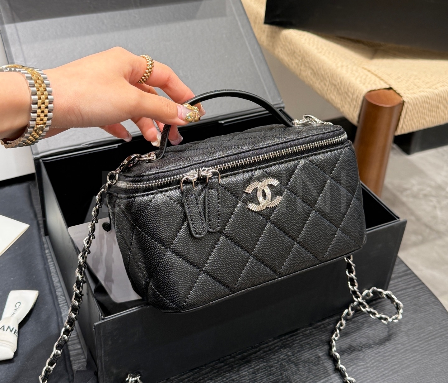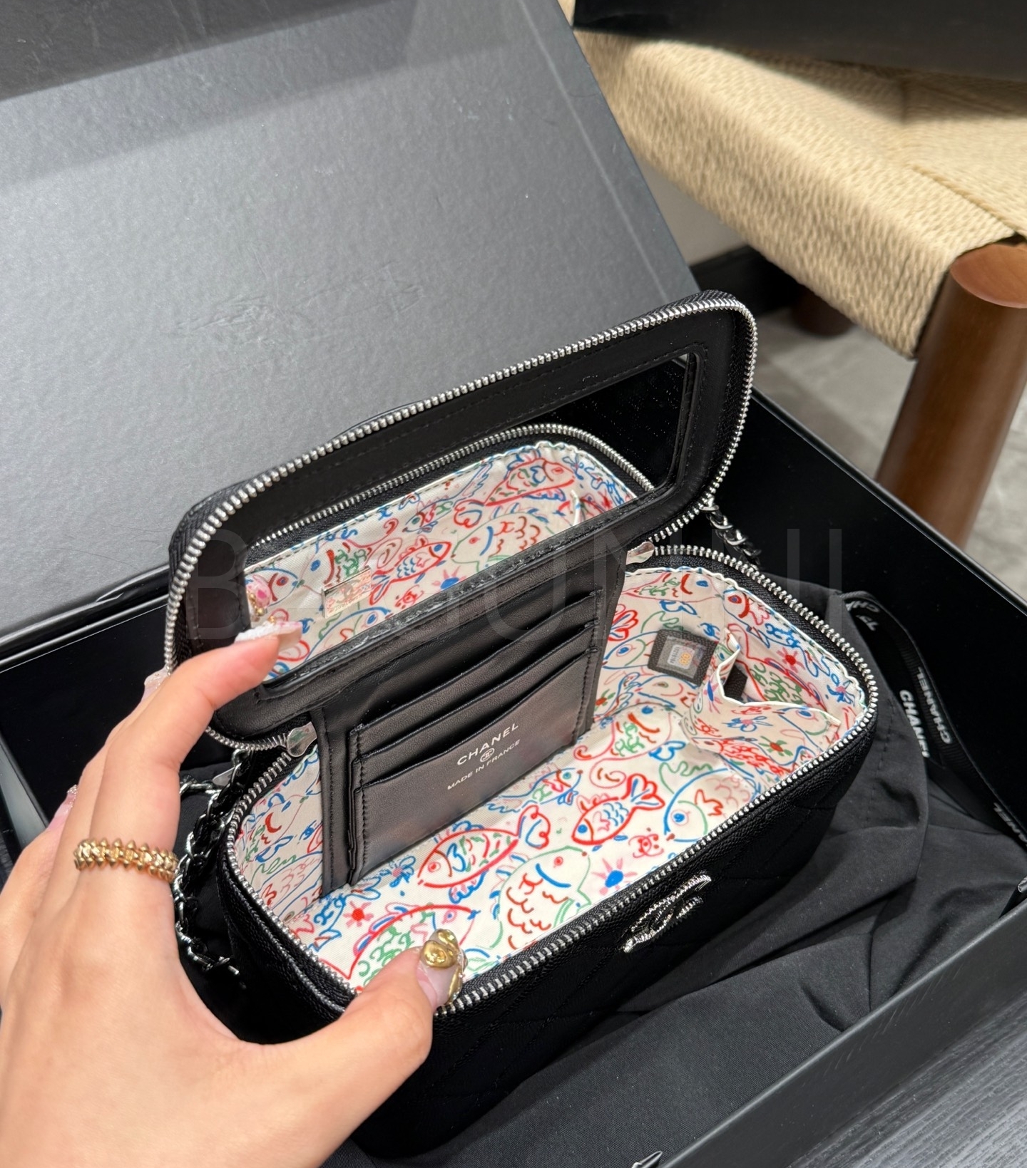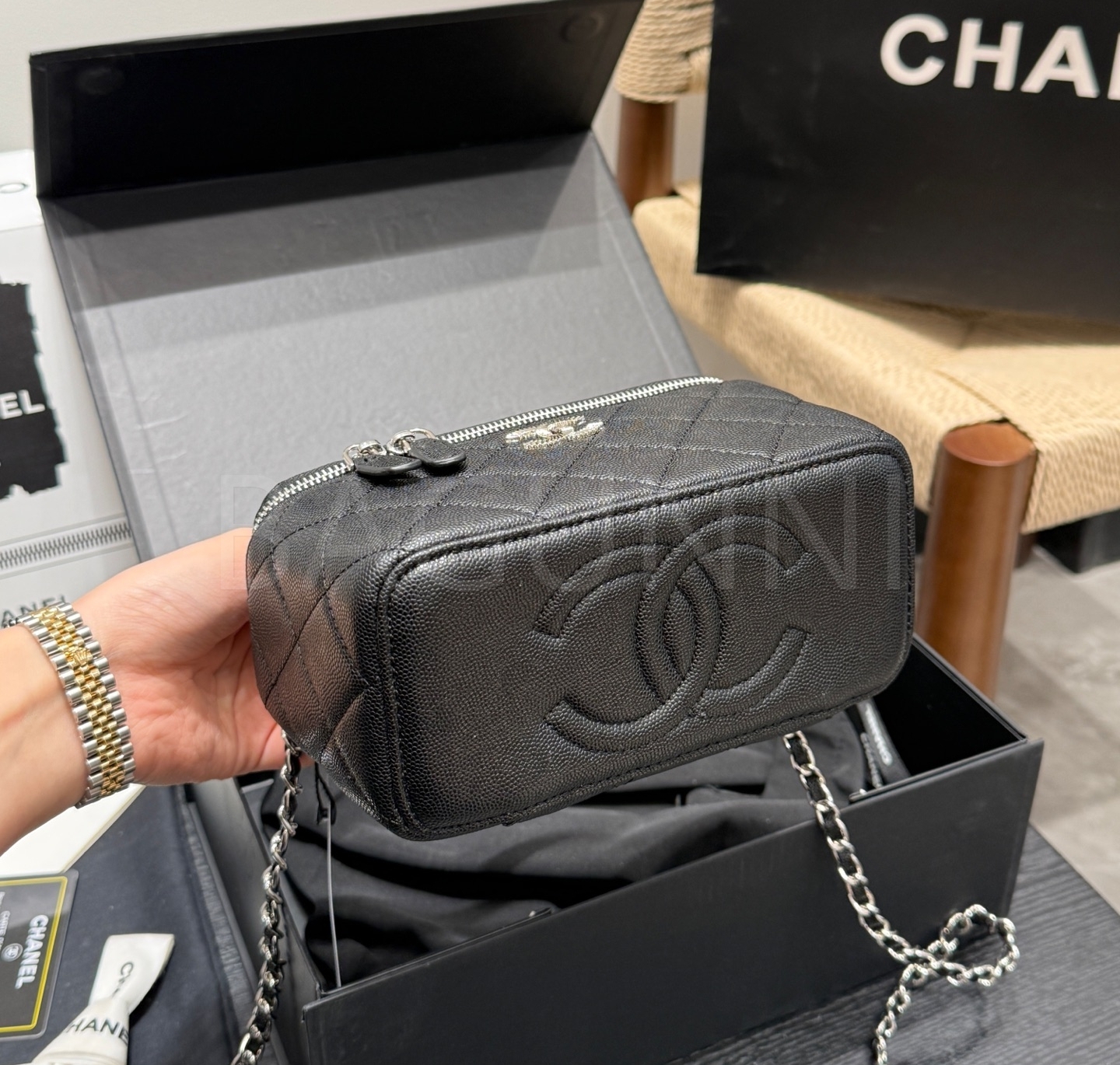 캐비어 가죽 특유의 매력이 돋보이는 샤넬 25P 코스메틱 케이스입니다.