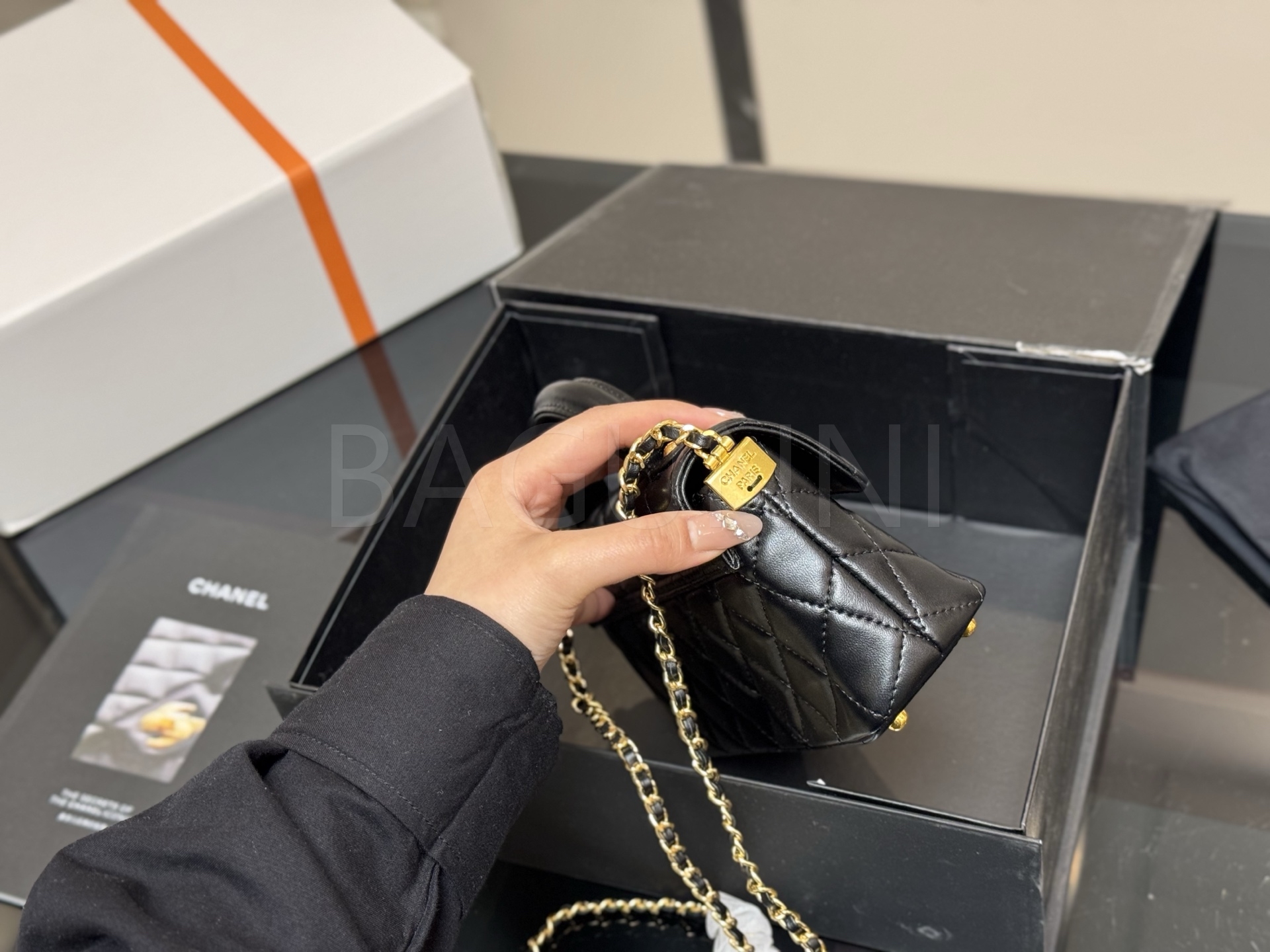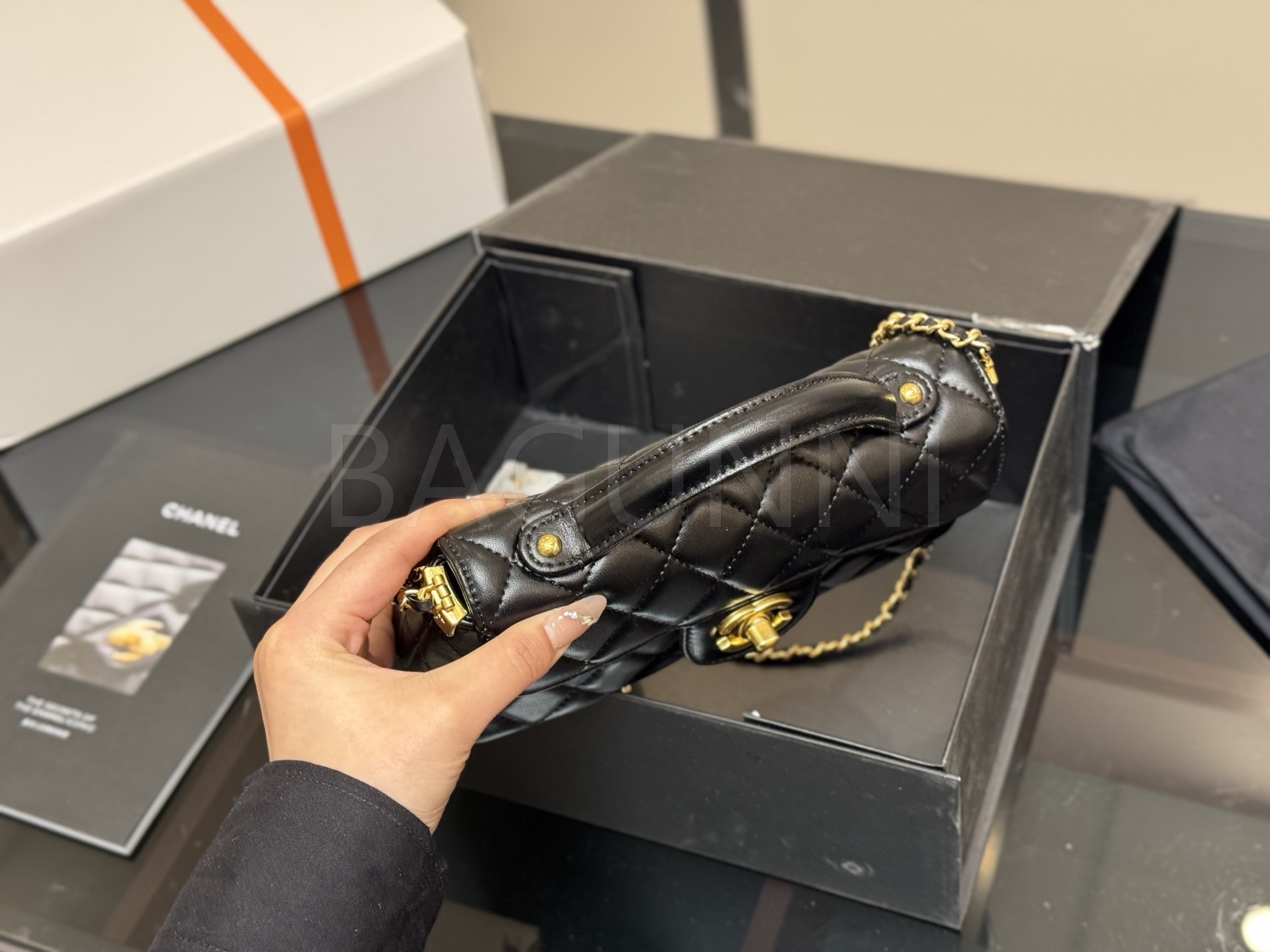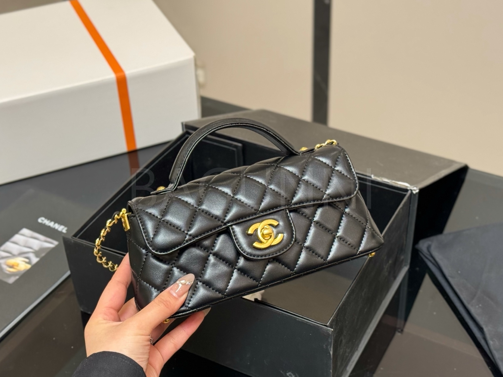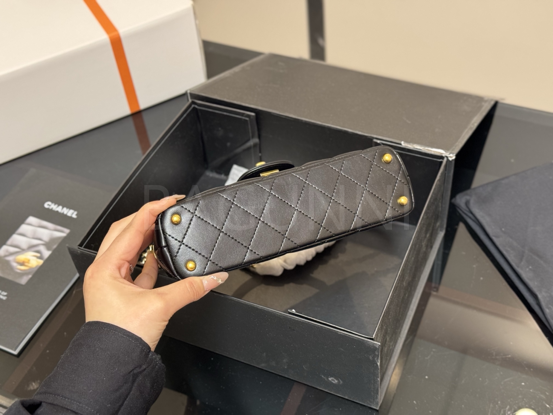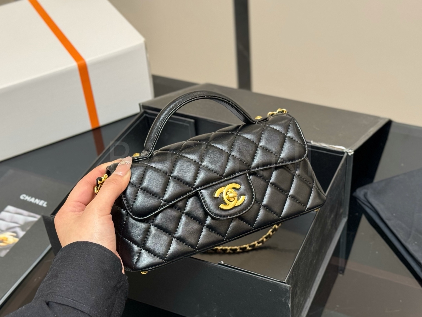 세련된 무드가 돋보이는 샤넬 25P 켈리 백입니다.