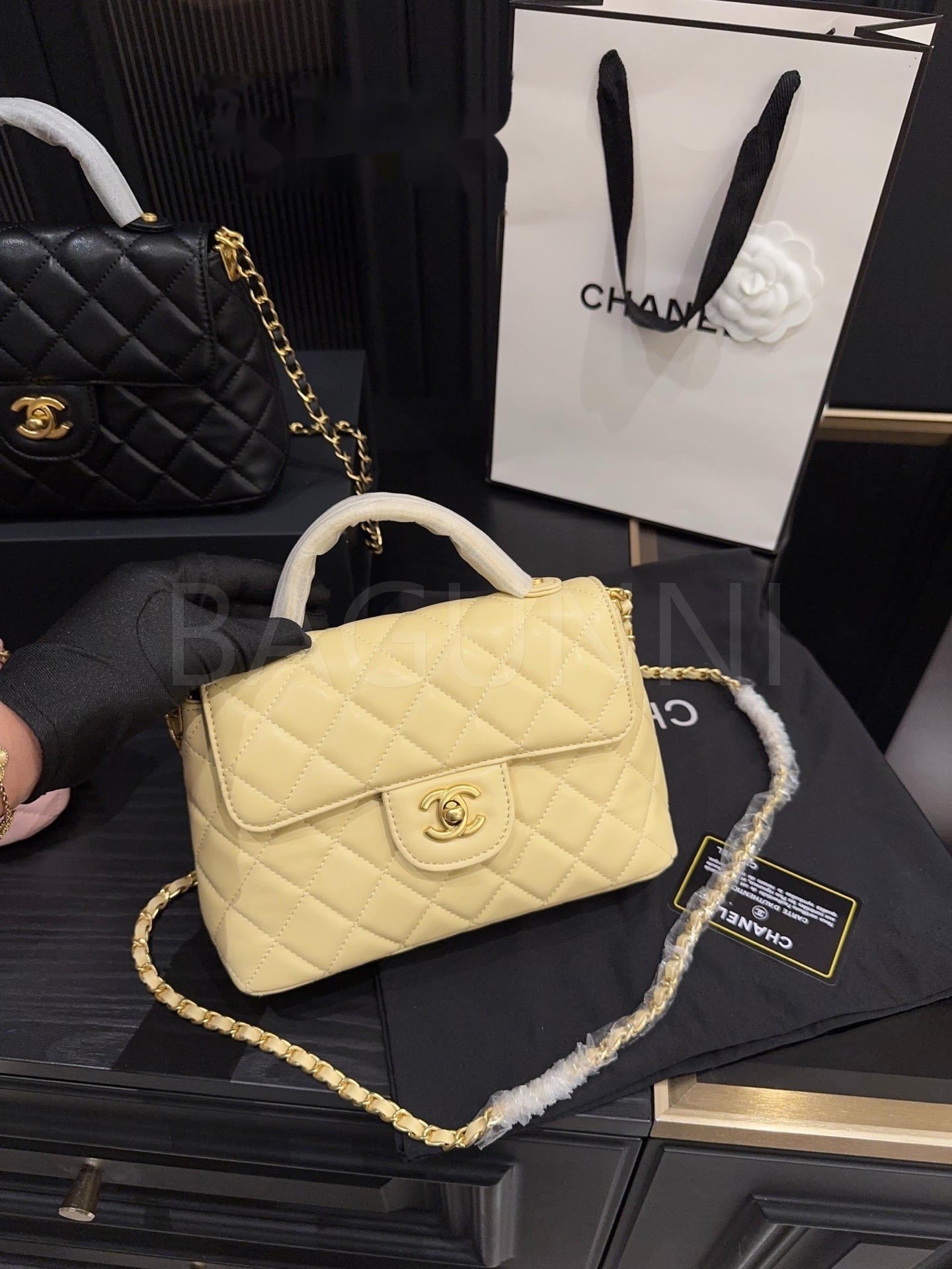 세련된 무드가 돋보이는 샤넬 25P 켈리 백입니다.