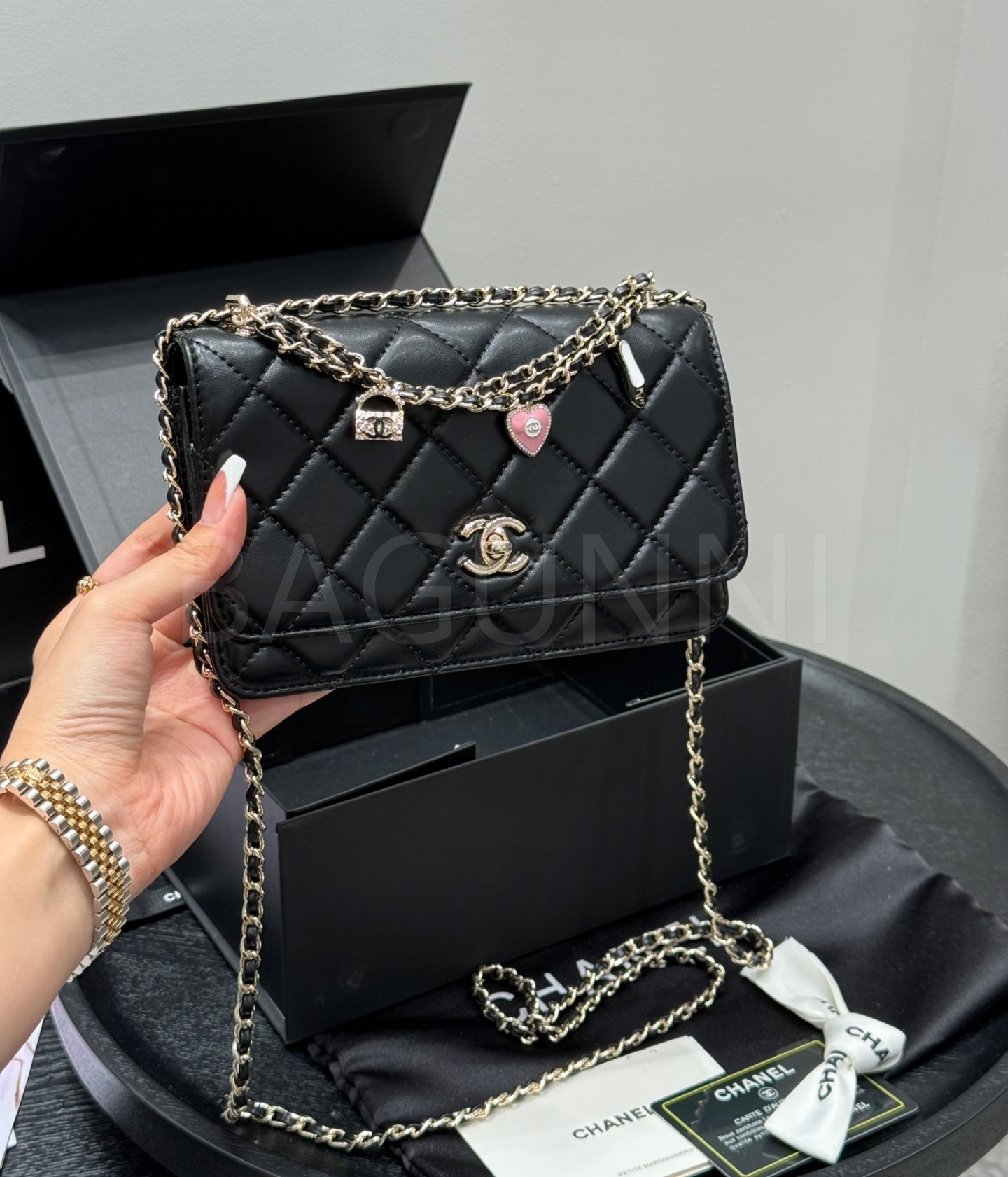 탑핸들 디테일, 진주 장식 디테일이 조화롭게 어우러져 완성도를 높여줍니다