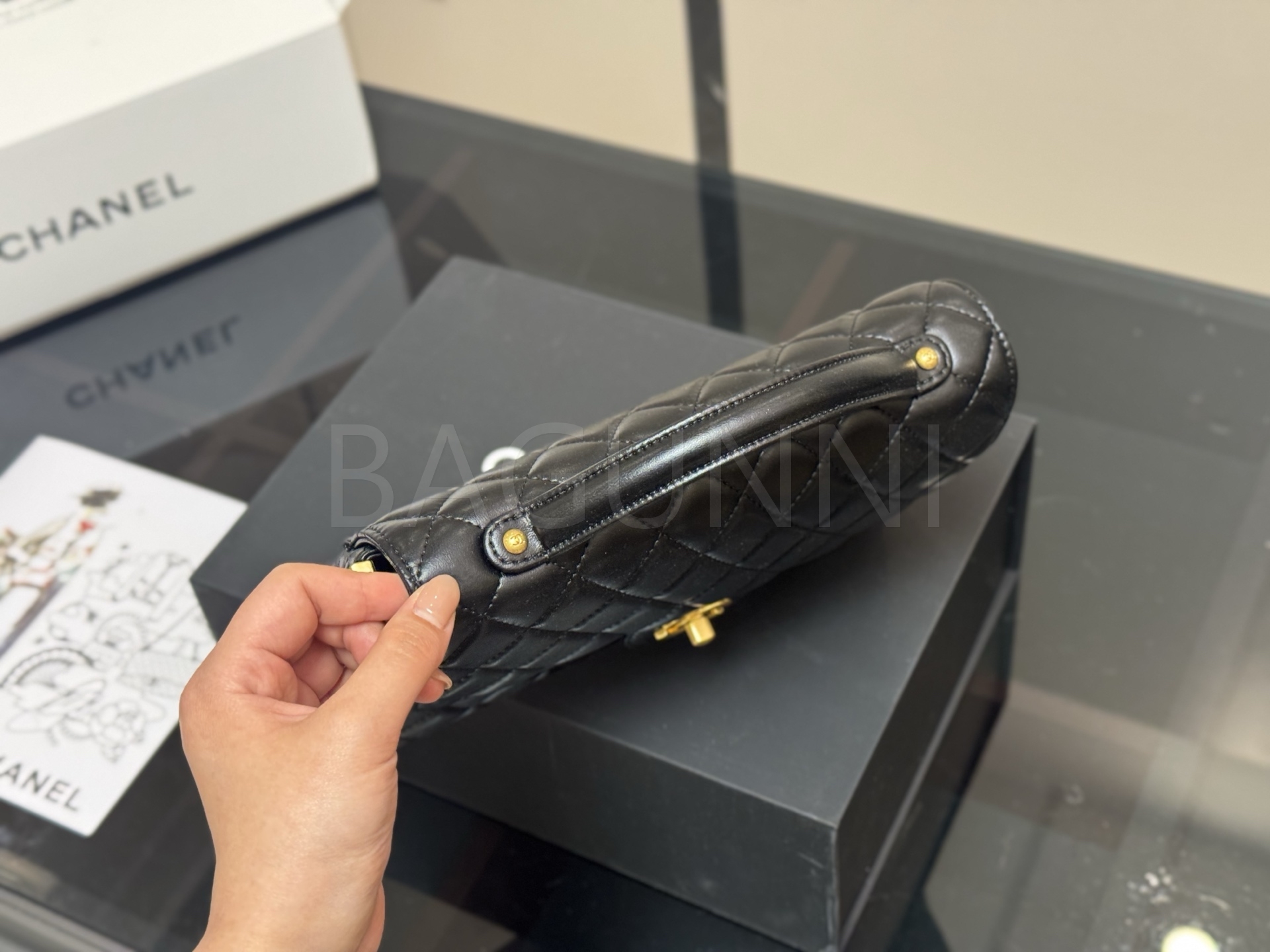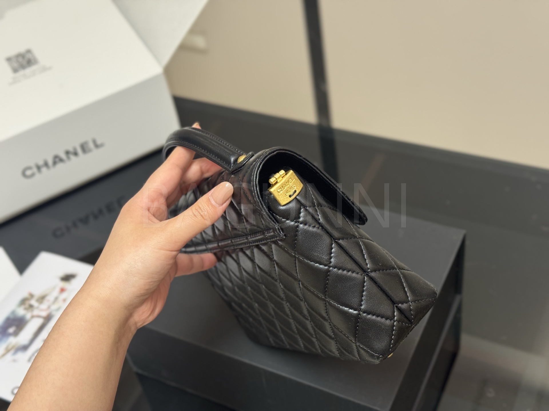 세련된 무드가 돋보이는 샤넬 25P 켈리 백입니다.