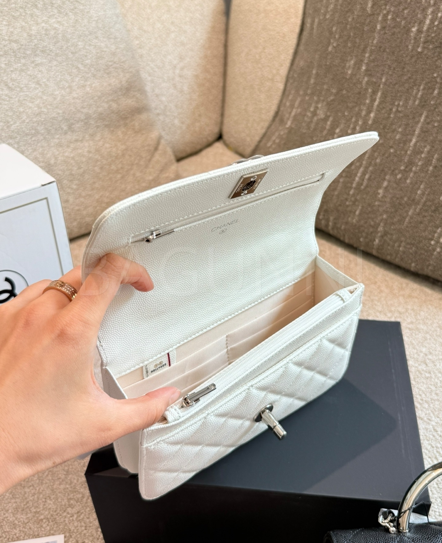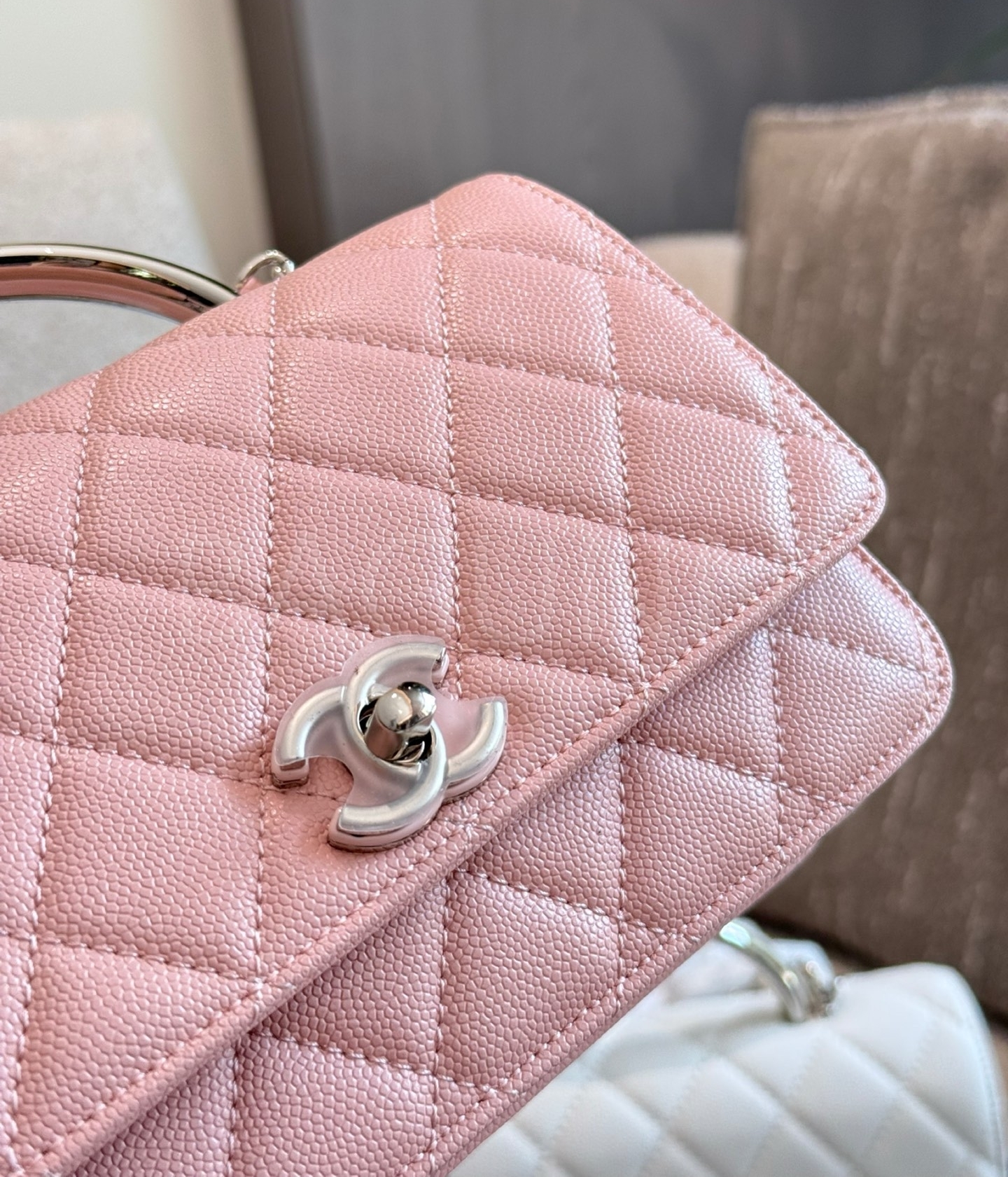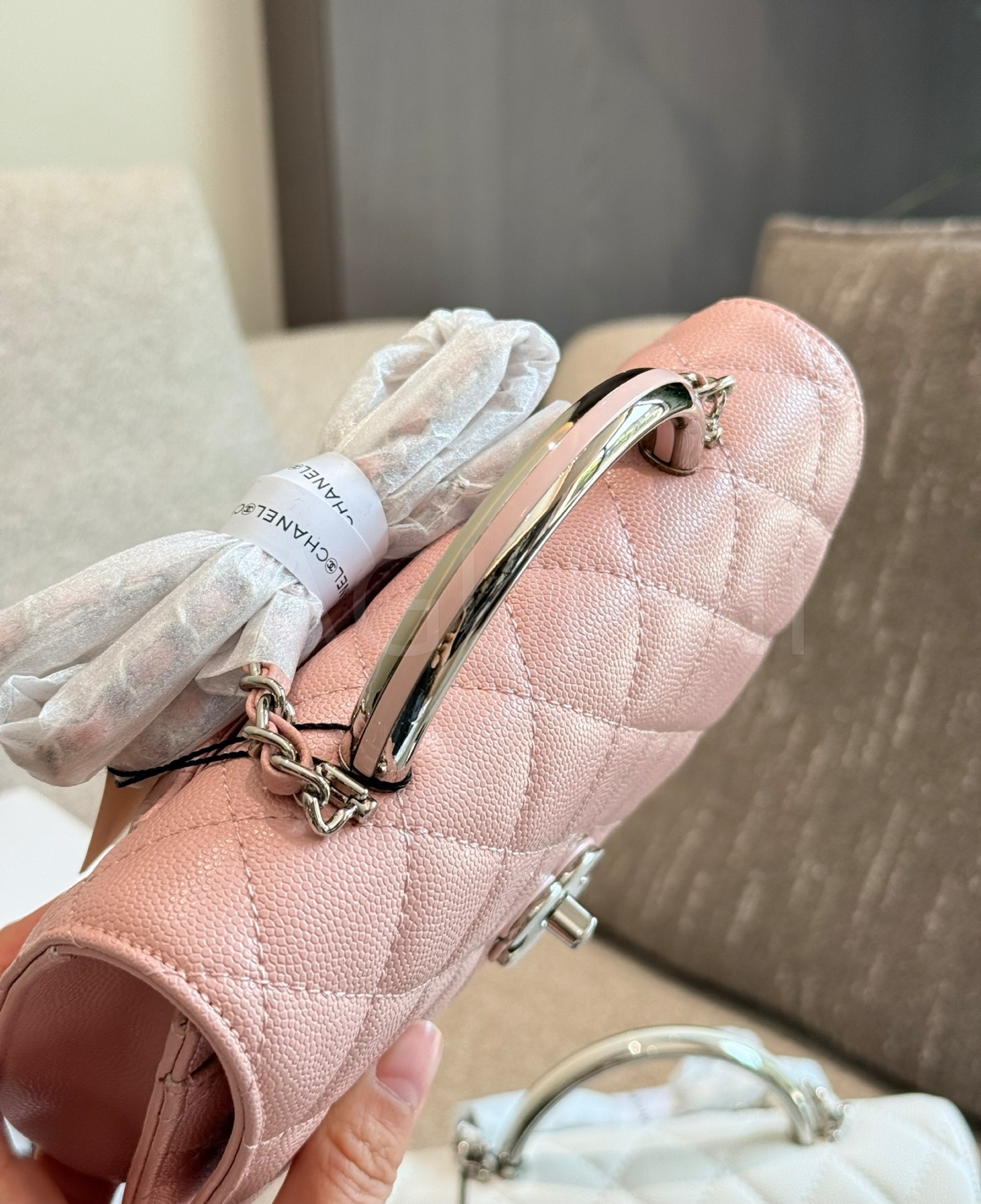 캐비어 가죽 특유의 매력이 돋보이는 샤넬 25P 탑핸들 WOC 체인 월렛입니다.