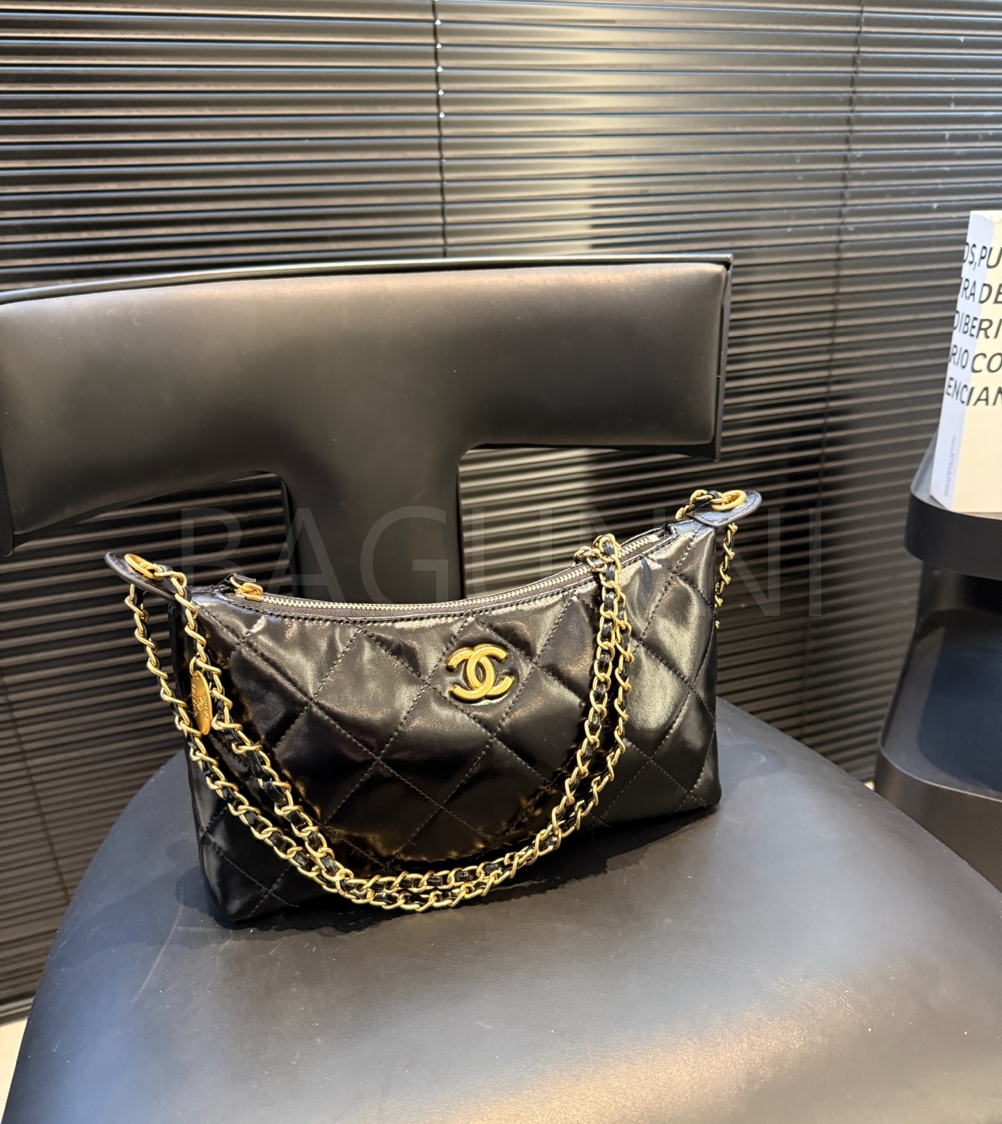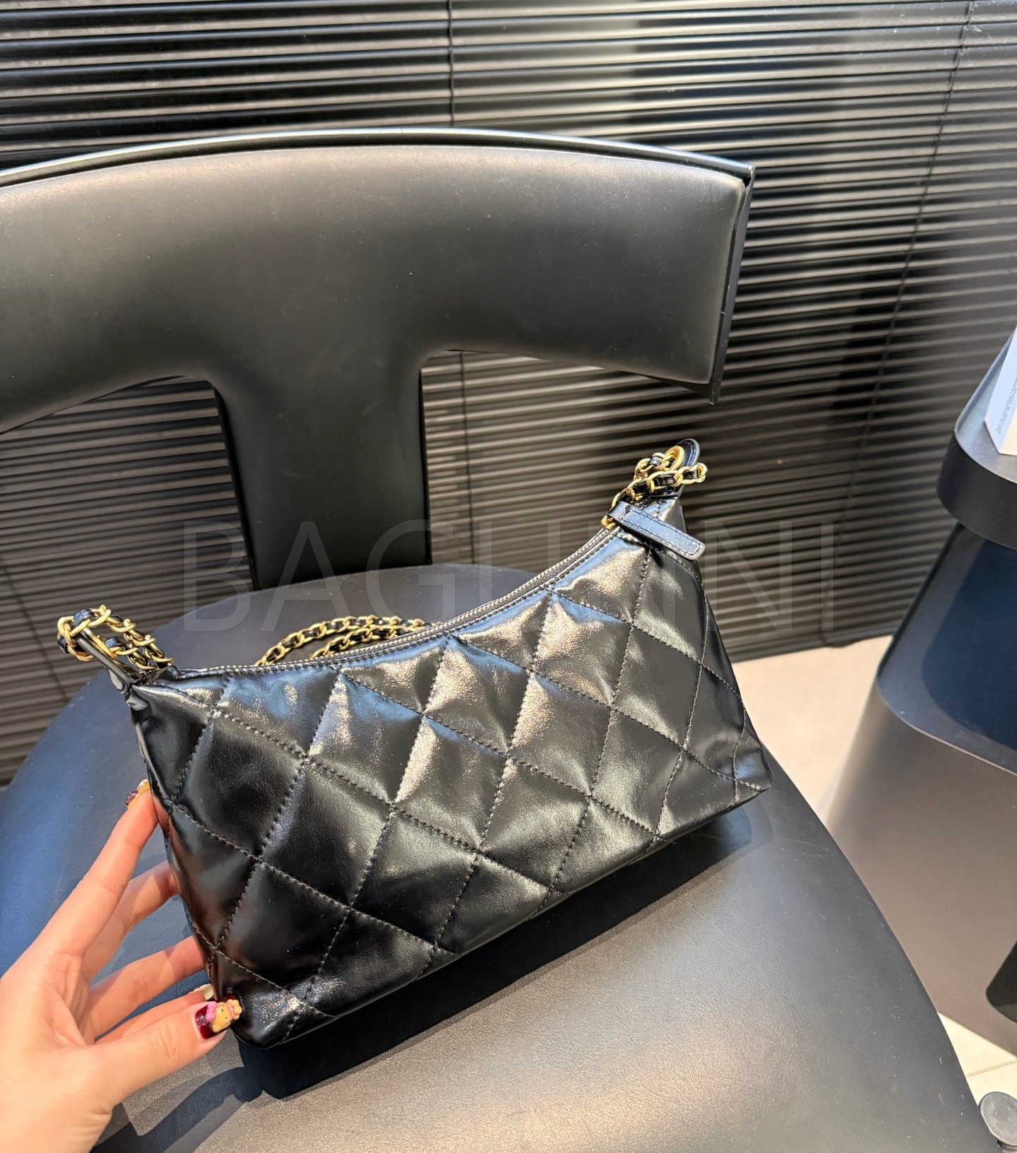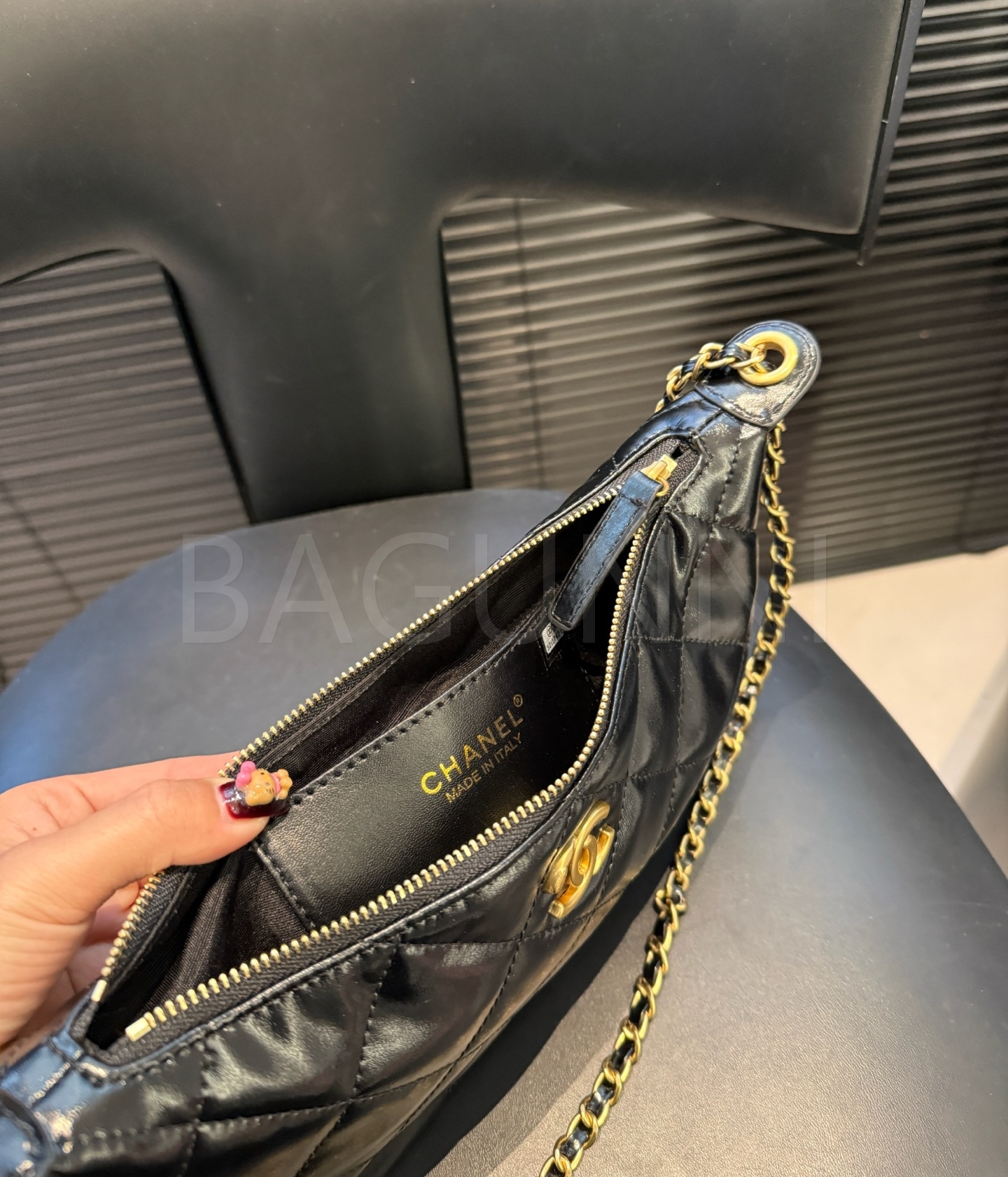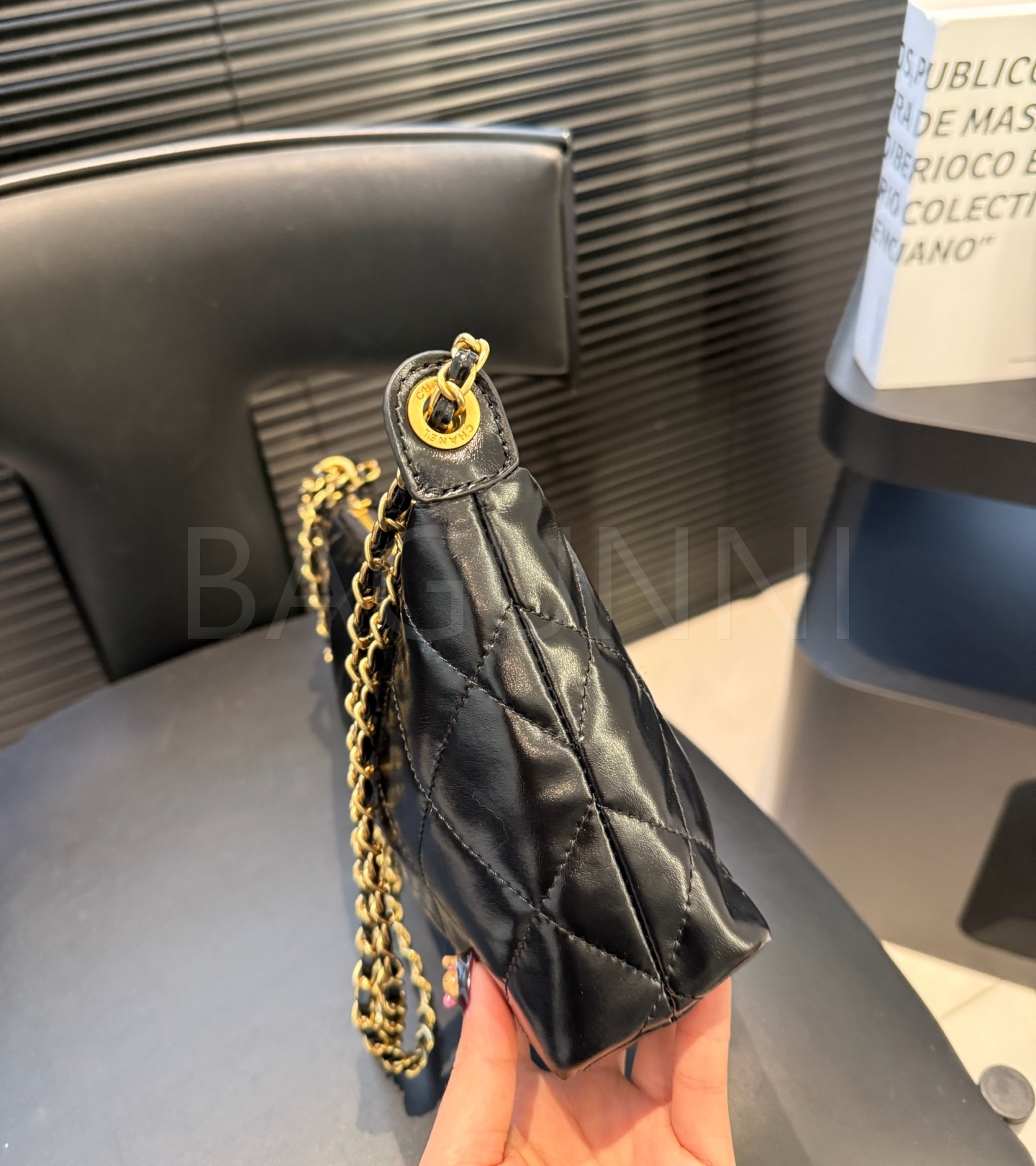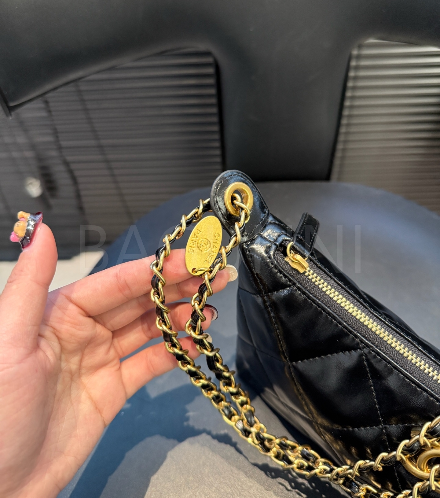 램스킨 특유의 매력이 돋보이는 샤넬 25S 코인 참 호보 백입니다.