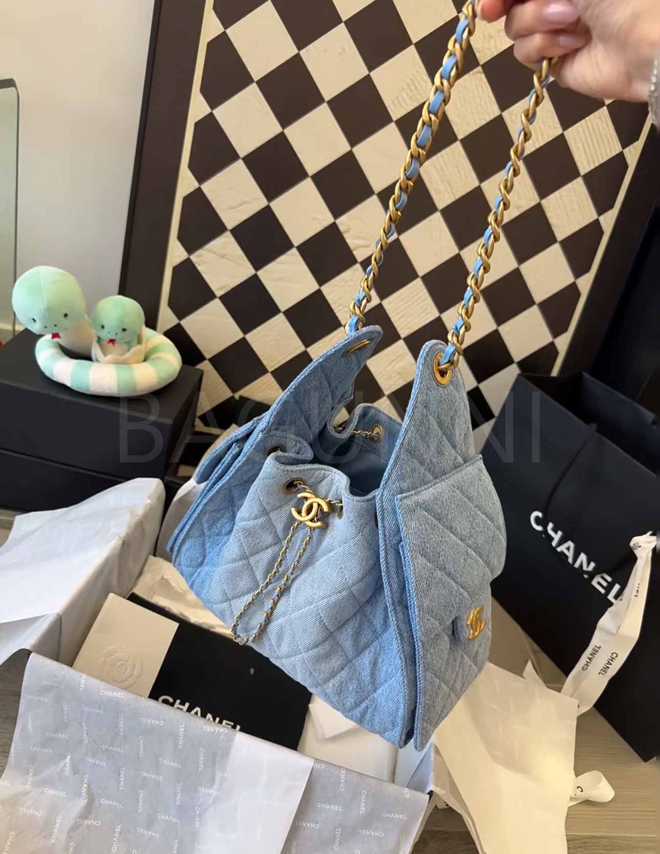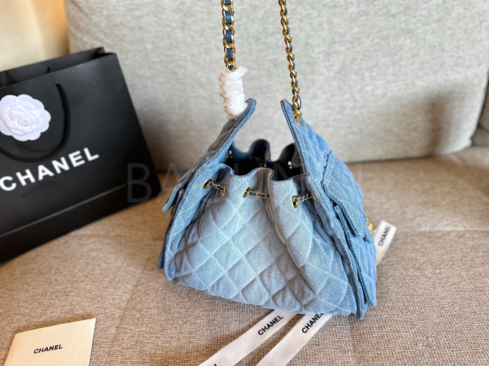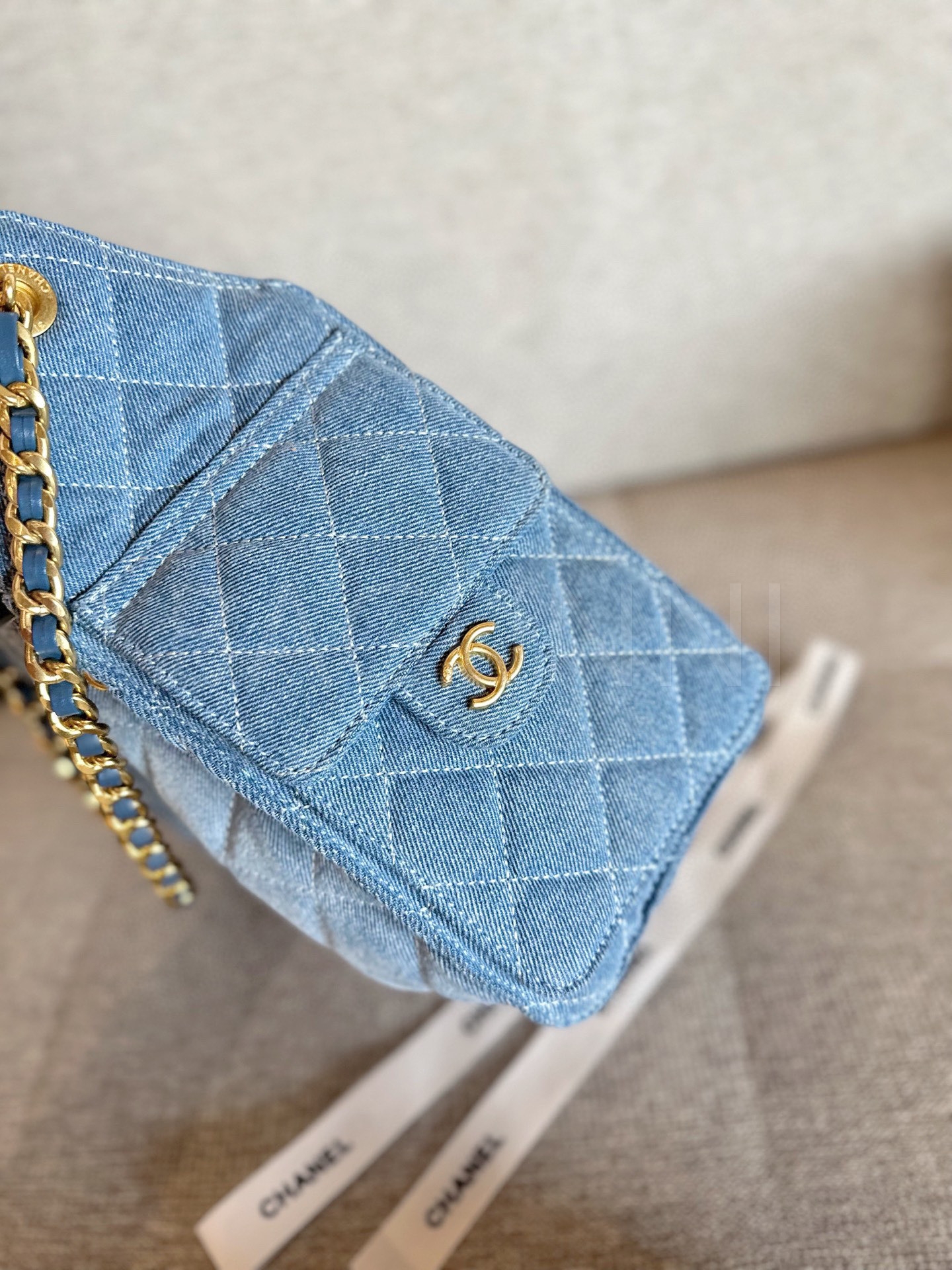 데님 특유의 매력이 돋보이는 샤넬 25S 호보 백입니다.