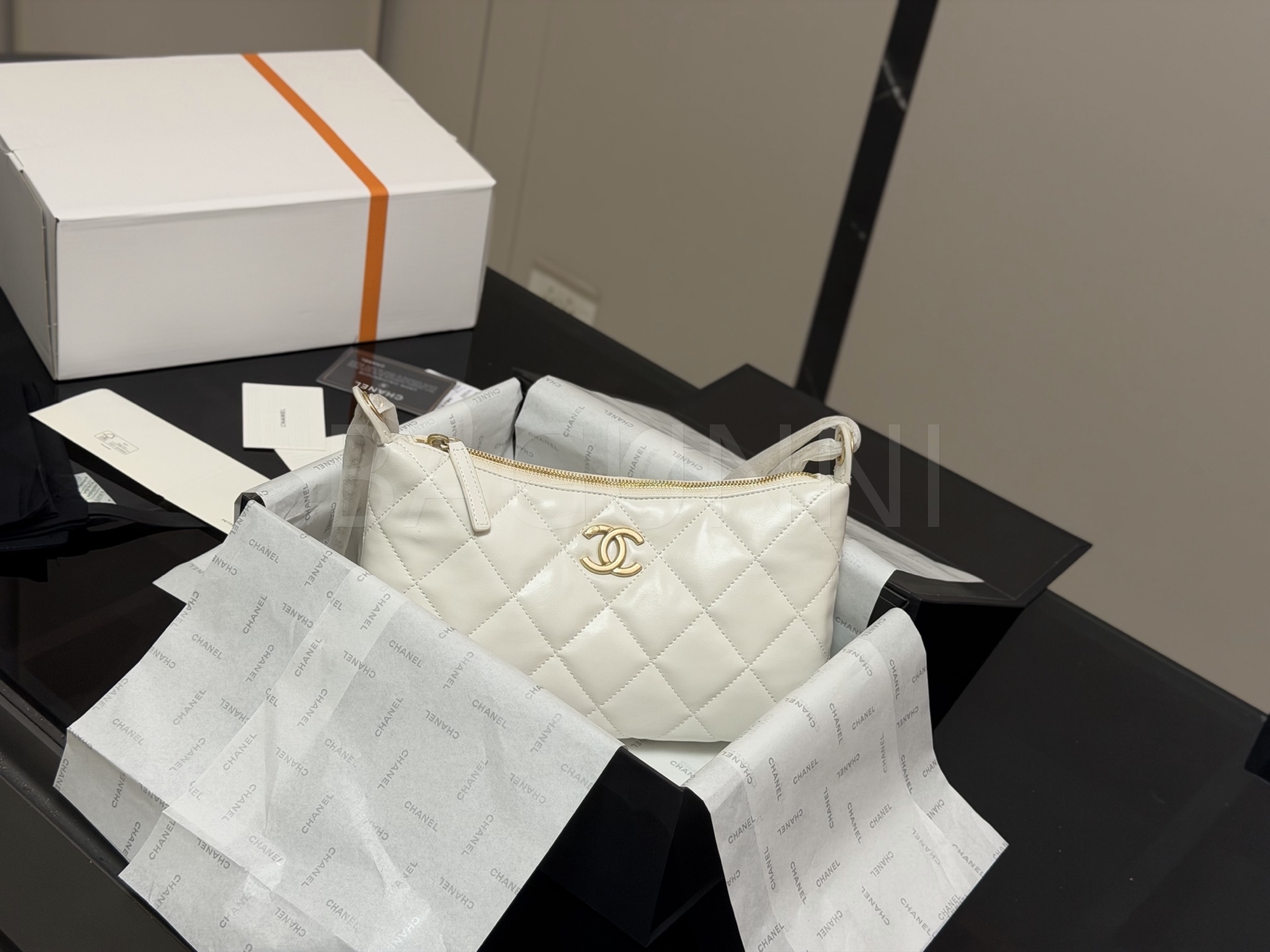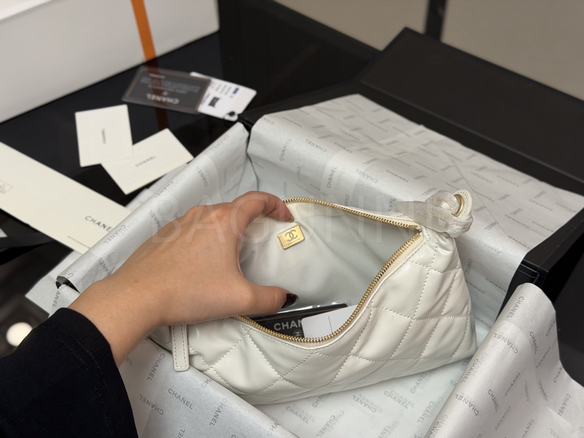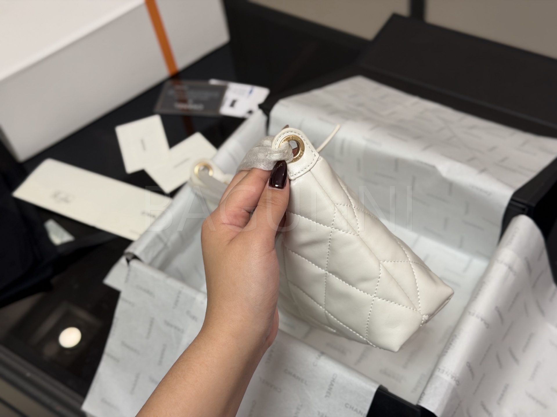 램스킨 특유의 매력이 돋보이는 샤넬 25S 코인 참 호보 백입니다.