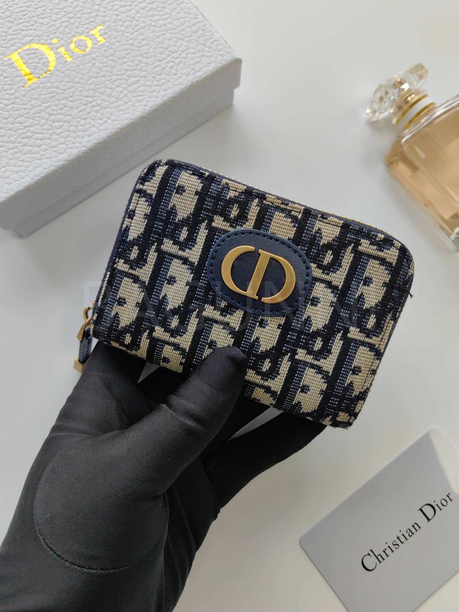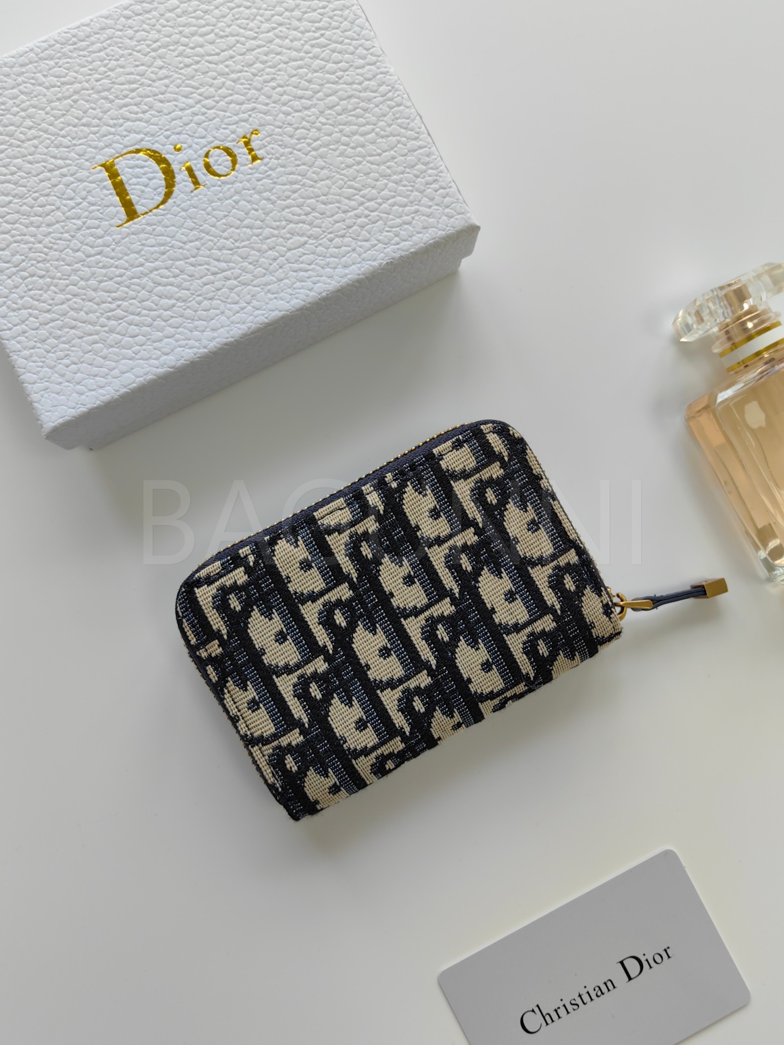 오블리크 자카드의 질감이 돋보이는 디올 30 몽테인 보야주르 지퍼 카드지갑입니다.