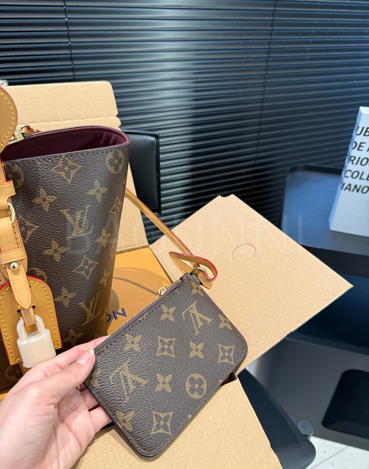 루이비통 특유의 세련된 분위기가 돋보이는 루이비통 올 인 BB 버킷 백입니다.
