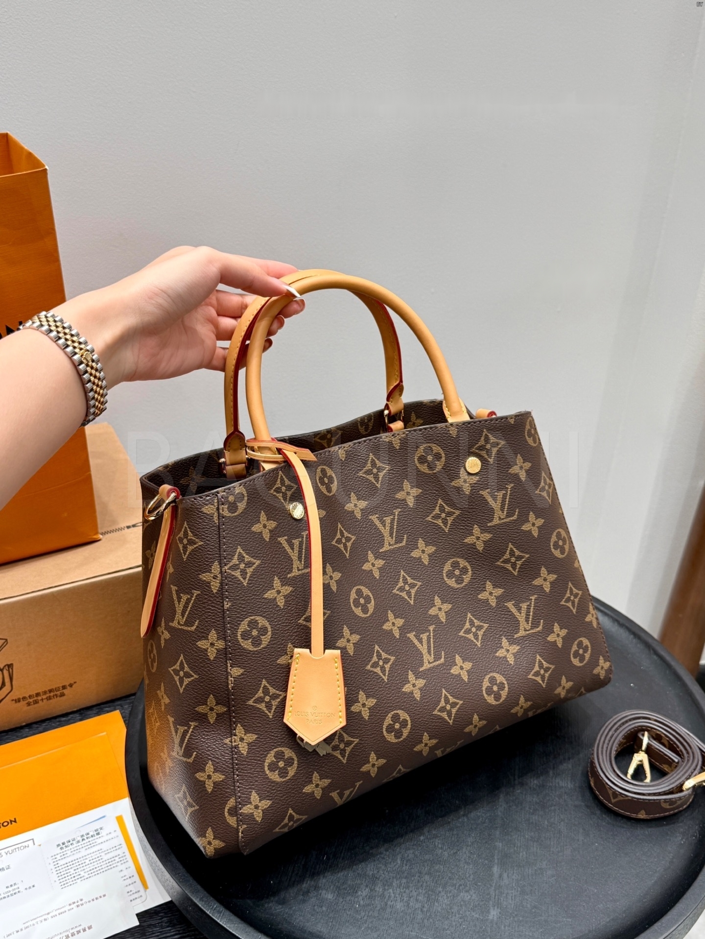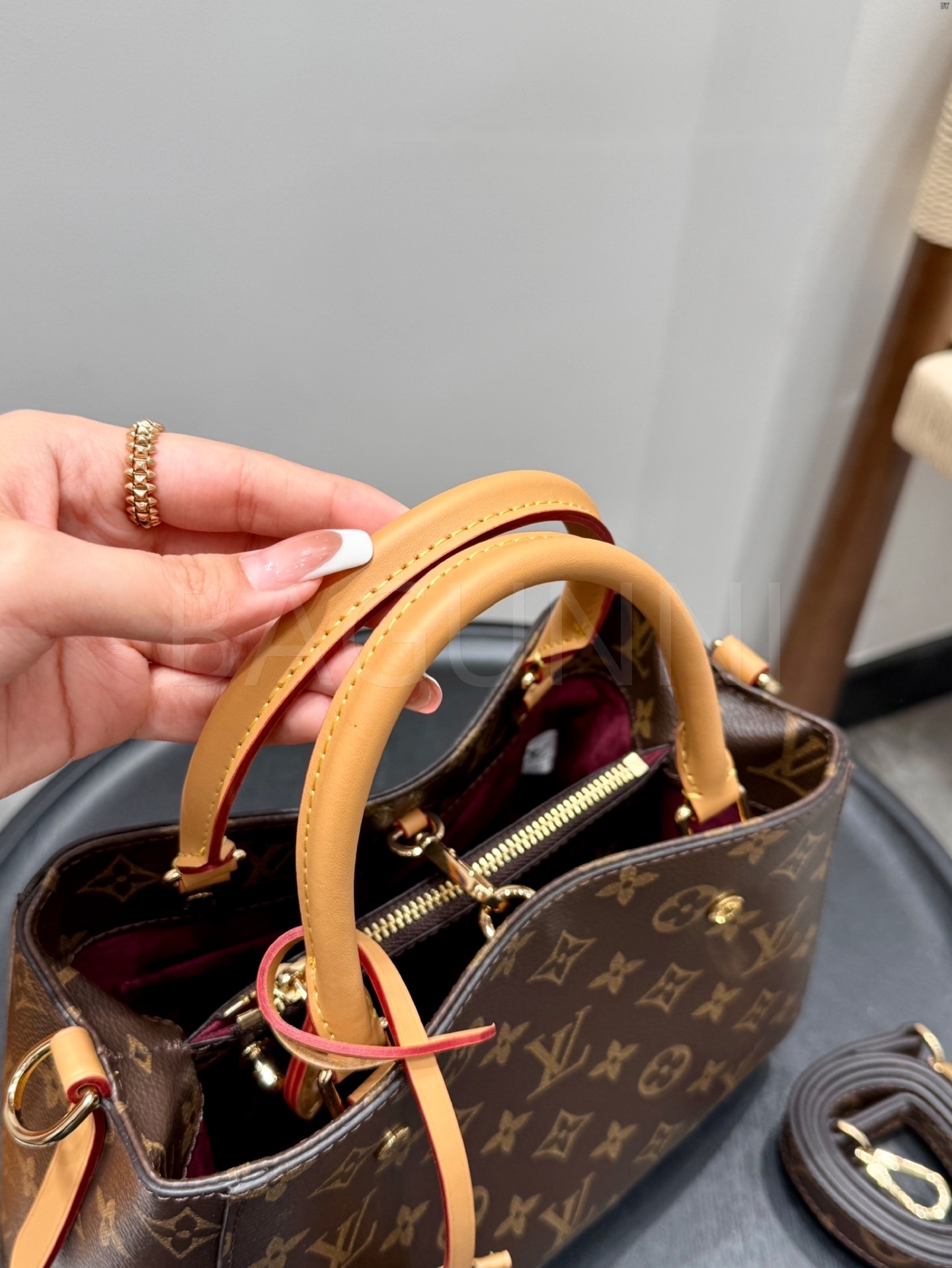 모노그램 패턴, 탑핸들, 숄더와 크로스 연출, 여유 있는 수납력 디테일이 조화롭게 어우러져 완성도를 높여줍니다 필수 소지품을 여유 있게 수납하기 좋습니다