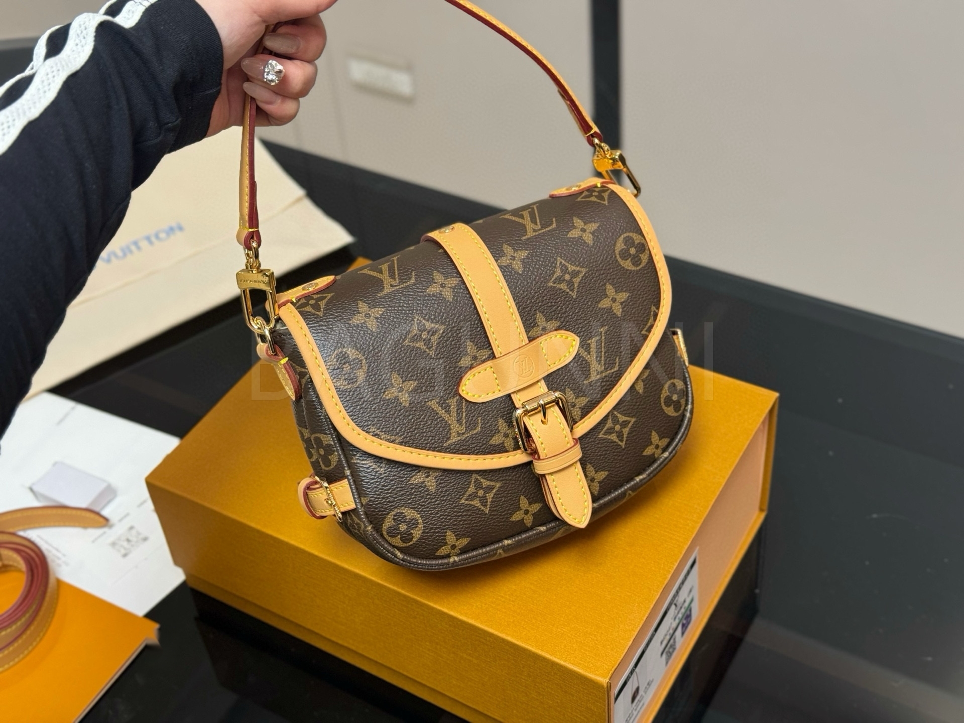 루이비통 특유의 세련된 분위기가 돋보이는 루이비통 소뮈르 BB 메신저 백입니다.