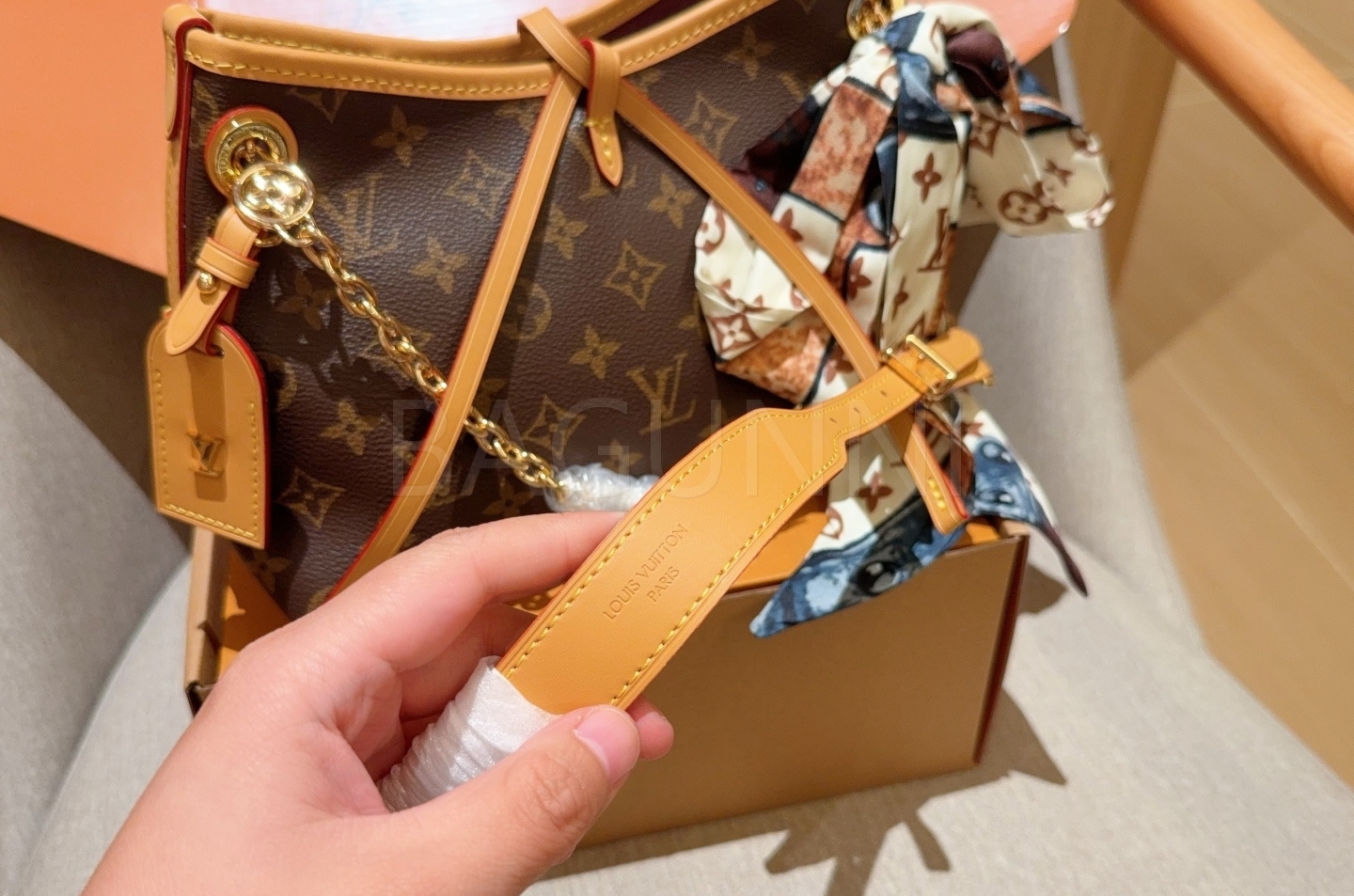 모노그램 패턴, 체인 스트랩, 숄더와 크로스 연출, 슬림한 숄더 실루엣 디테일이 조화롭게 어우러져 완성도를 높여줍니다