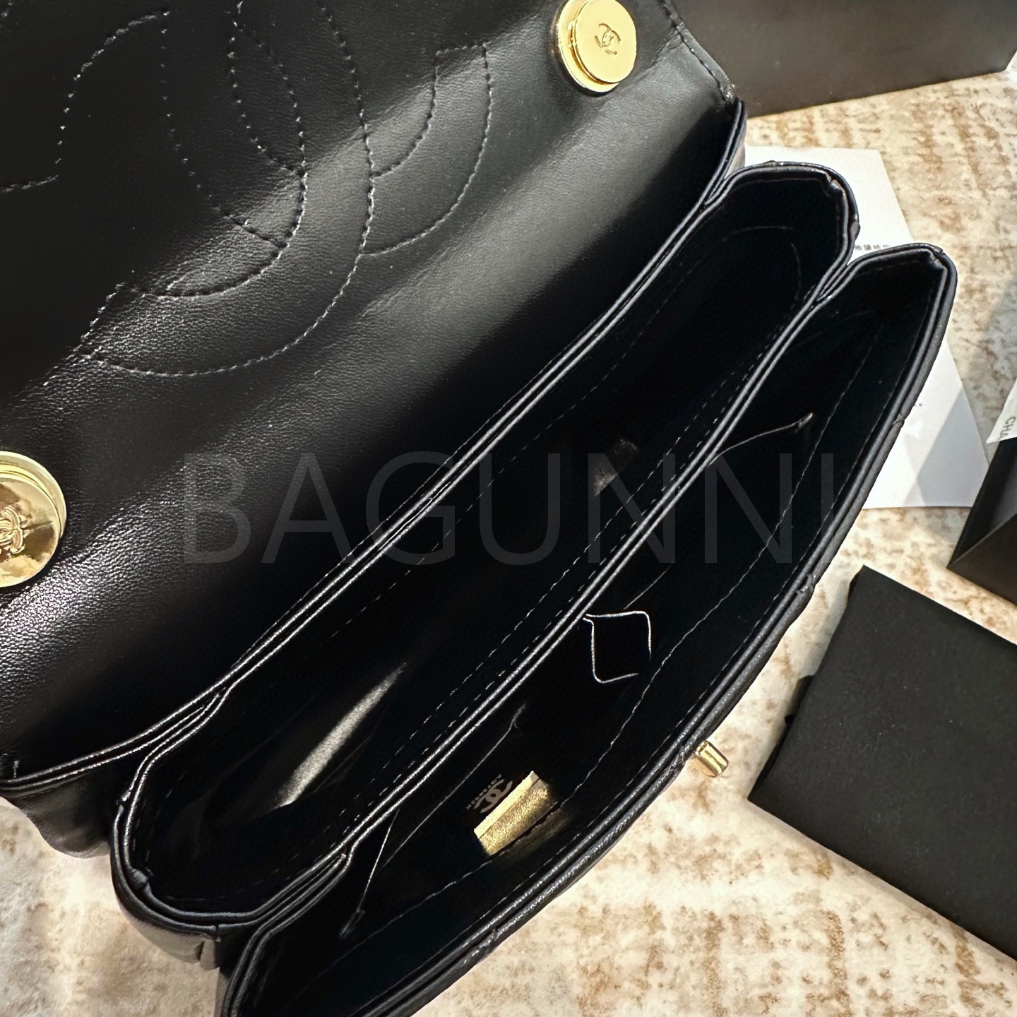 블랙 컬러가 감각적인 포인트를 더해줍니다 더블 C 로고, 넉넉한 수납력 디테일이 조화롭게 어우러져 완성도를 높여줍니다 빈티지한 분위기로 스타일링에 멋을 더해줍니다