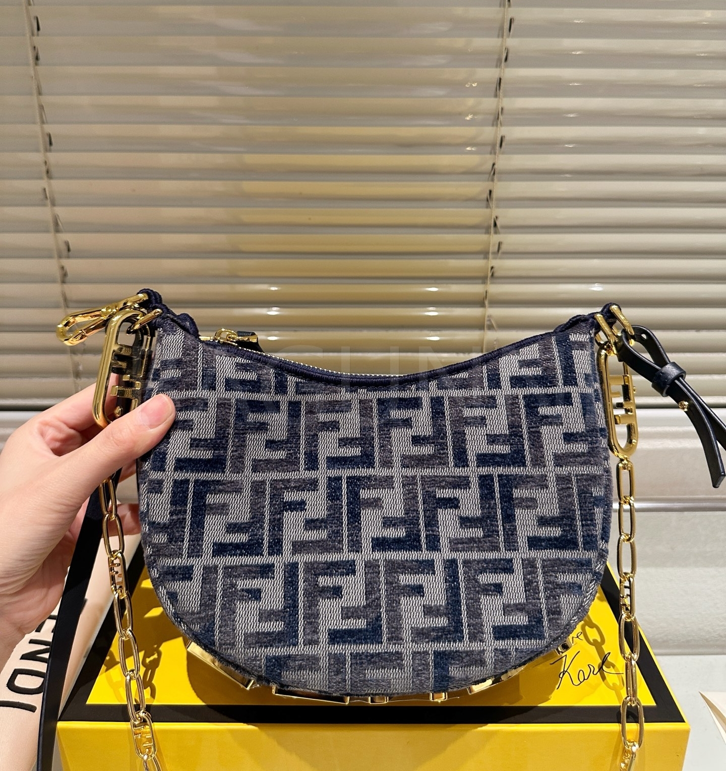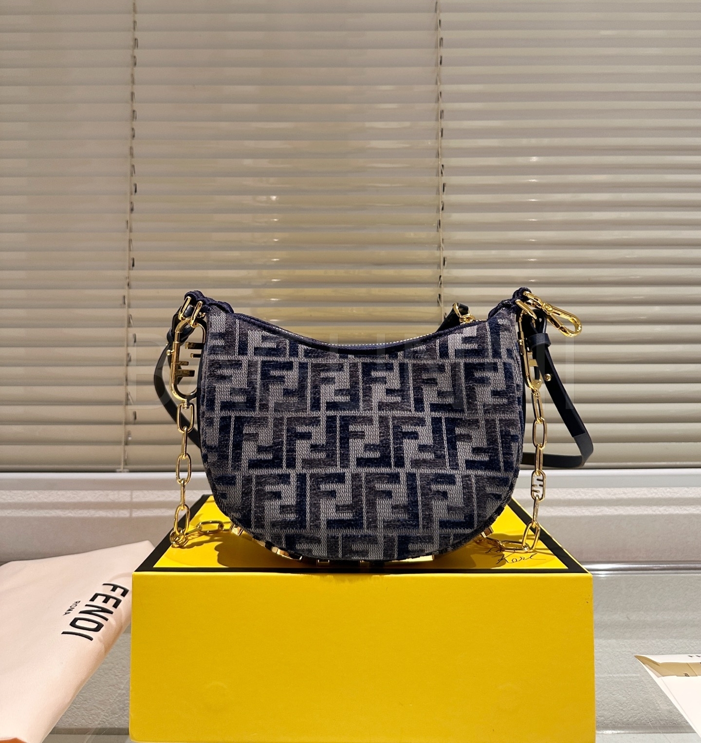 펜디 FF 크레센트 숄더백은 세련된 실루엣을 담은 아이템입니다.
