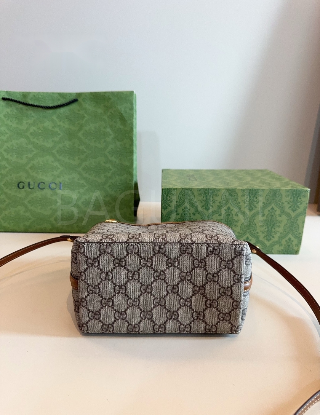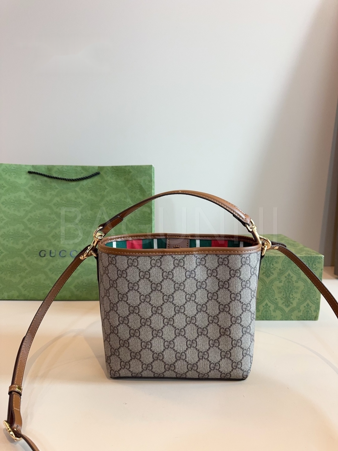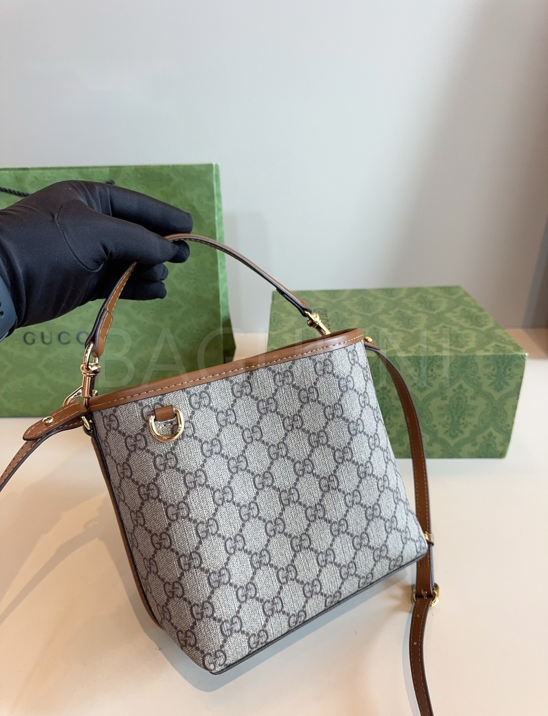 구찌 GG 패턴 버킷백입니다. 가죽 특유의 질감이 자연스럽게 살아 있으며 브랜드 특유의 분위기를 편하게 즐기기 좋습니다.
