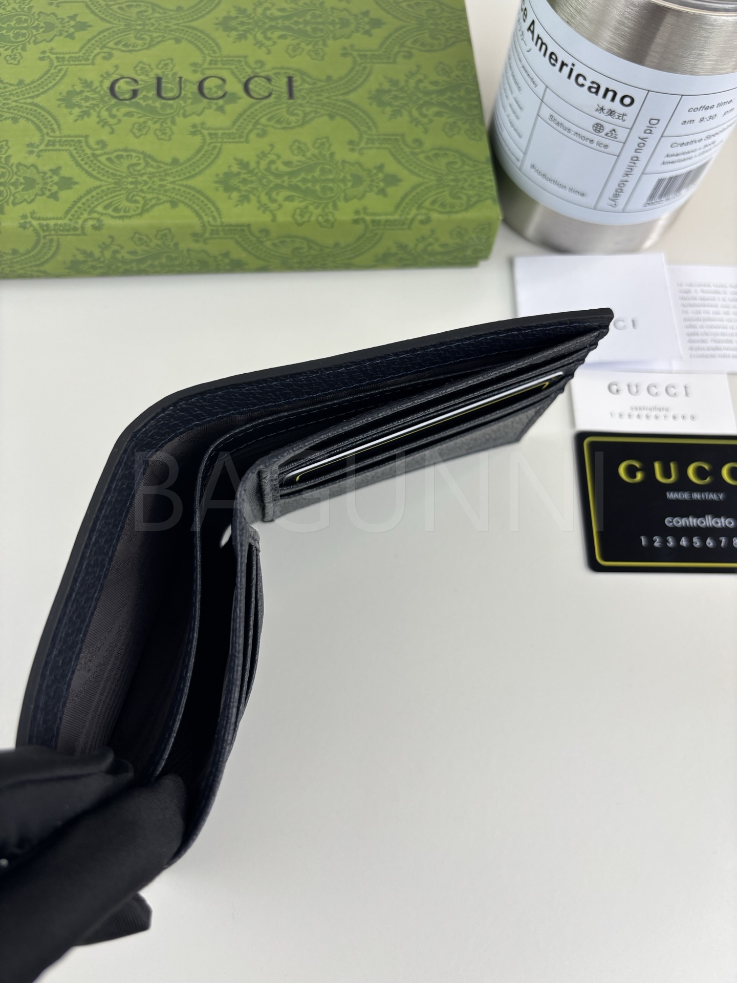 구찌 GG 수프림 반지갑 특유의 분위기가 자연스럽게 드러나는 디자인입니다.