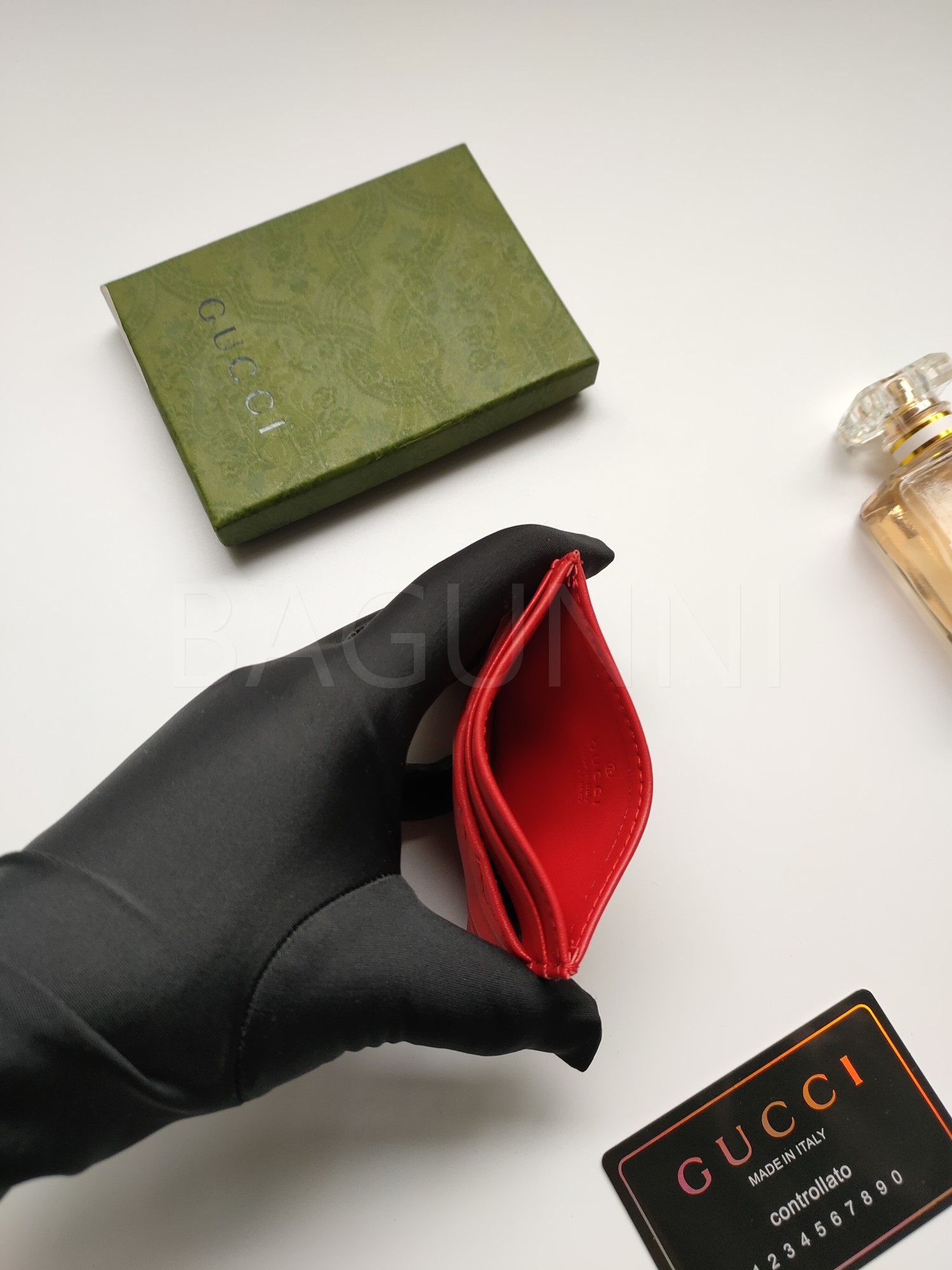 카프스킨의 질감이 돋보이는 구찌 GG 마몬트 카드지갑입니다.