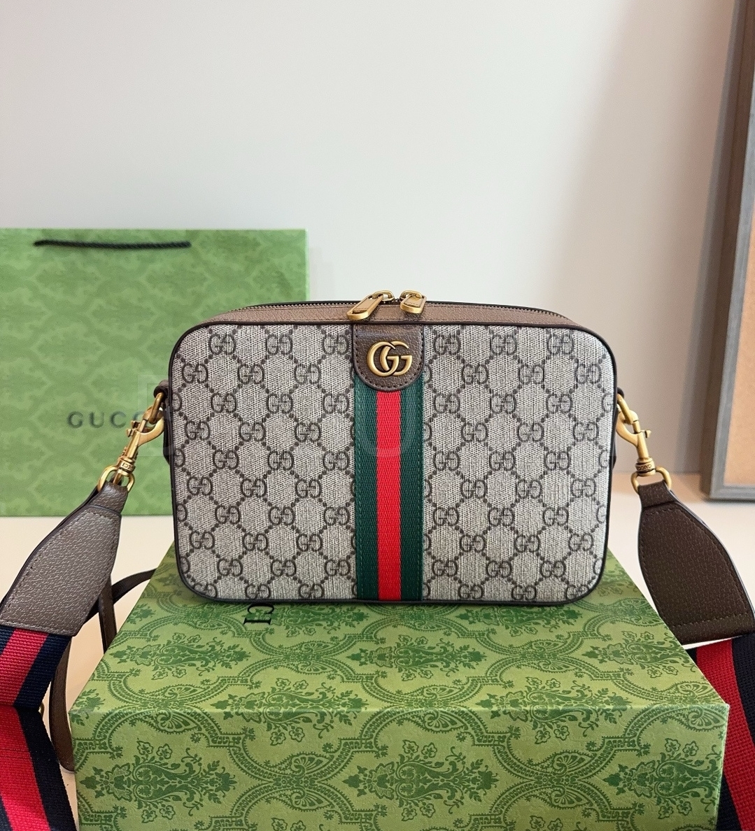 구찌 GG 패턴 카메라백입니다. 브랜드 특유의 분위기를 편하게 즐기기 좋습니다.