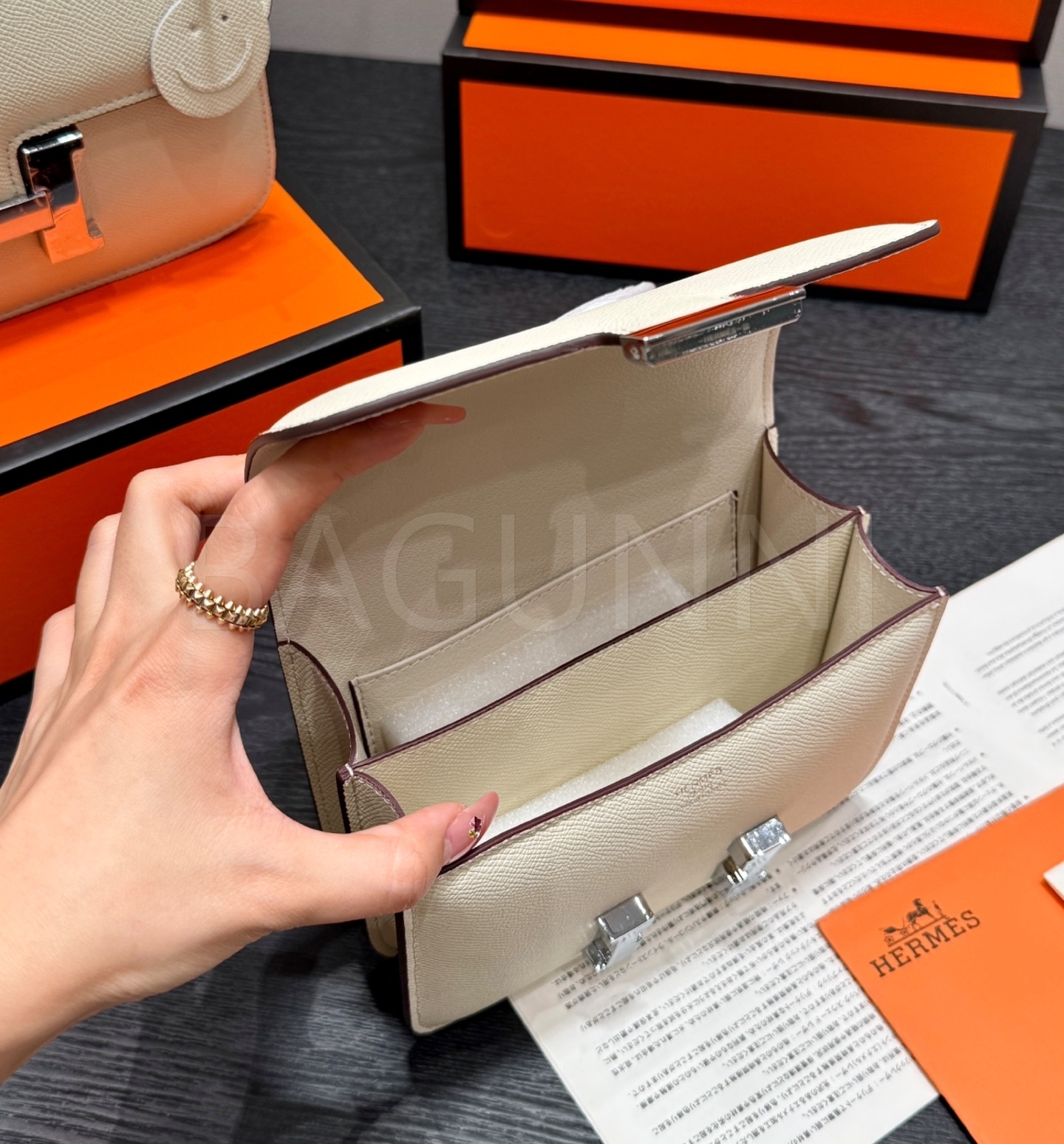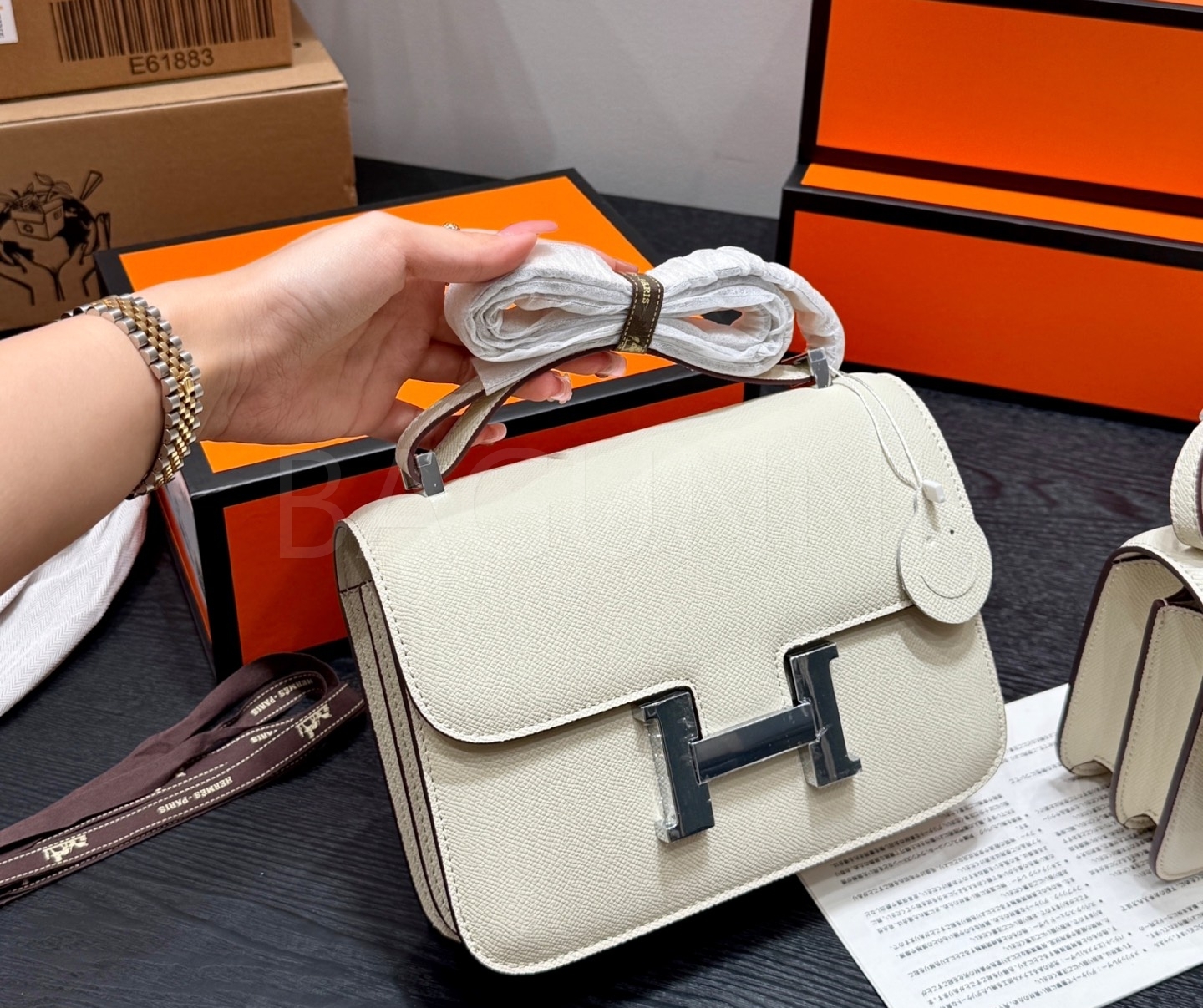 에르메스 콘스탄스 숄더백입니다. 가죽 특유의 질감이 자연스럽게 살아 있으며 브랜드 특유의 분위기를 편하게 즐기기 좋습니다.
