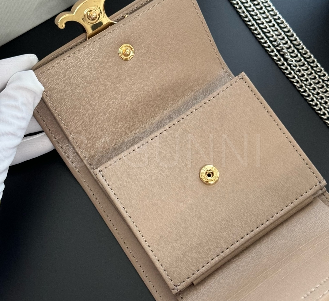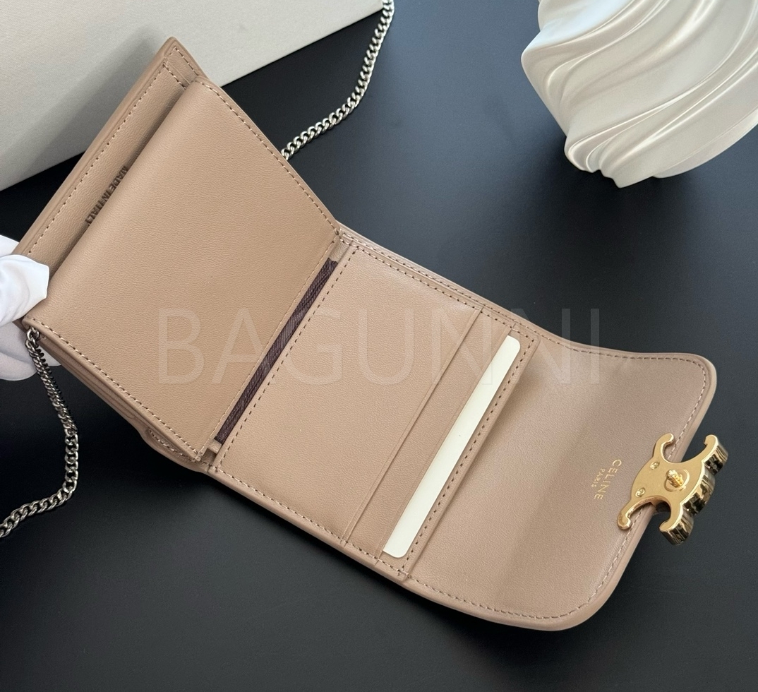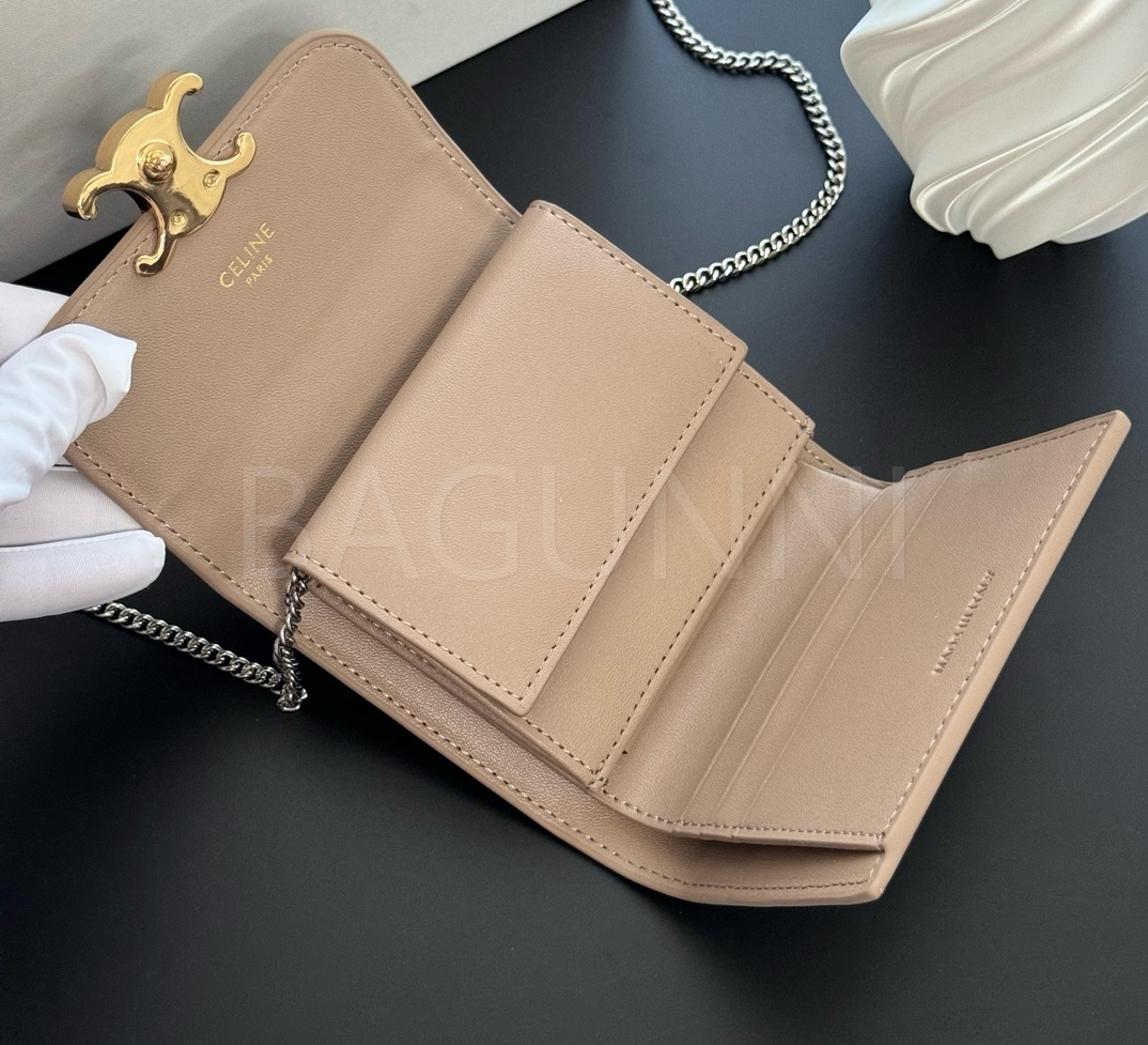 카프스킨의 질감이 돋보이는 셀린느 트리폴드 반지갑입니다.