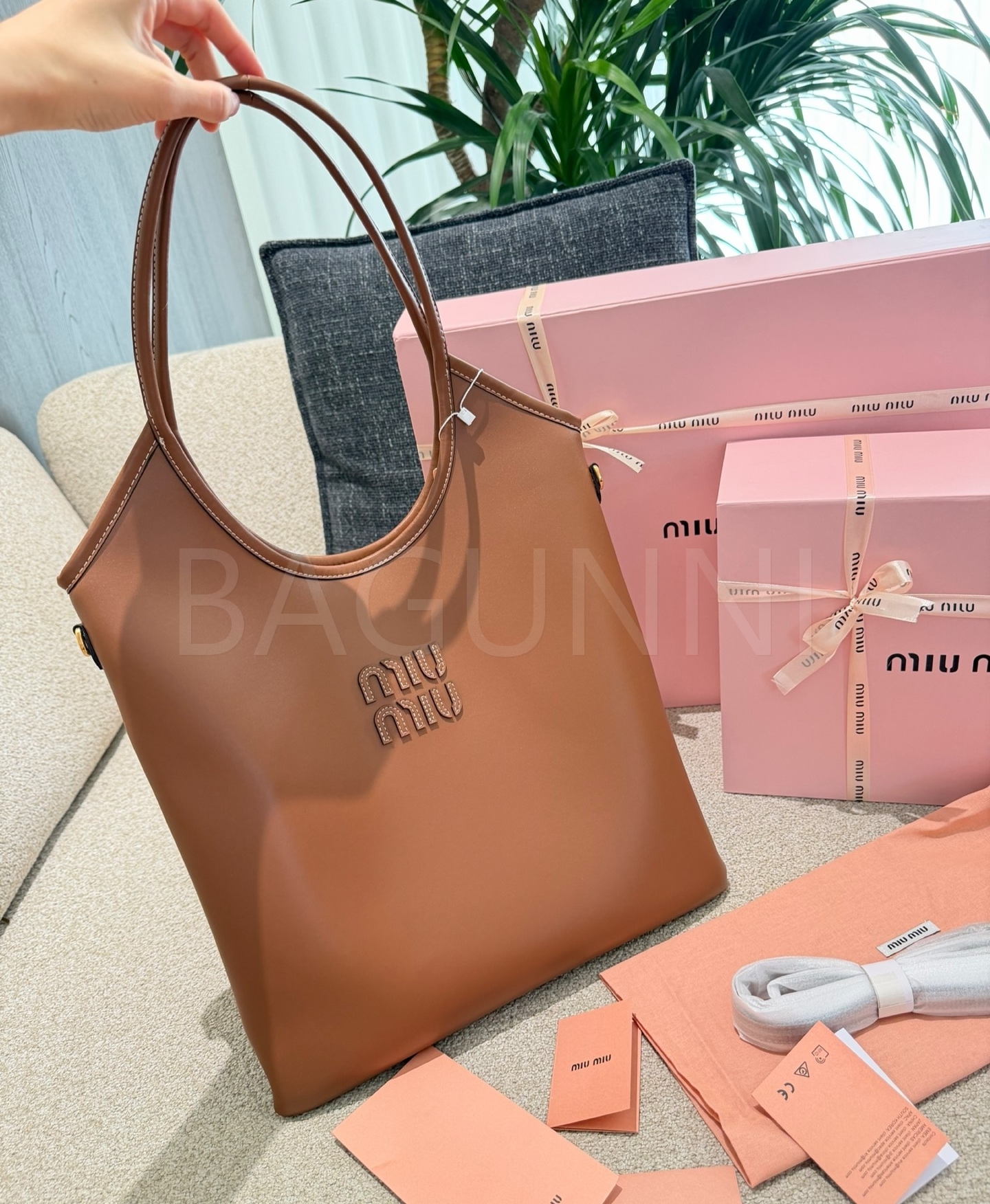미우미우 레더 토트백