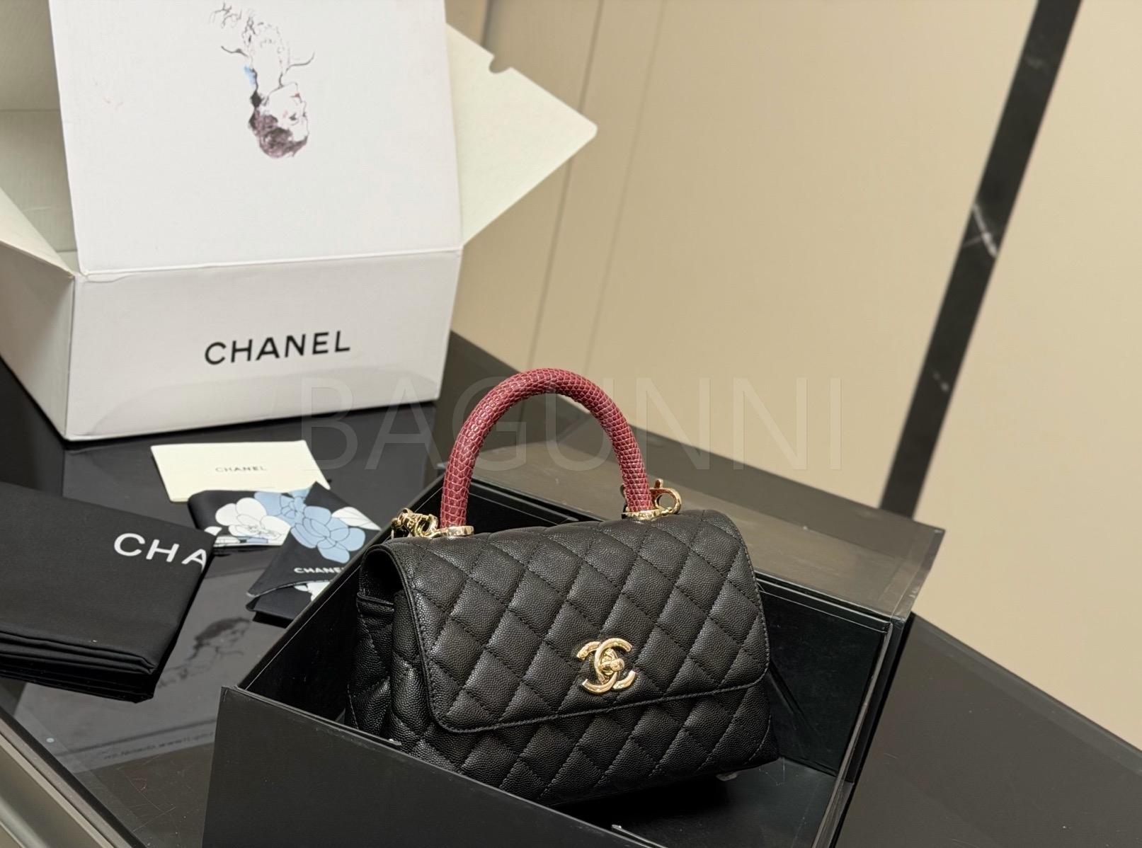 가죽 특유의 매력이 돋보이는 샤넬 코코핸들 백입니다.