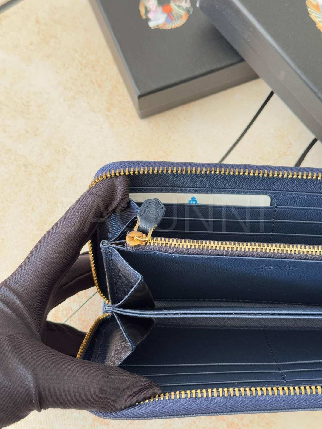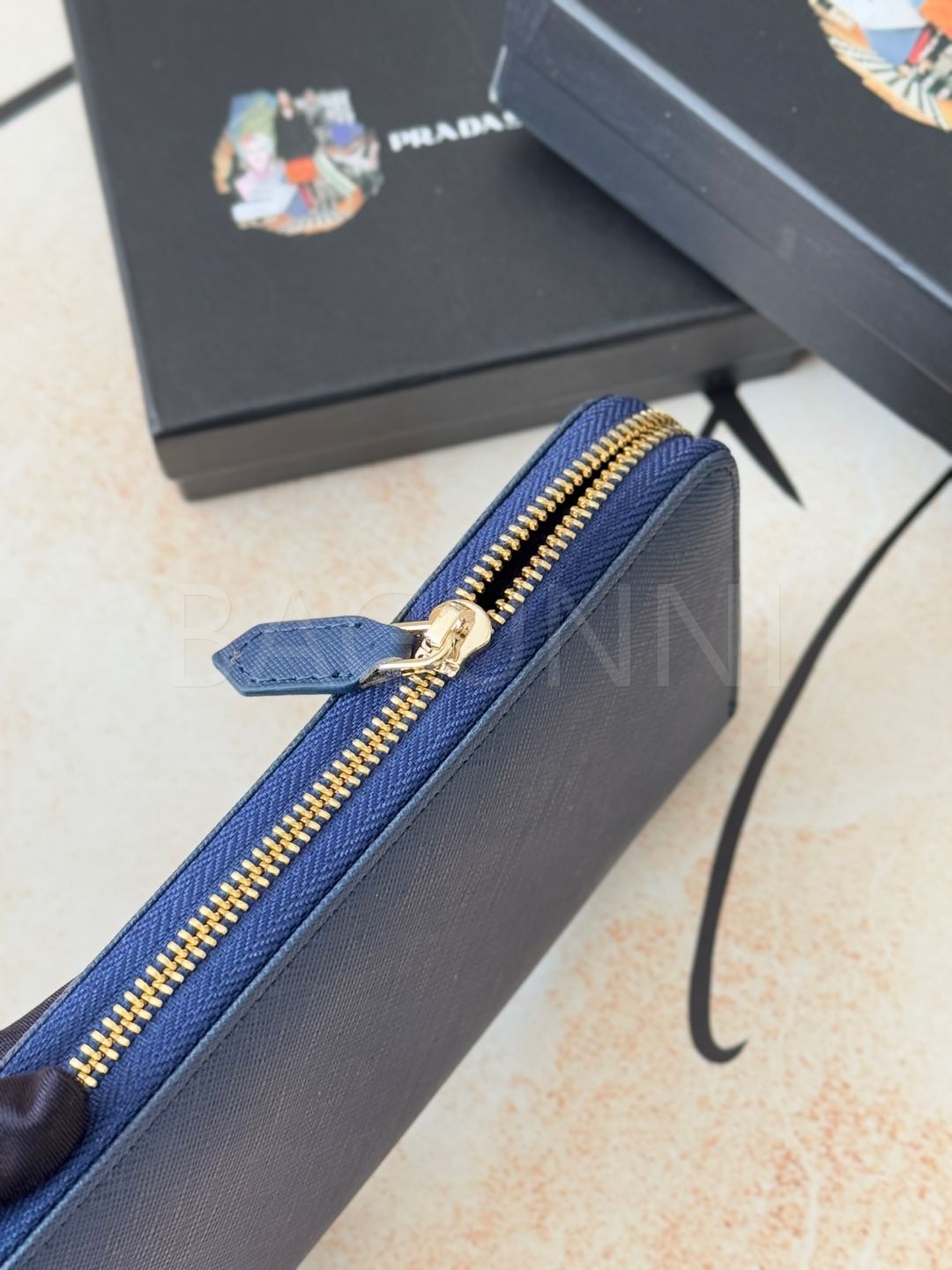 사피아노 질감이 깔끔하게 살아있는 프라다 사피아노 지퍼 장지갑입니다.