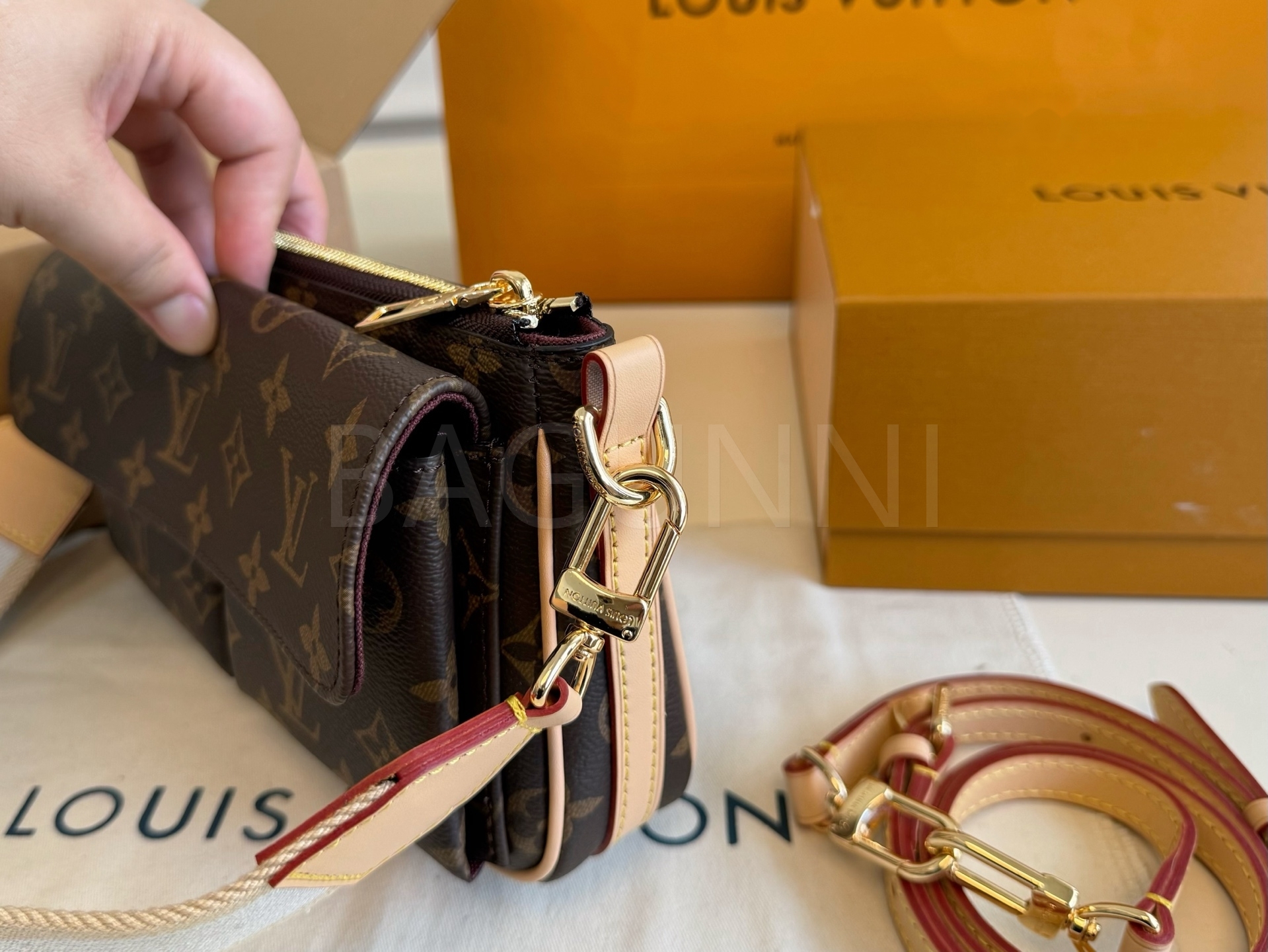루이비통 특유의 세련된 분위기가 돋보이는 루이비통 카멜 숄더백입니다.