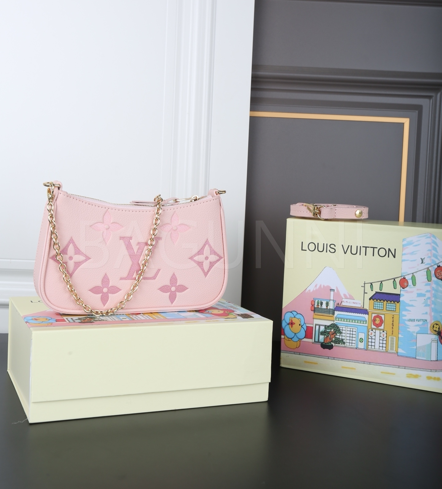 핑크, 그레이 컬러 구성이 감각적인 분위기를 완성해줍니다 체인 스트랩, 탑핸들, 숄더와 크로스 연출 디테일이 조화롭게 어우러져 완성도를 높여줍니다