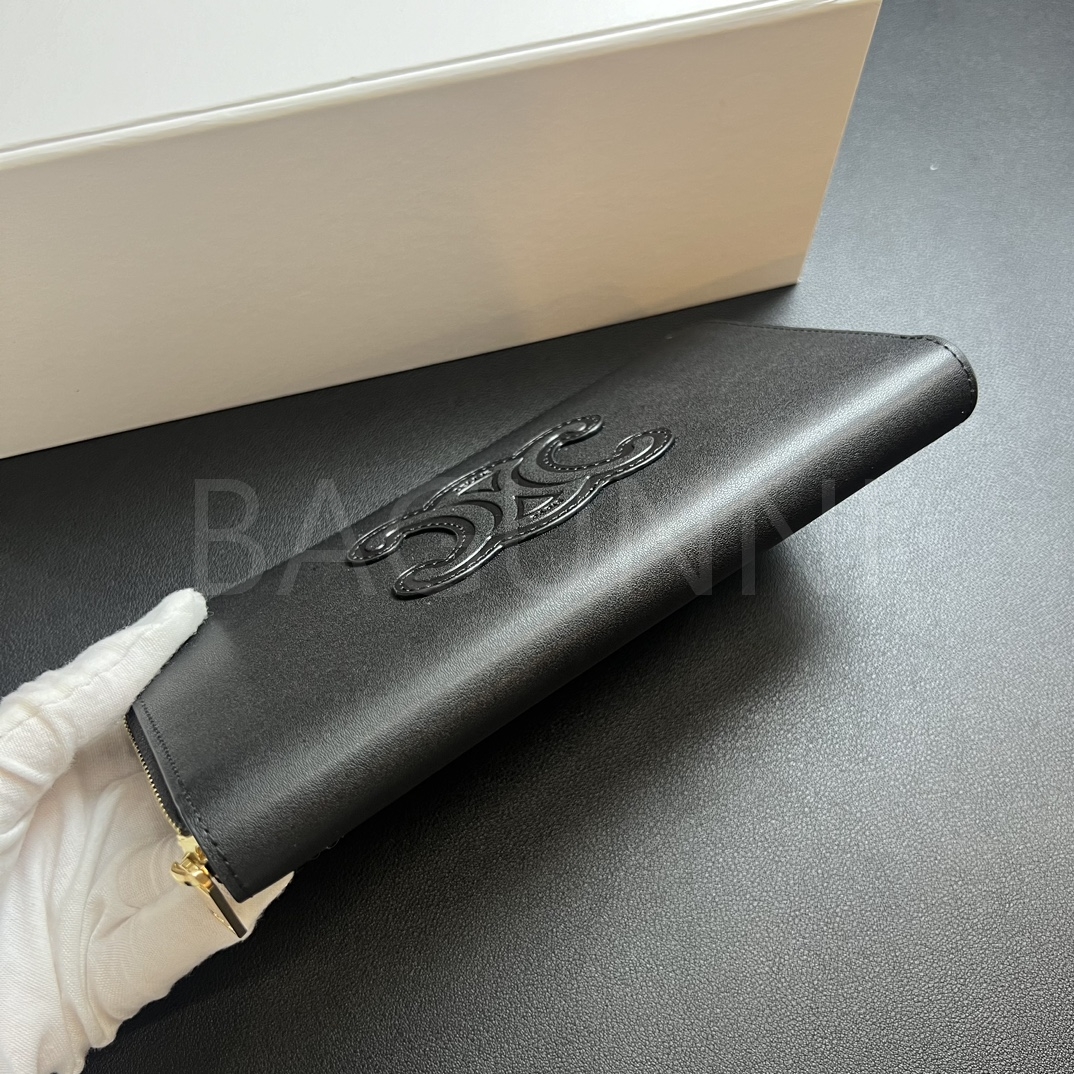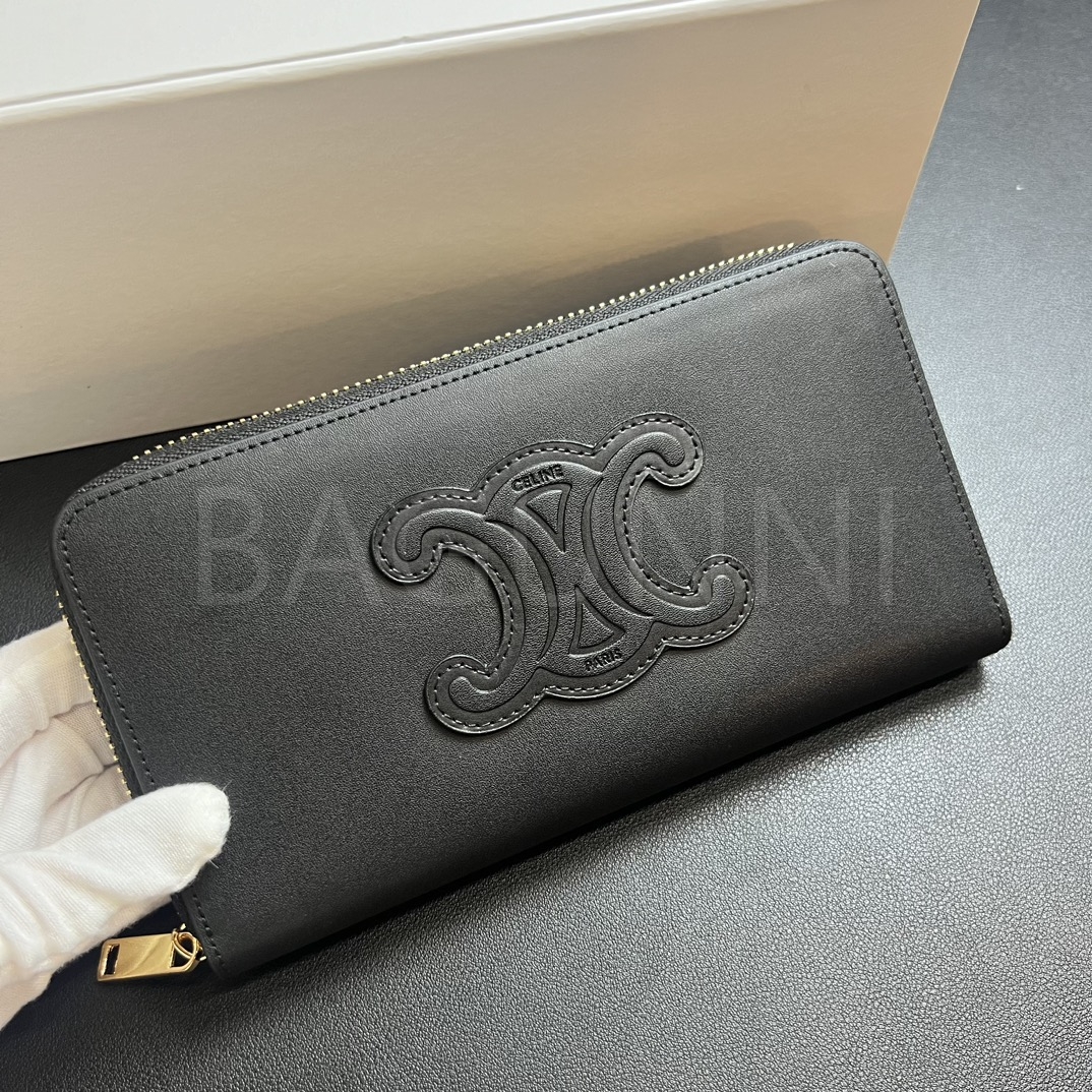 카프스킨의 질감이 돋보이는 셀린느 트리옹프 지퍼 카드지갑입니다.
