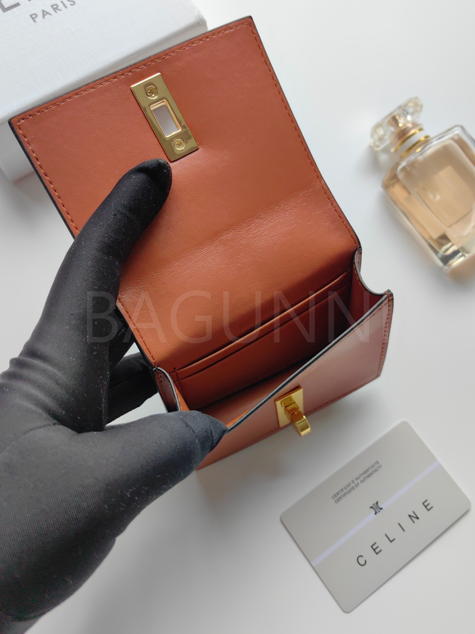 셀린느 특유의 무드가 자연스럽게 살아있는 트리옹프 플랩 카드지갑입니다.