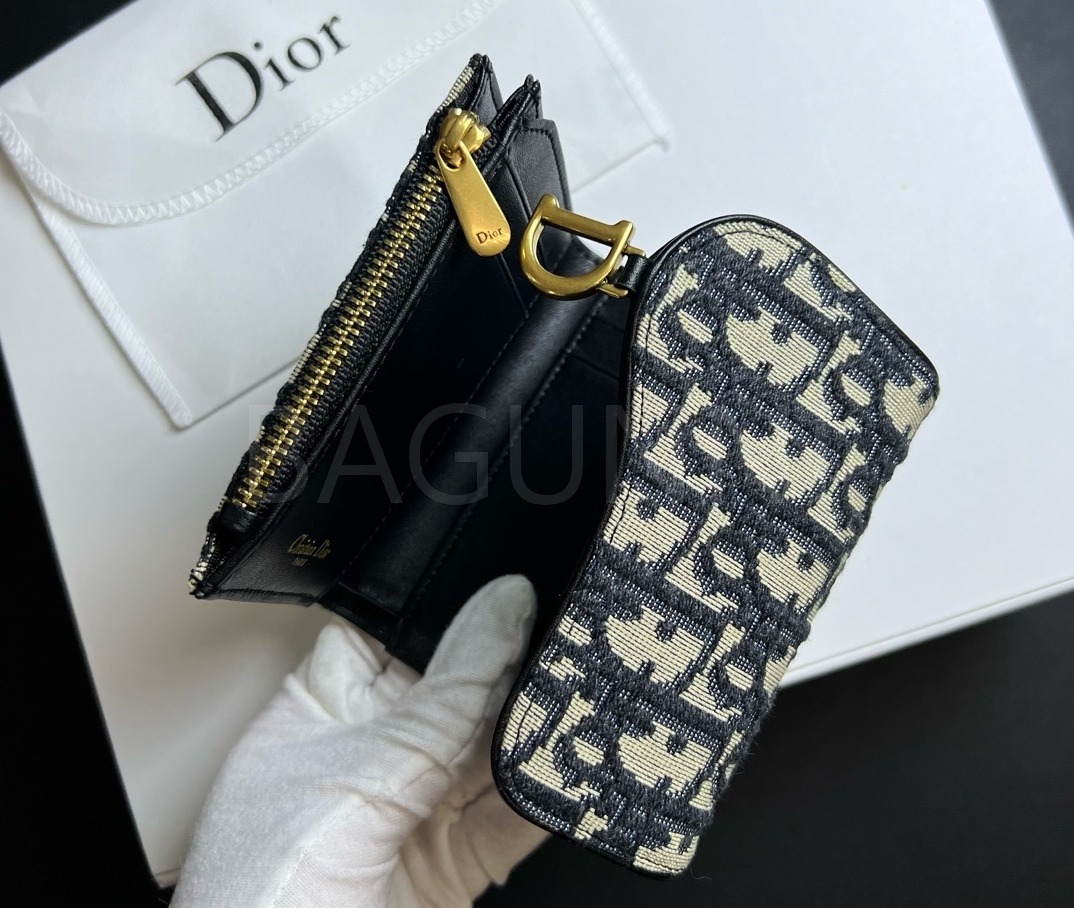 카프스킨의 질감이 돋보이는 디올 지퍼 카드지갑입니다.