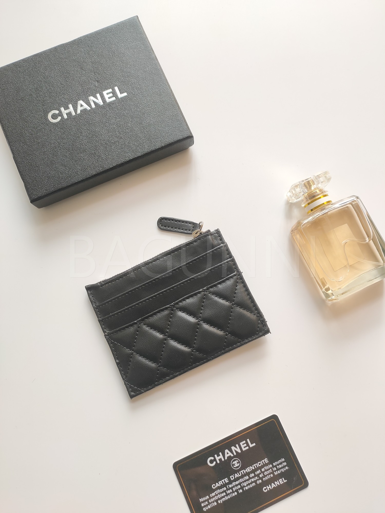 샤넬 특유의 무드가 자연스럽게 살아있는 지퍼 카드지갑입니다.
