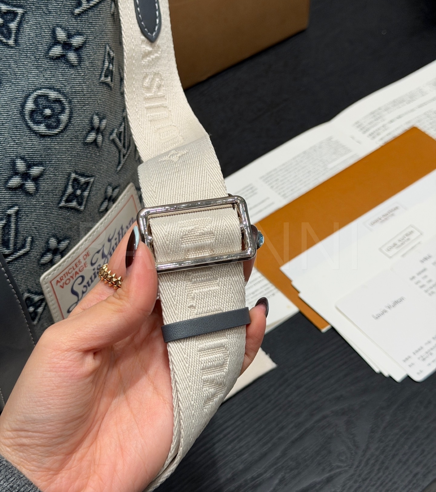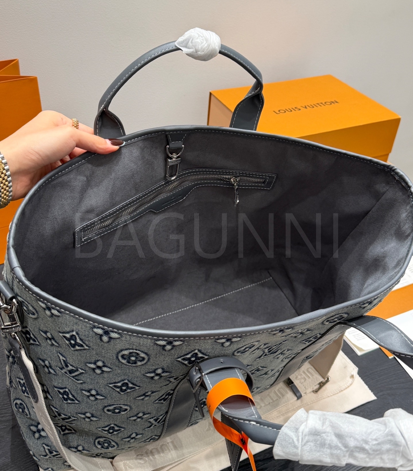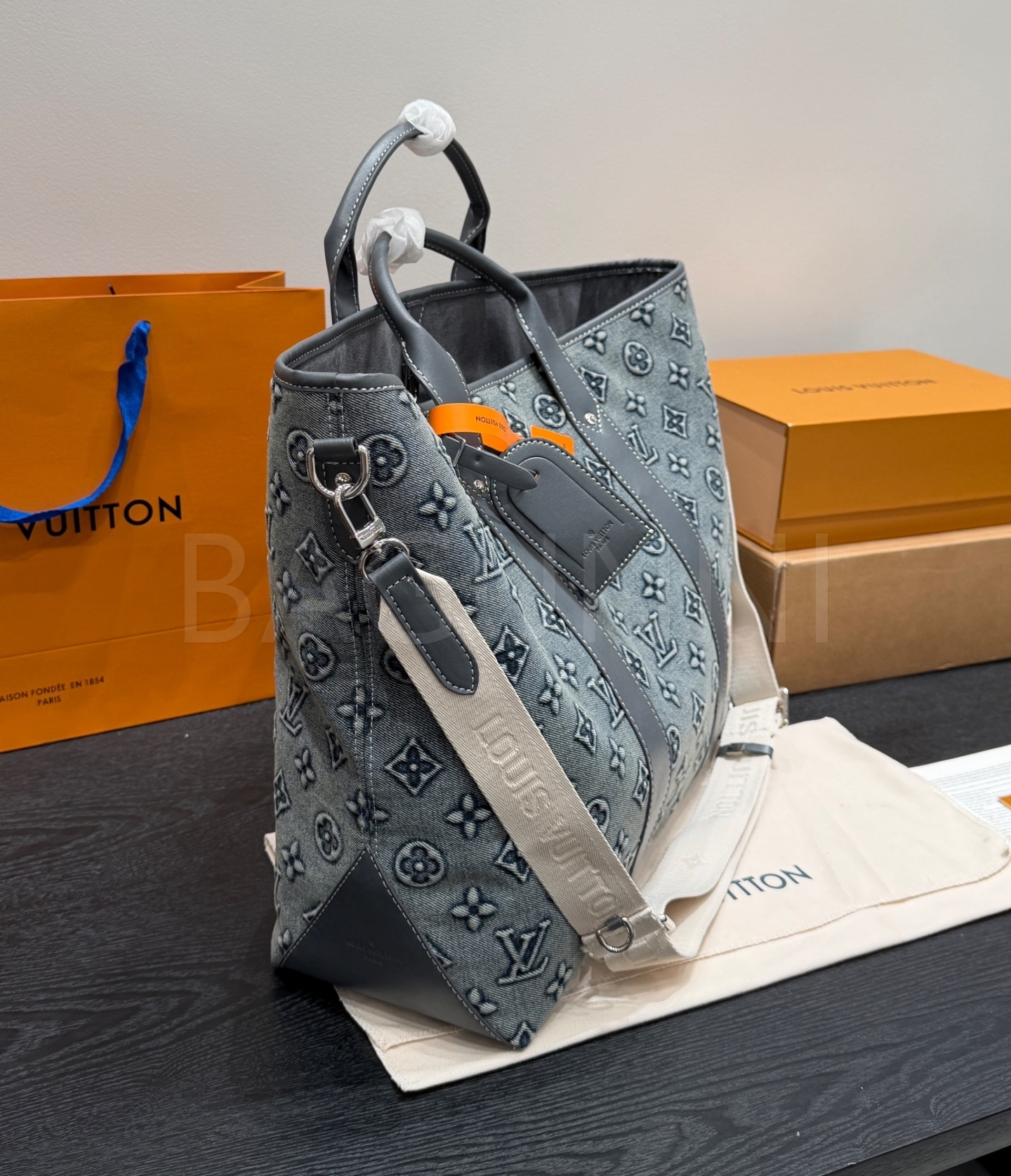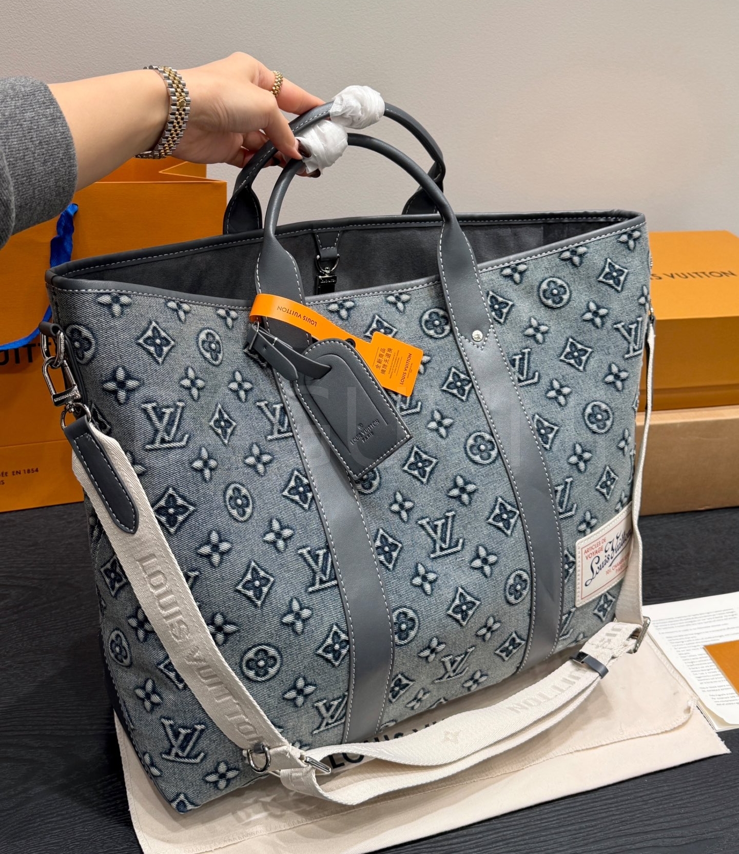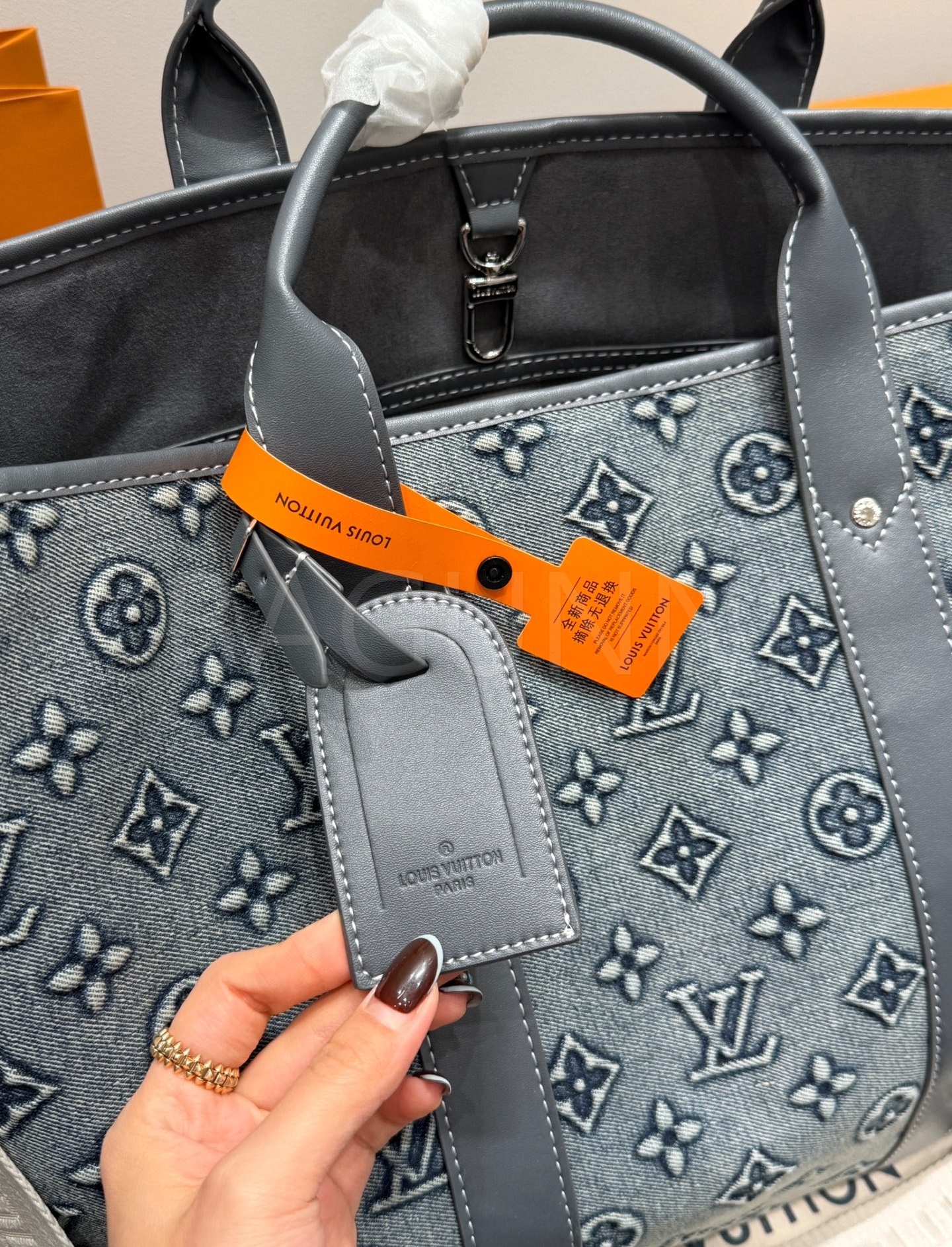 루이비통 데님 토트백은 빈티지한 무드를 담은 아이템입니다.
