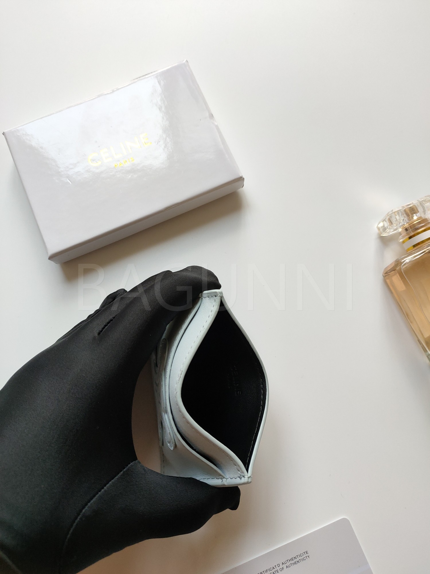 카프스킨의 질감이 돋보이는 셀린느 플랩 카드지갑입니다.