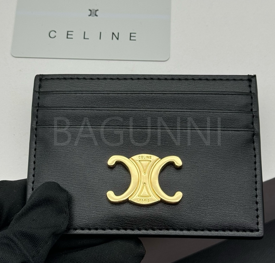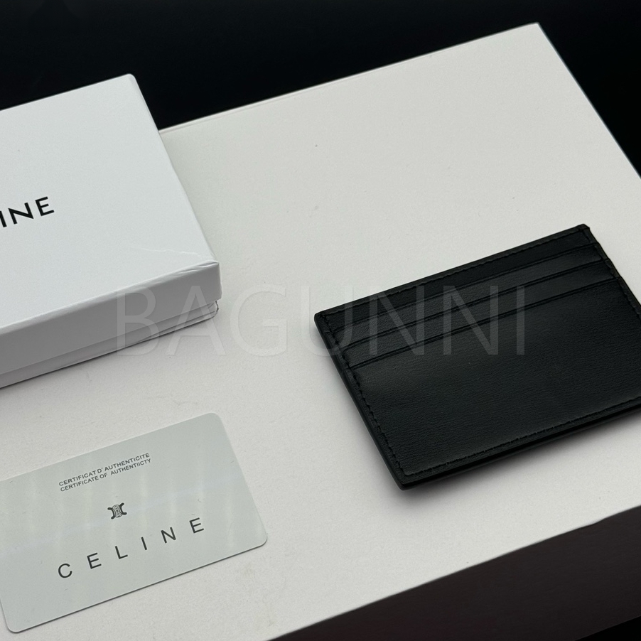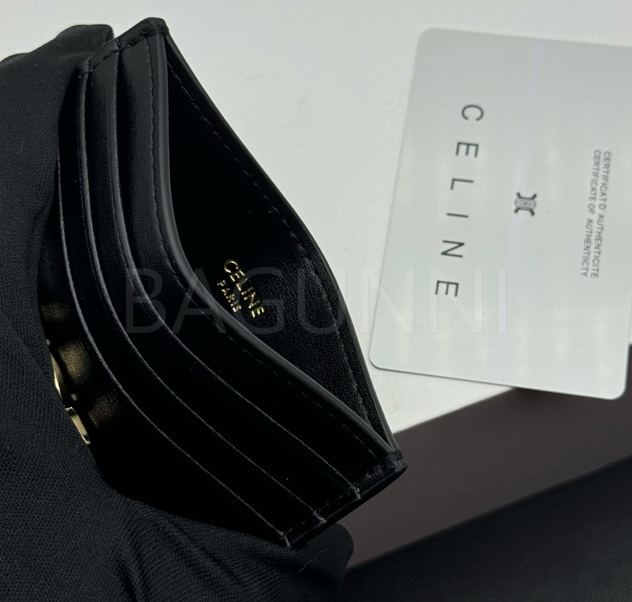 카프스킨의 질감이 돋보이는 셀린느 트리옹프 플랩 카드지갑입니다.